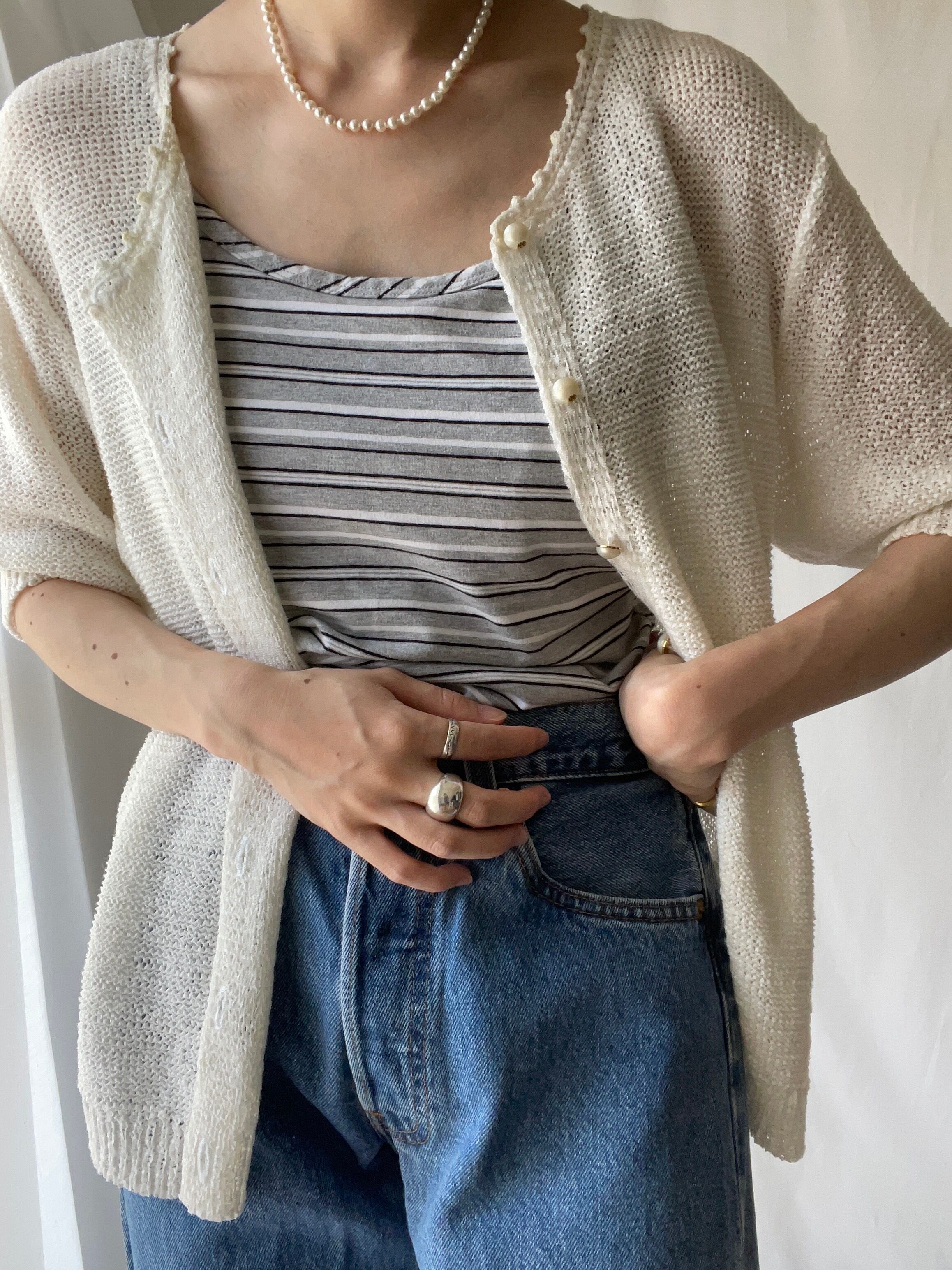 ヘルシーに1枚で着ても、羽織りをざっくり重ねて着るのもこなれ感がでる1枚です 〇