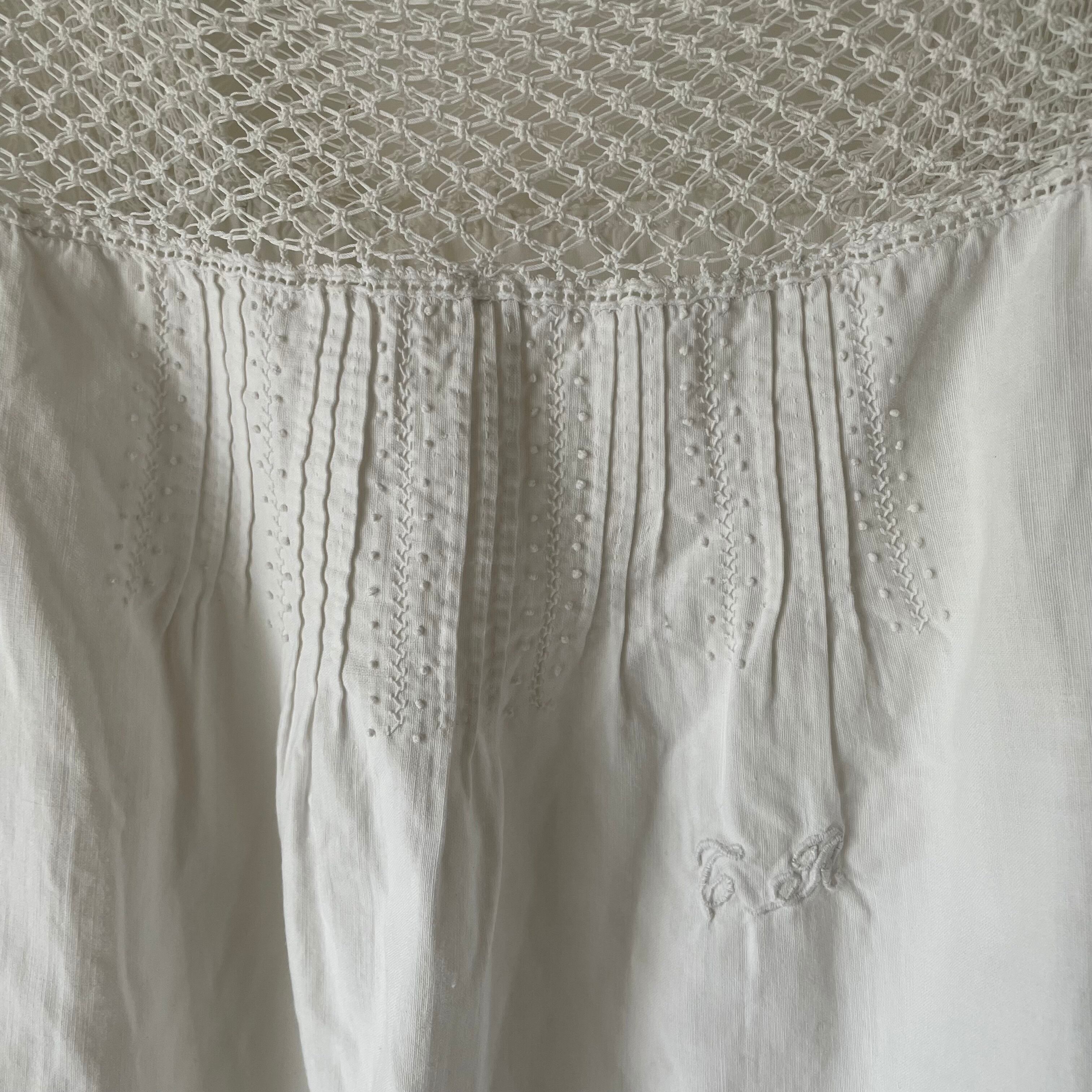 繊細なレースの肩ひもや胸元のデザインやイニシャルなど、どこをみてもときめくスペシャルなコットンワンピース