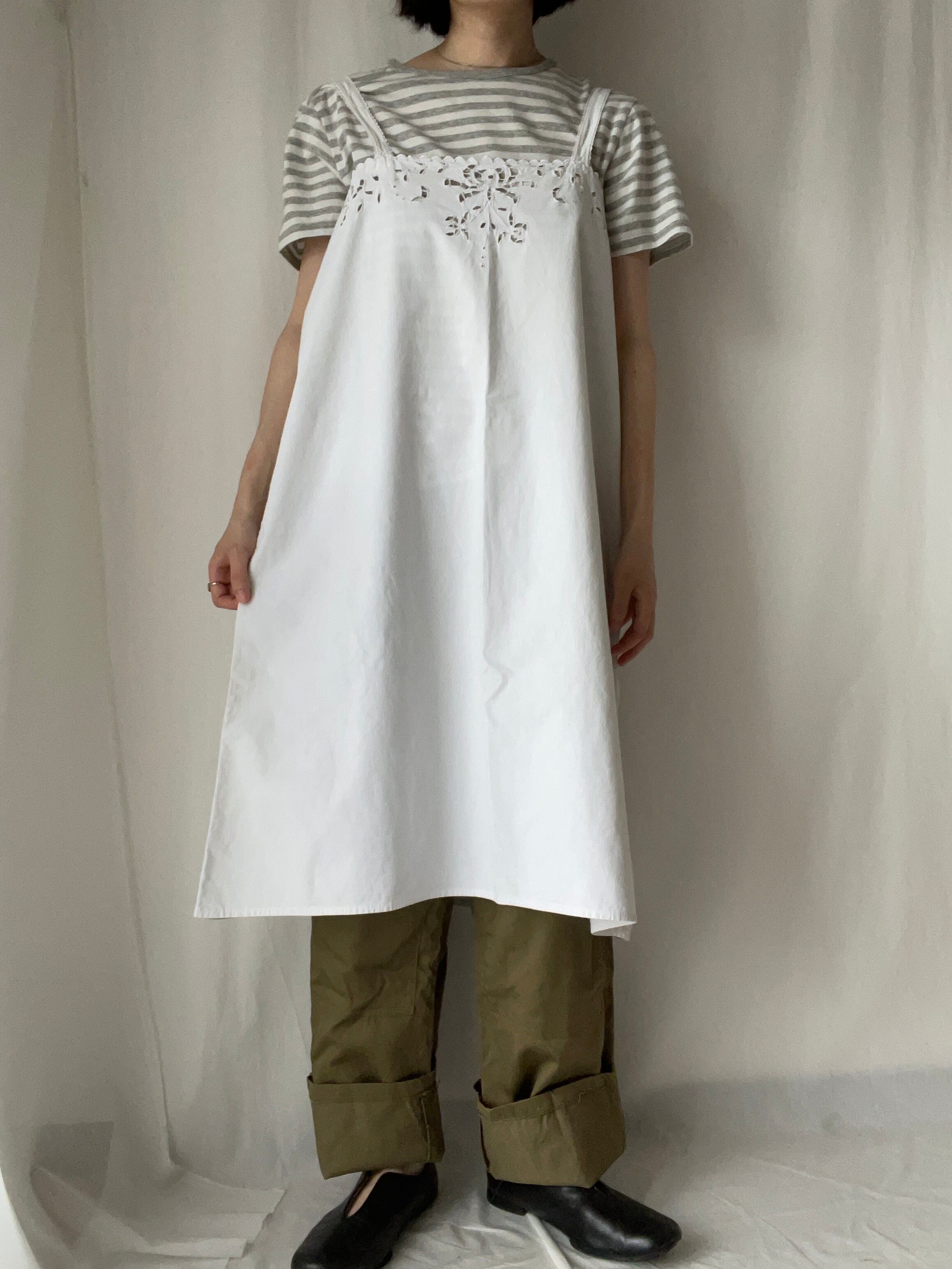 フロントに入ったカットワークのデザインと、縁のスカラップが可愛らしいコットンワンピース