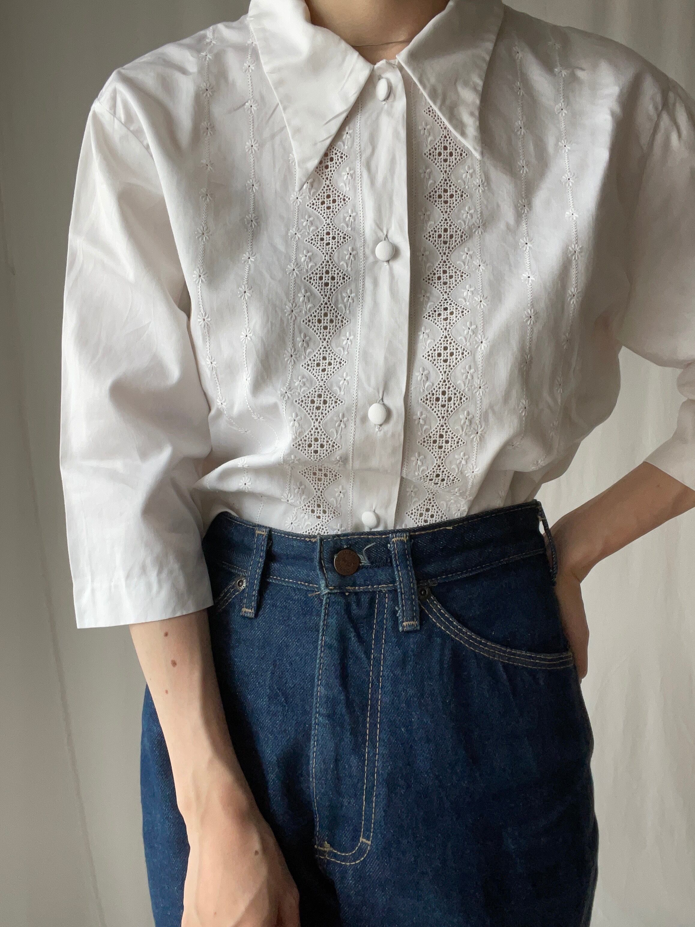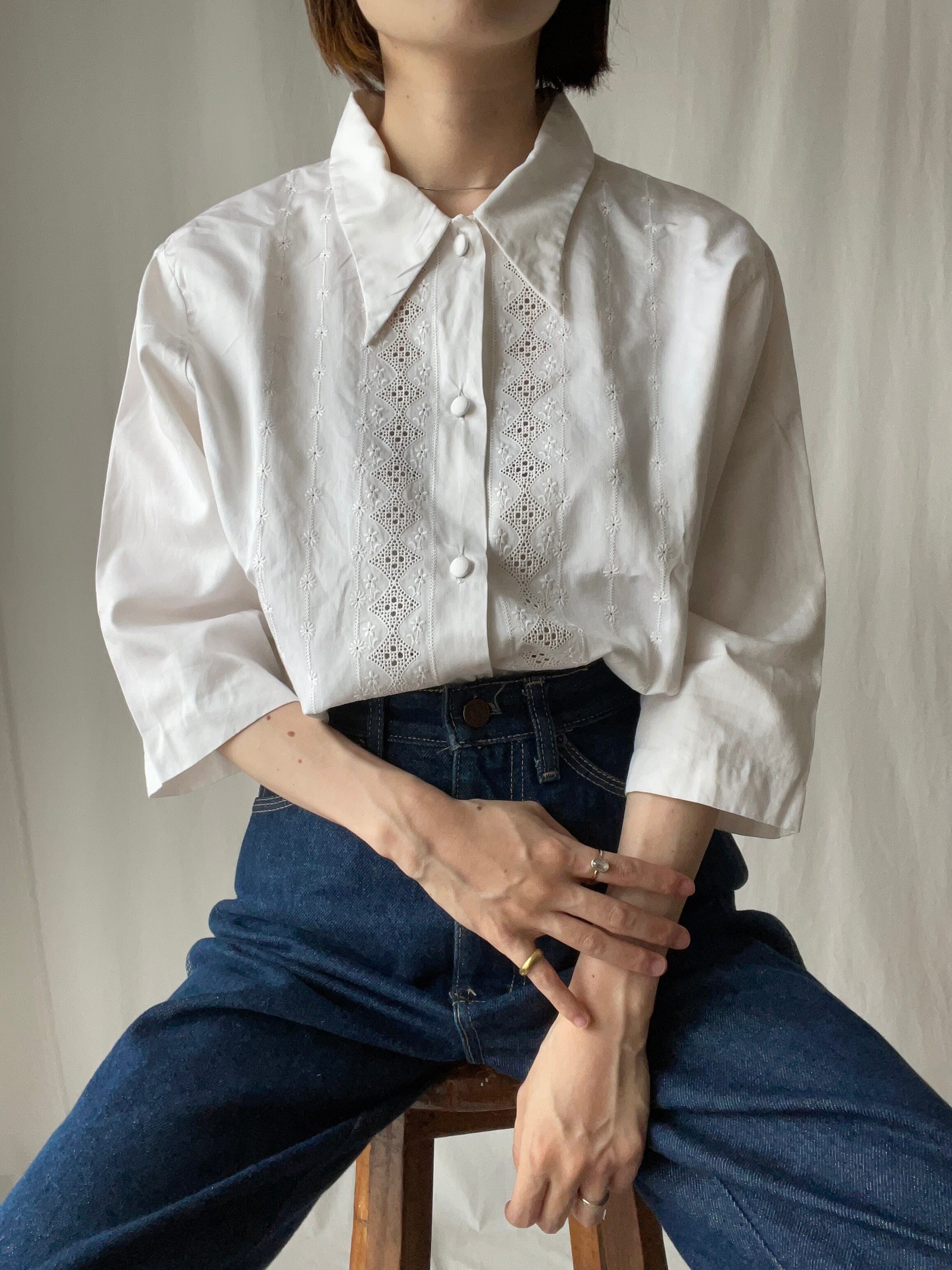 ハリのあるコットン素材で羽織りとしてもおすすめなブラウス