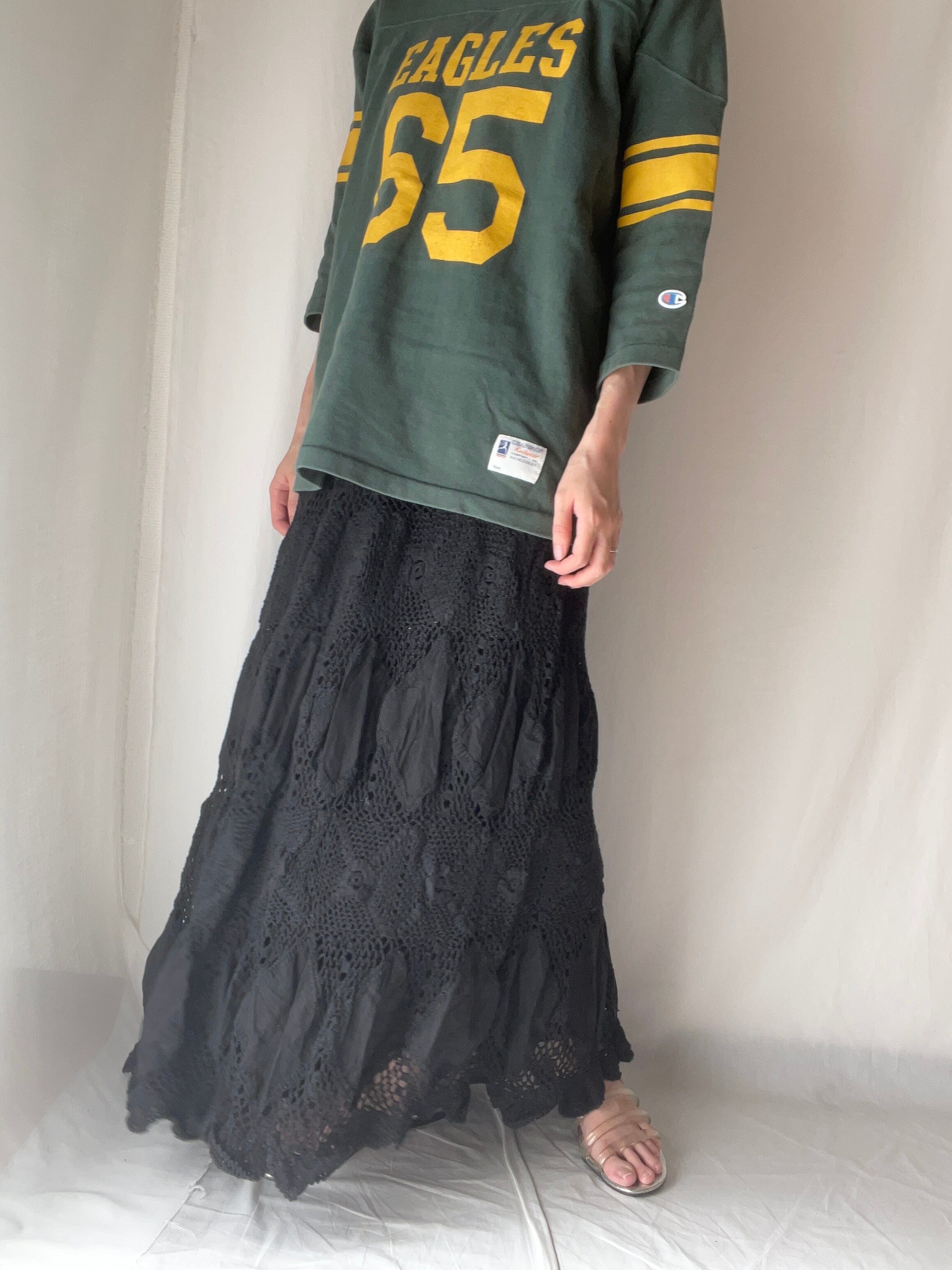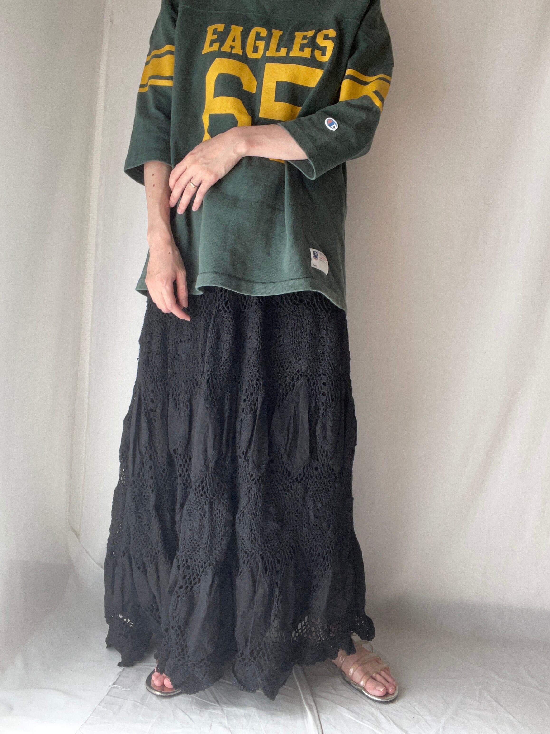ざっくりとした網目とコットン地の模様が可愛いクロシェスカート