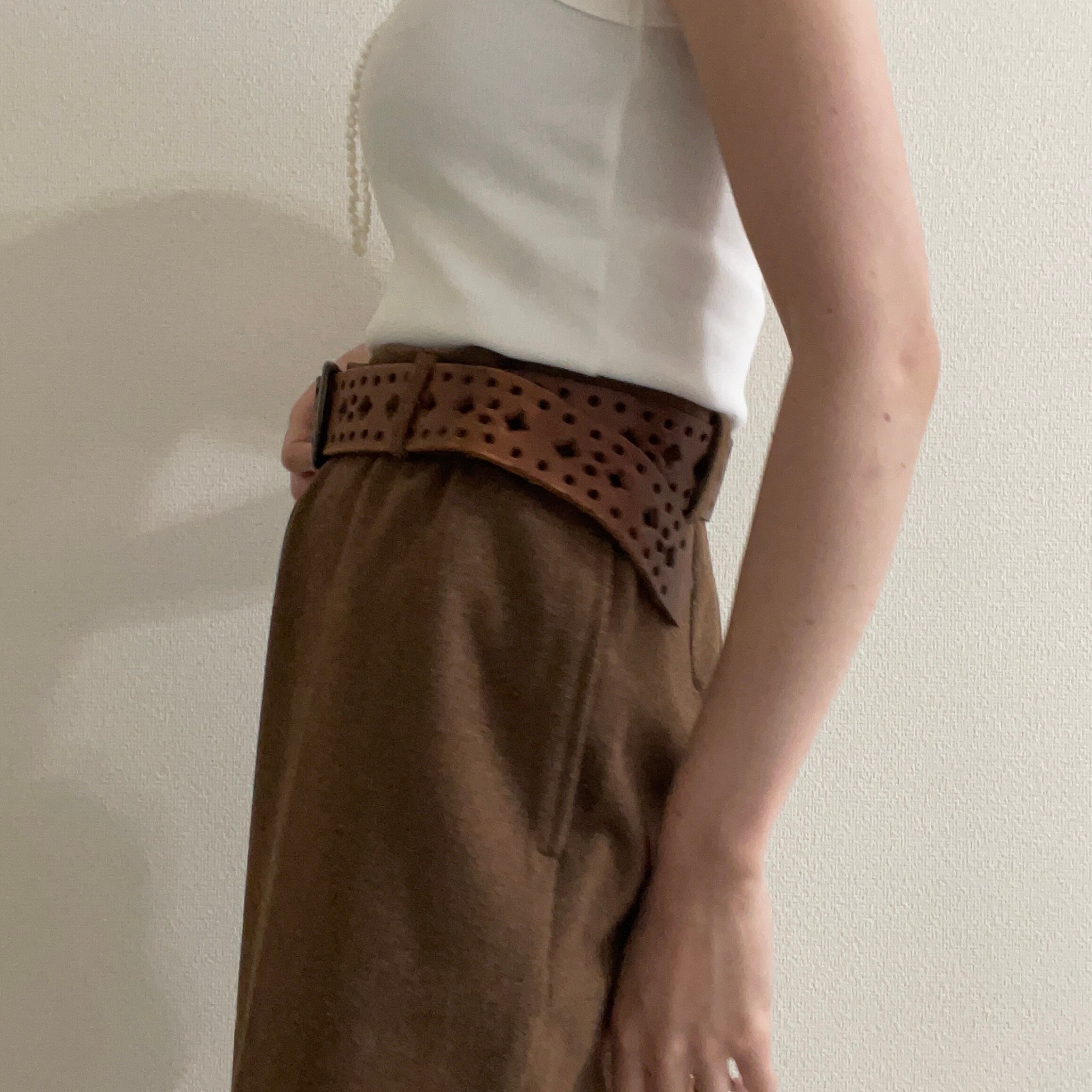 全体的に穴の開いているデザインなのでウエストサイズに関係なくお使いいただけます ○