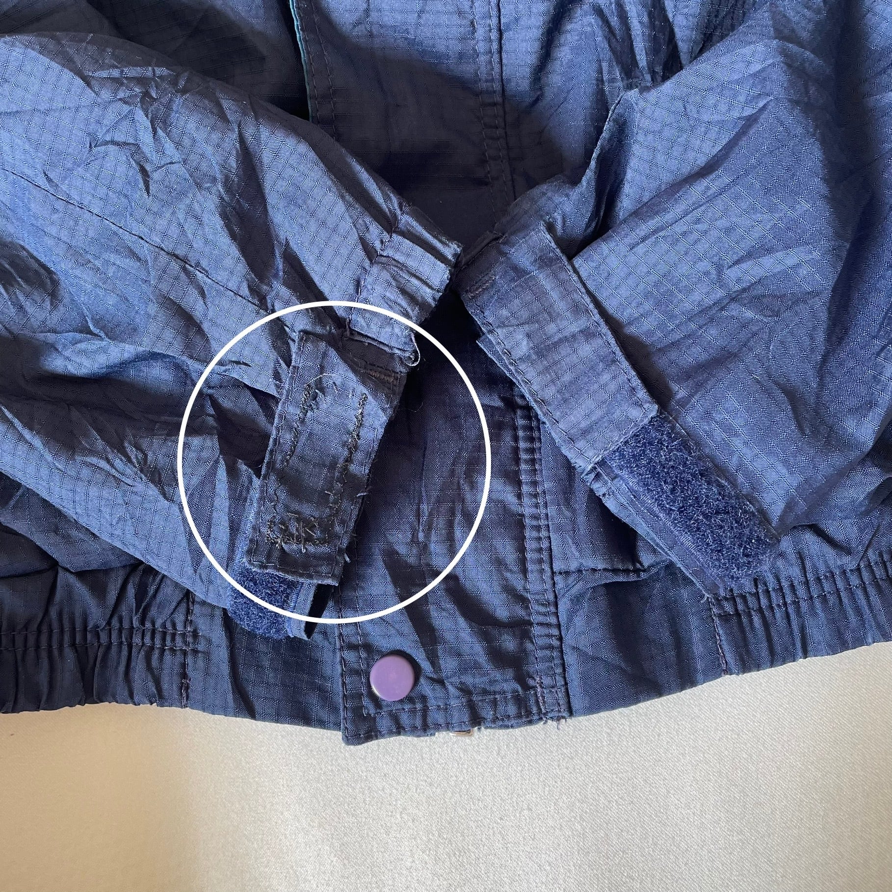 右袖裾のマジックテープ部分にリペアあとあり