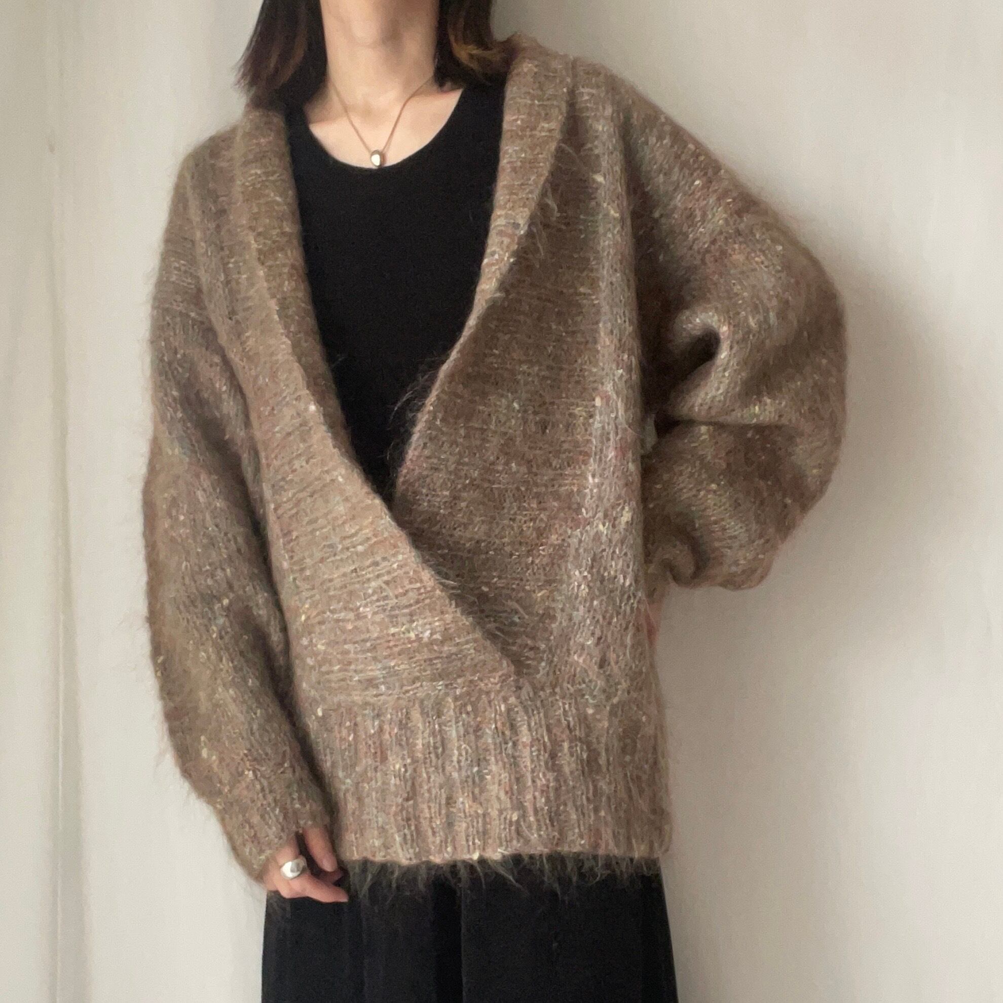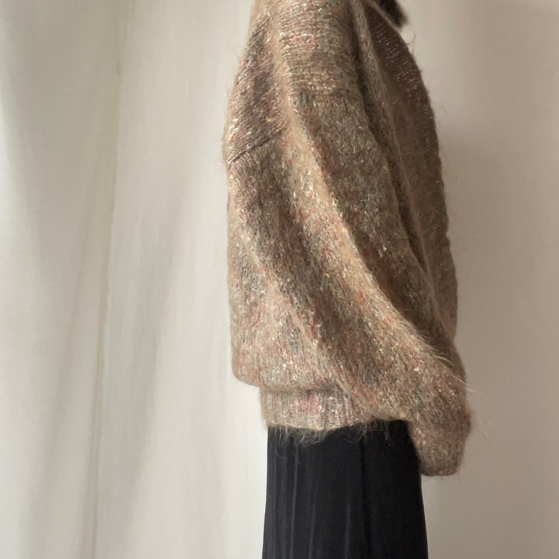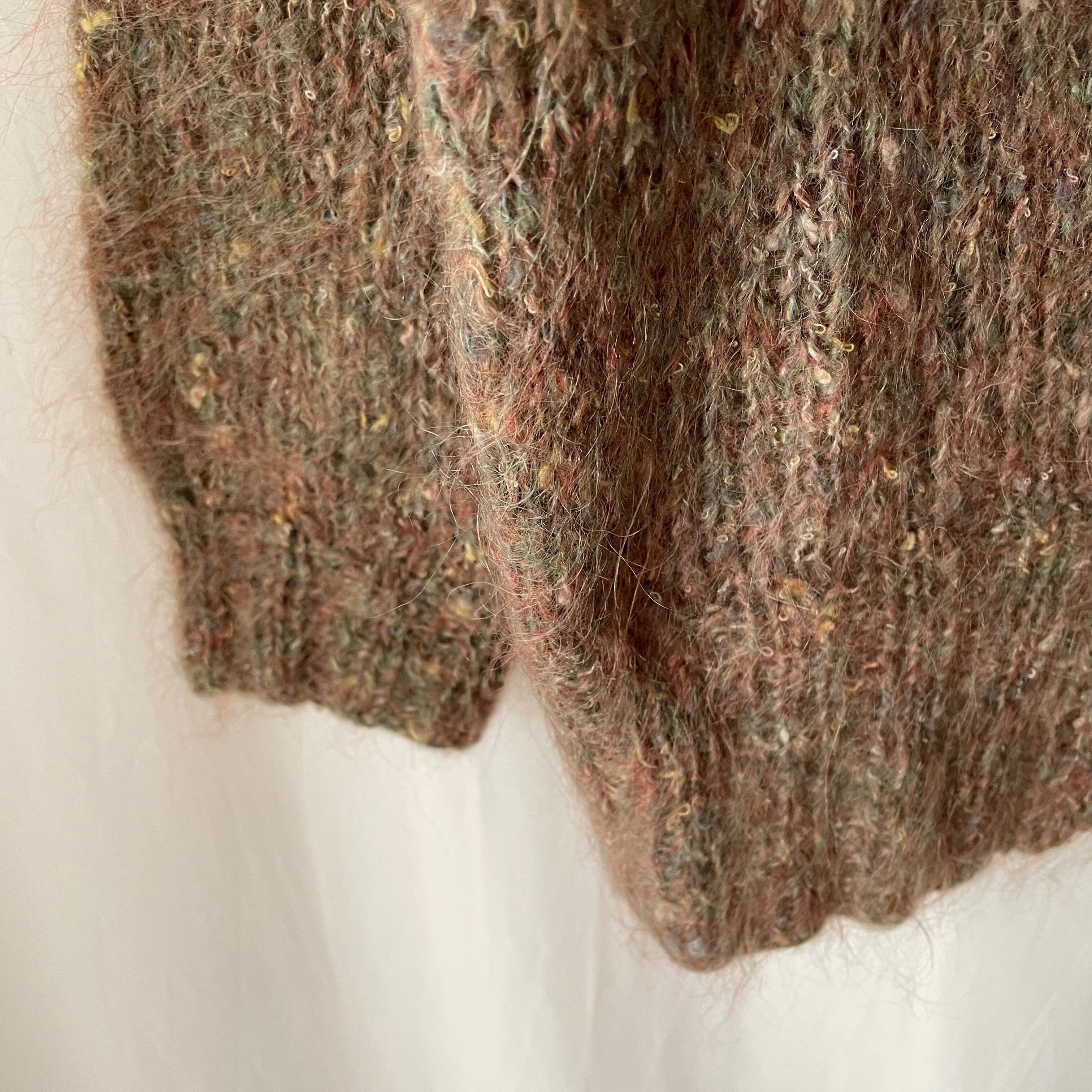 ブラウントーンにカラフルな糸で編み込まれたモヘアニット