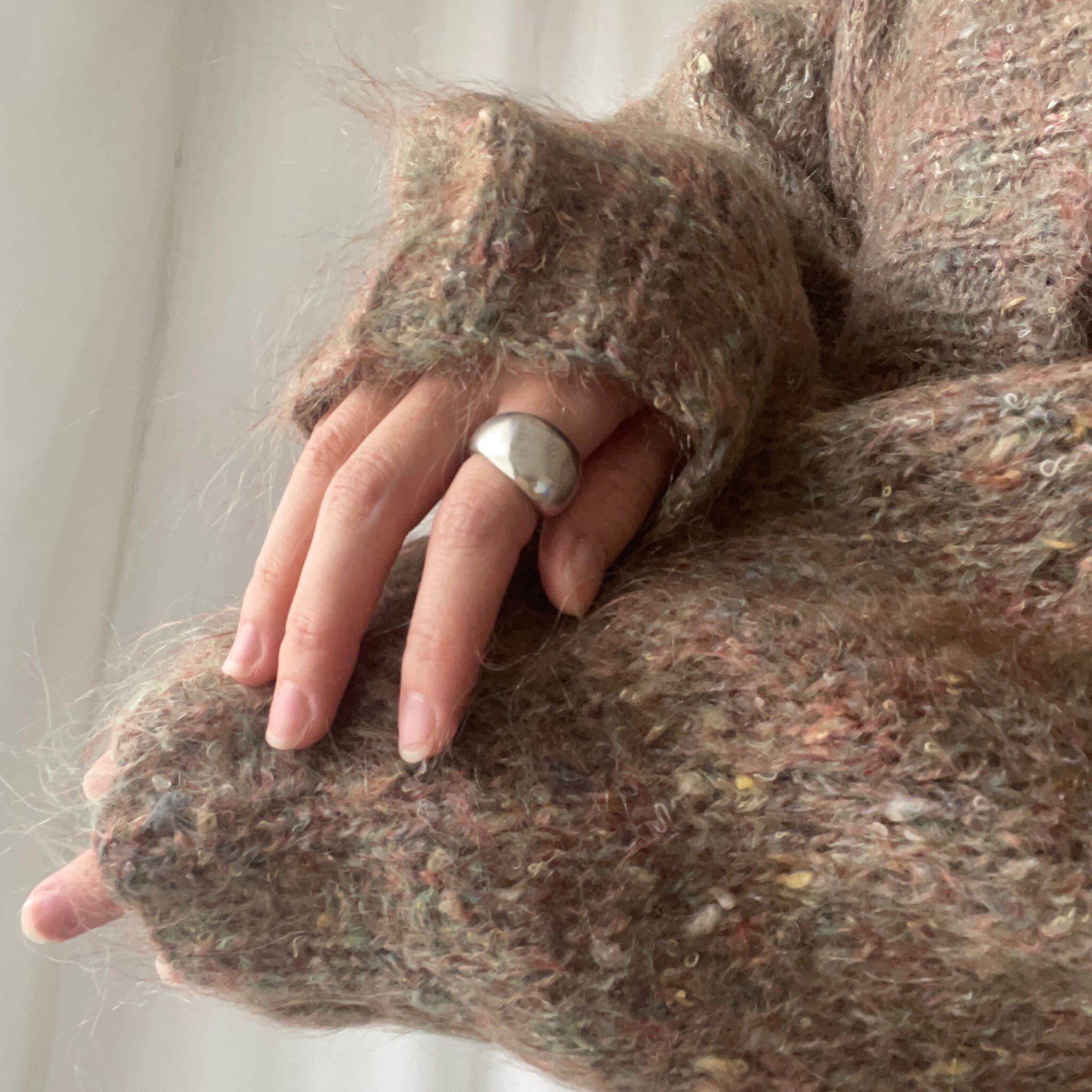 ゆったりとしたサイズ感のニットで、比較的毛足の長いモヘアになりますのでチクチク感は控えめです