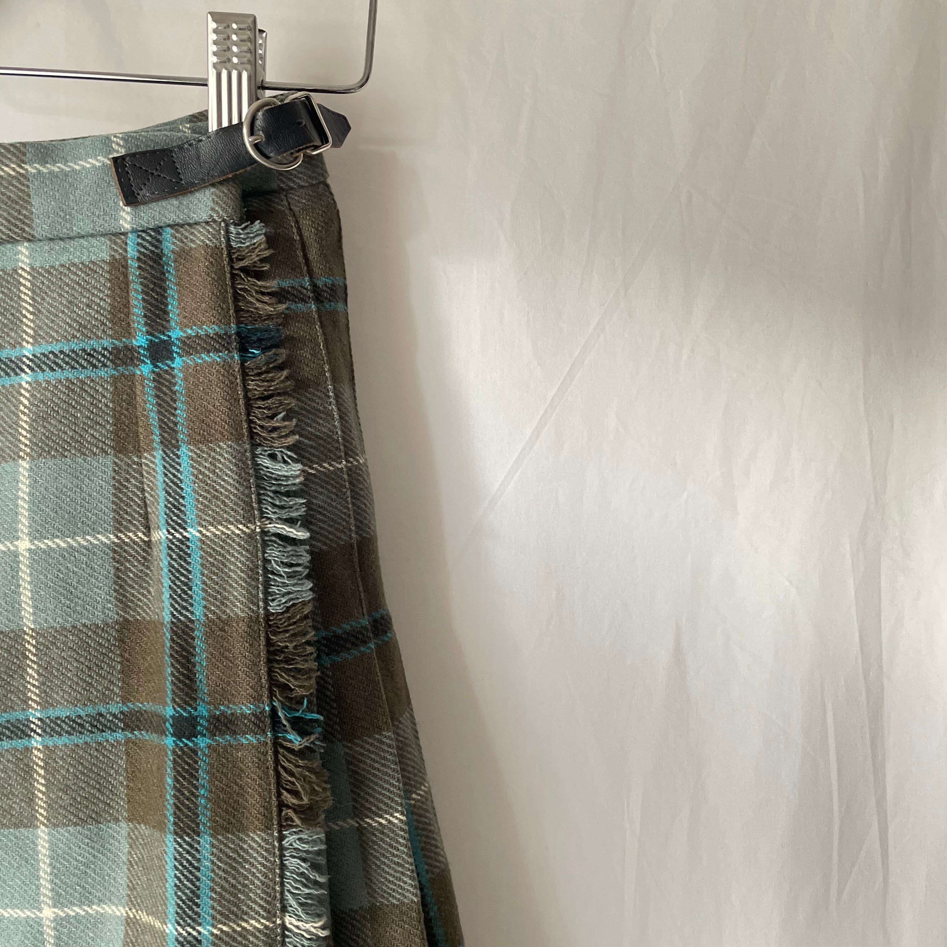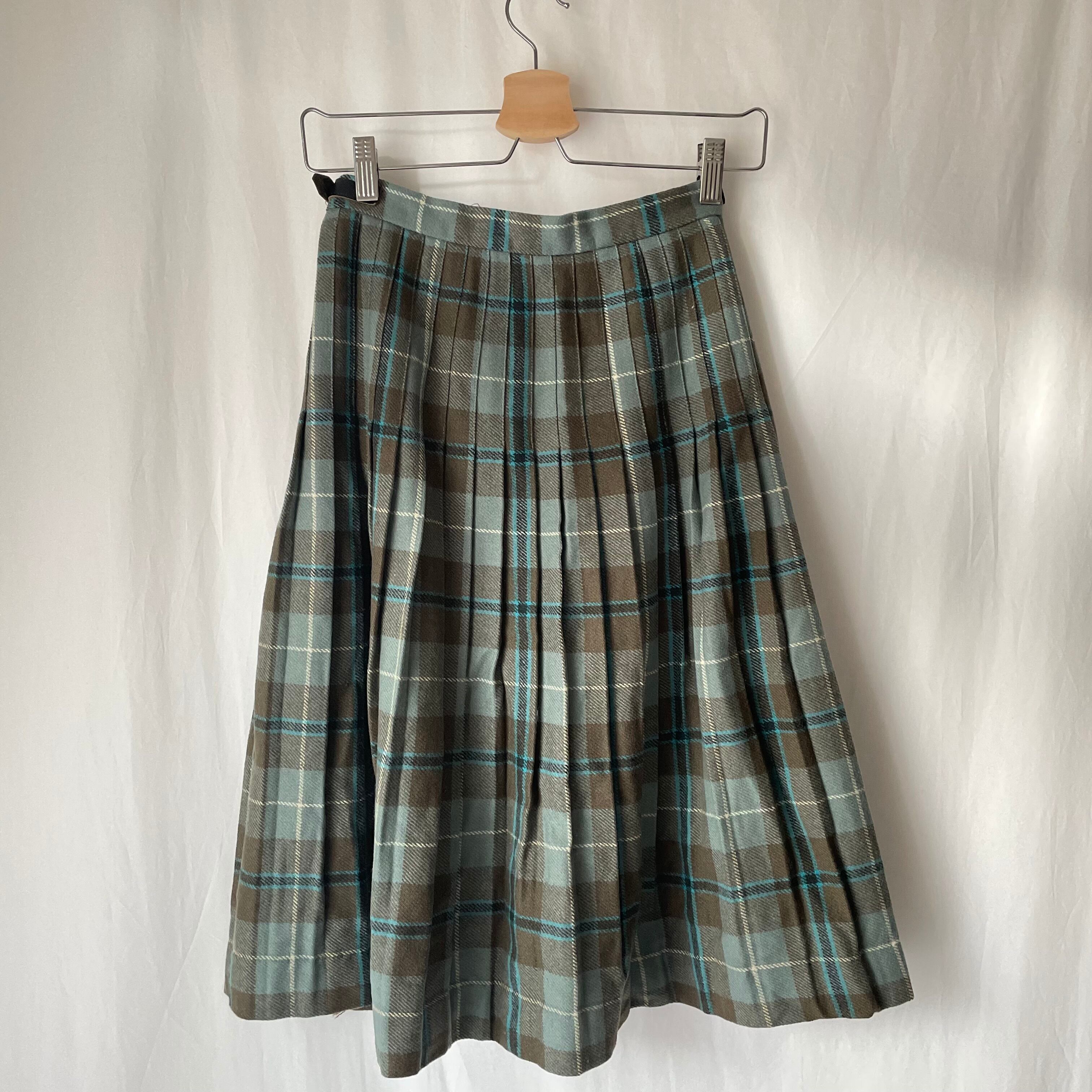 絶妙なくすみグリーンとタータンチェックの柄がありそうでない古着ならではのスカート