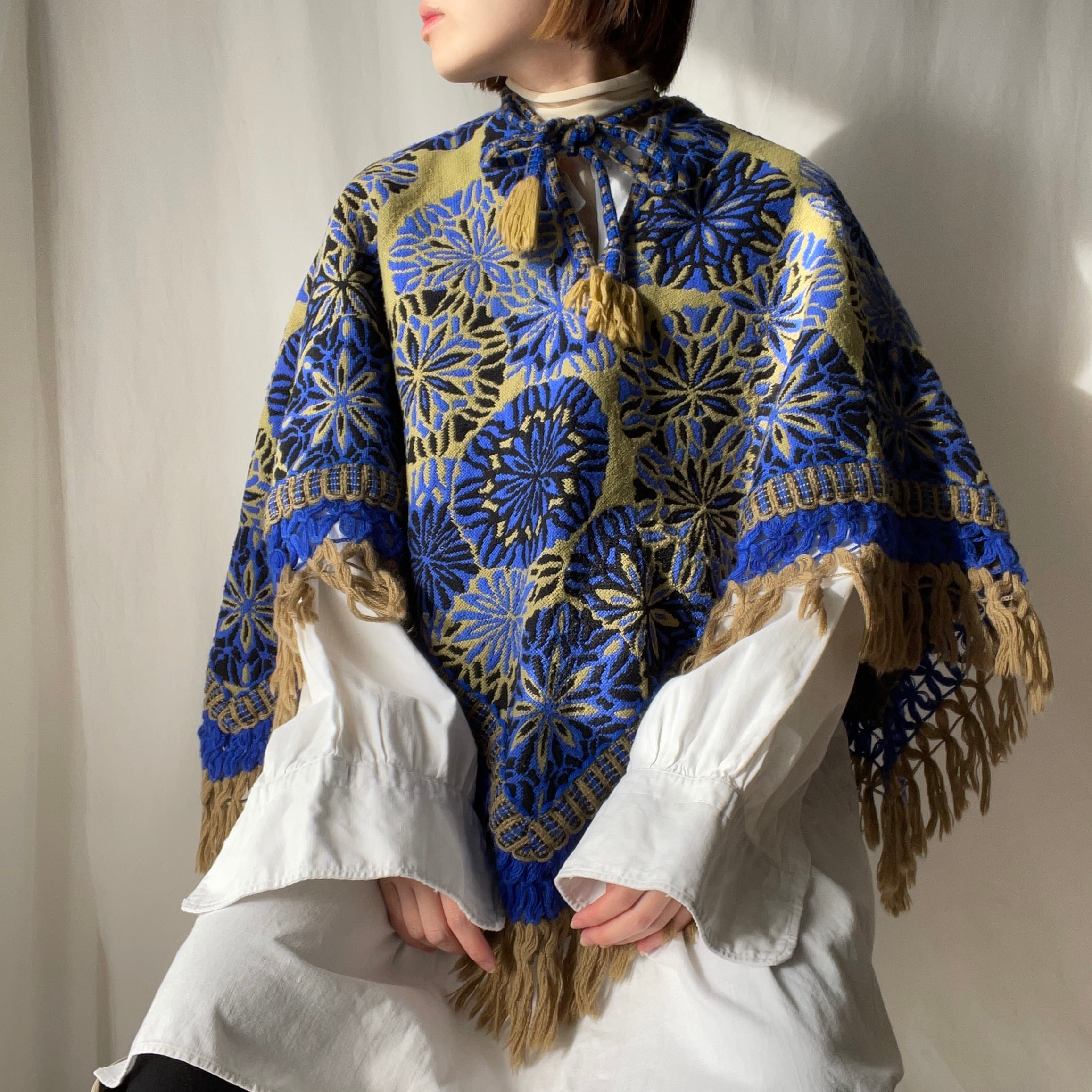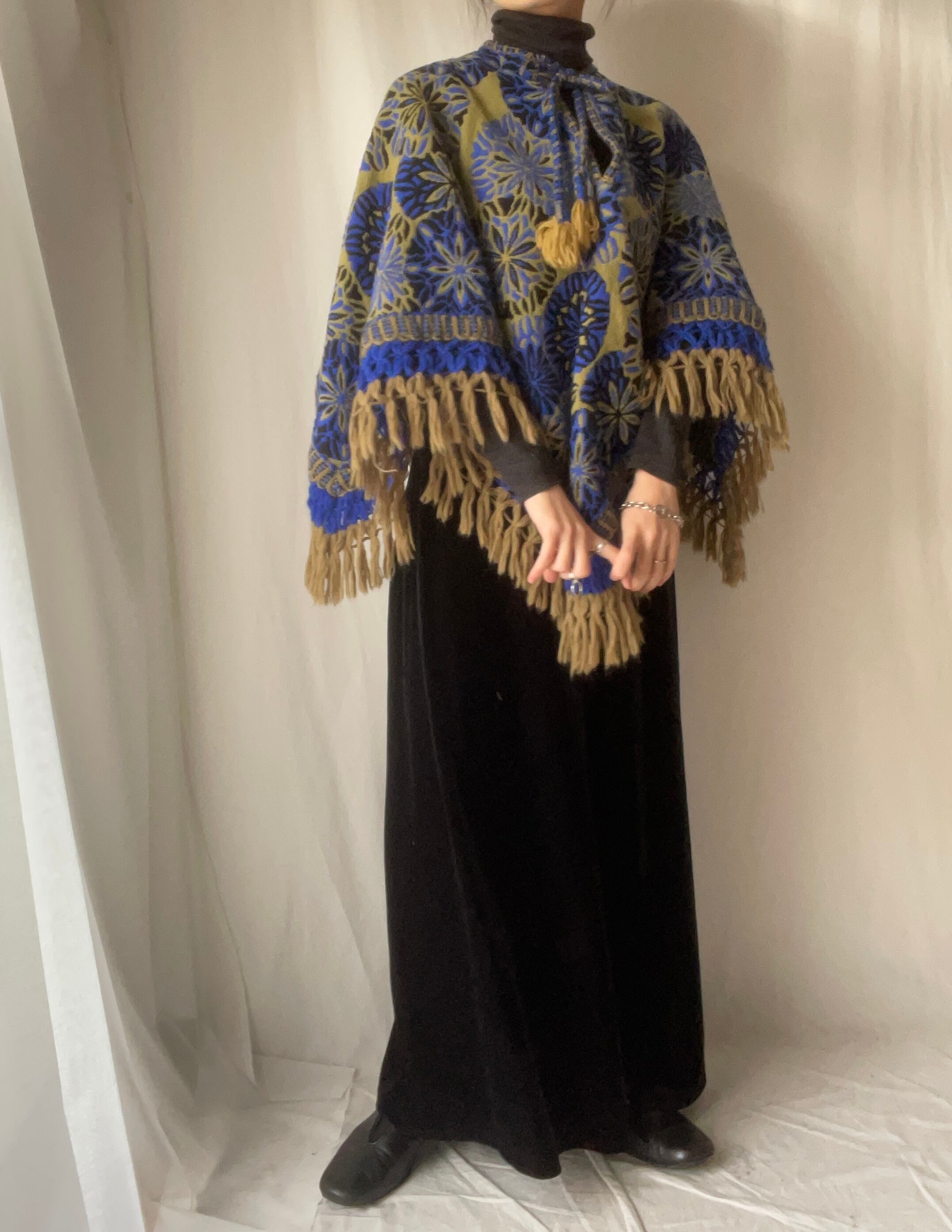 渋めのコントラストが落ち着いた雰囲気の花柄ポンチョ