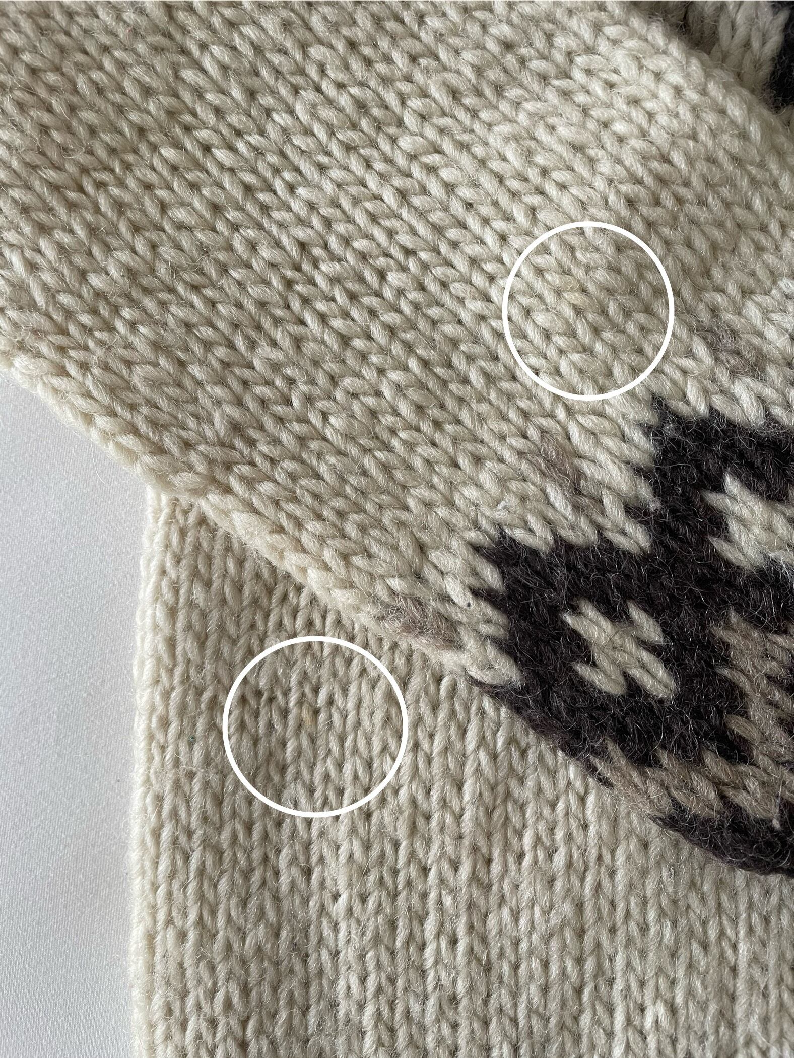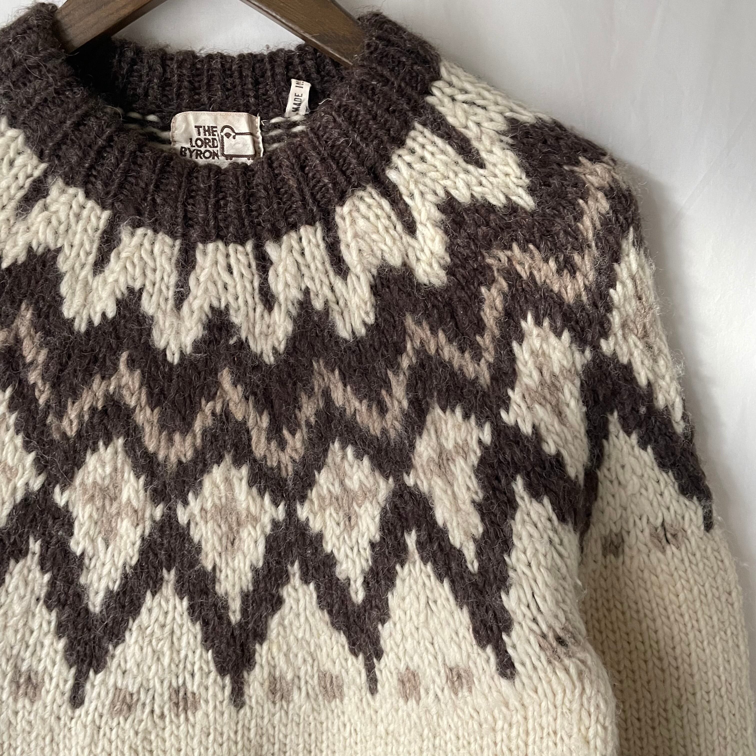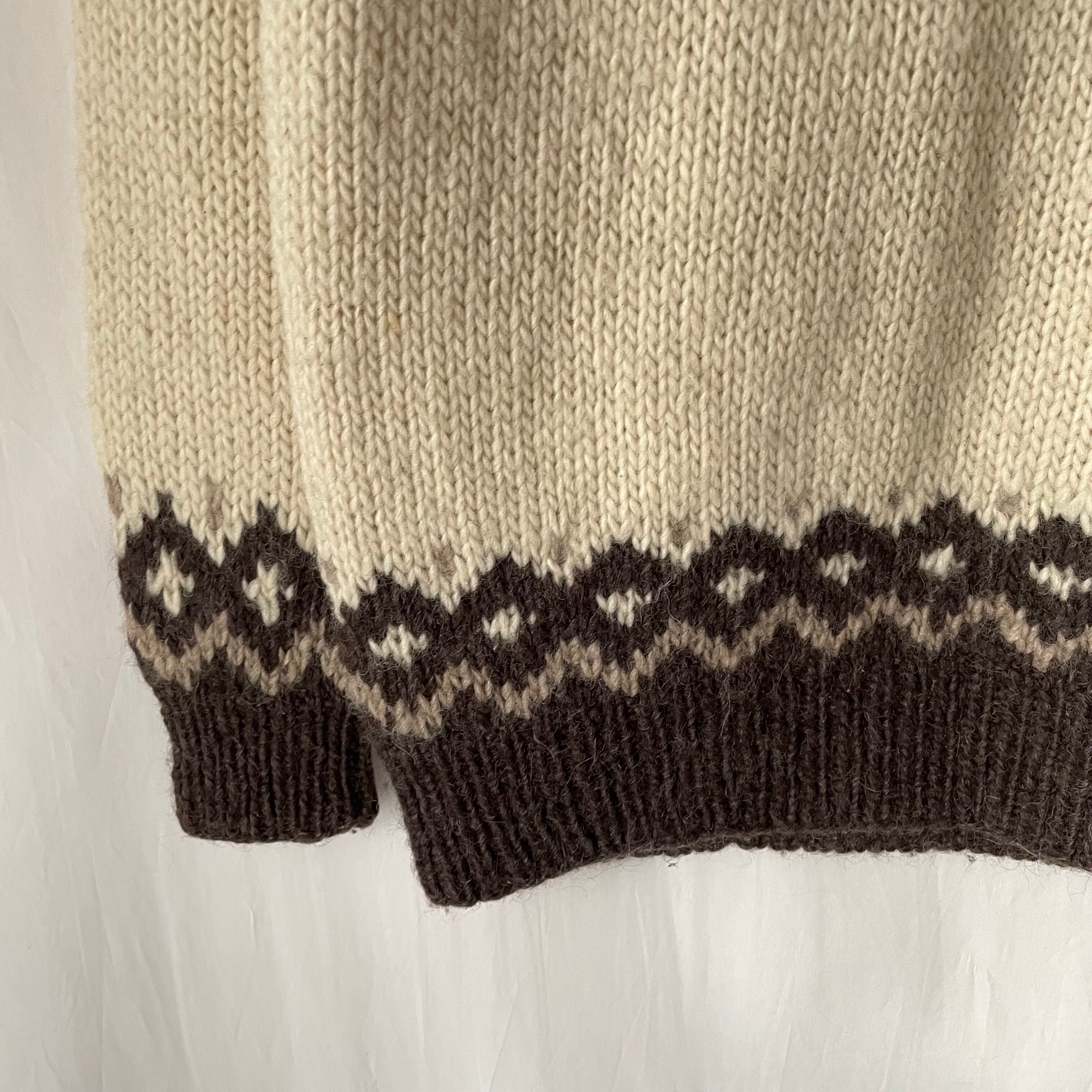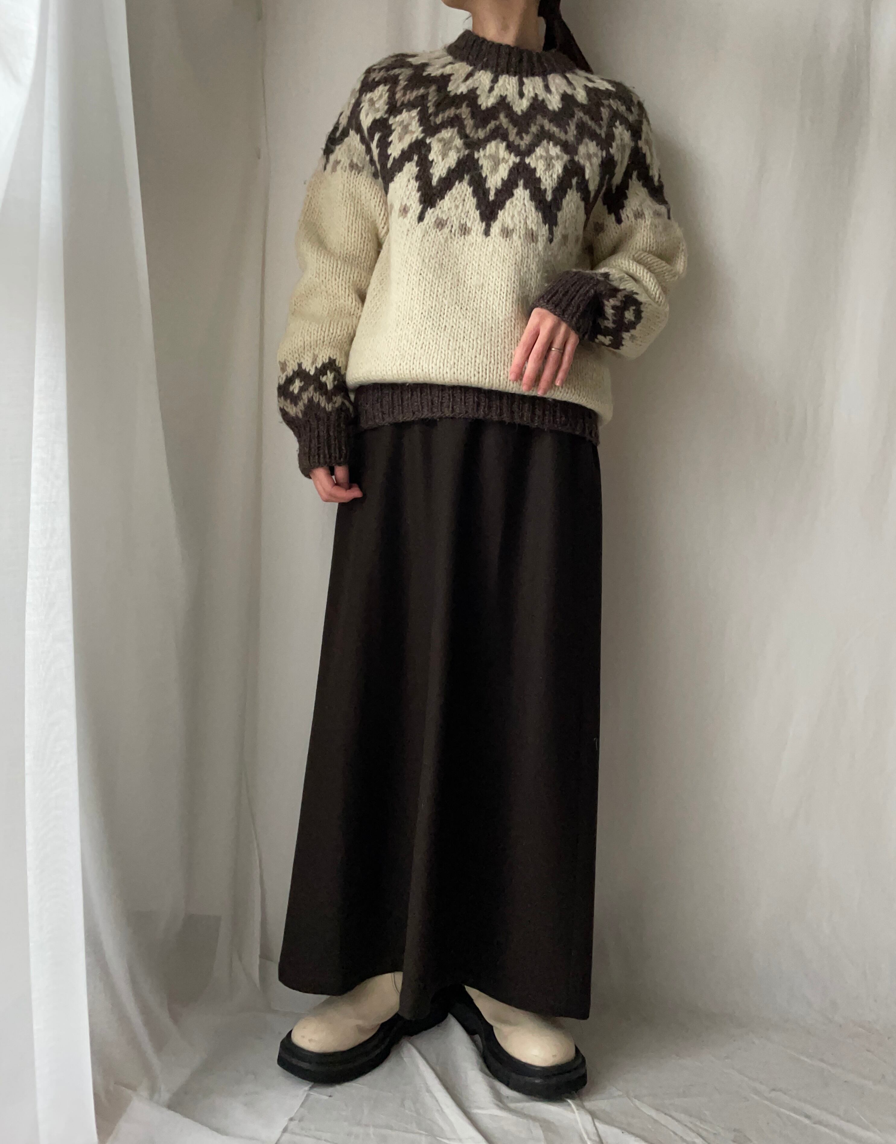 濃いめブラウンと優しいアイボリーの組み合わせが可愛いノルディックニット