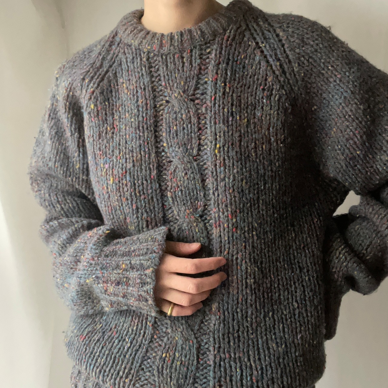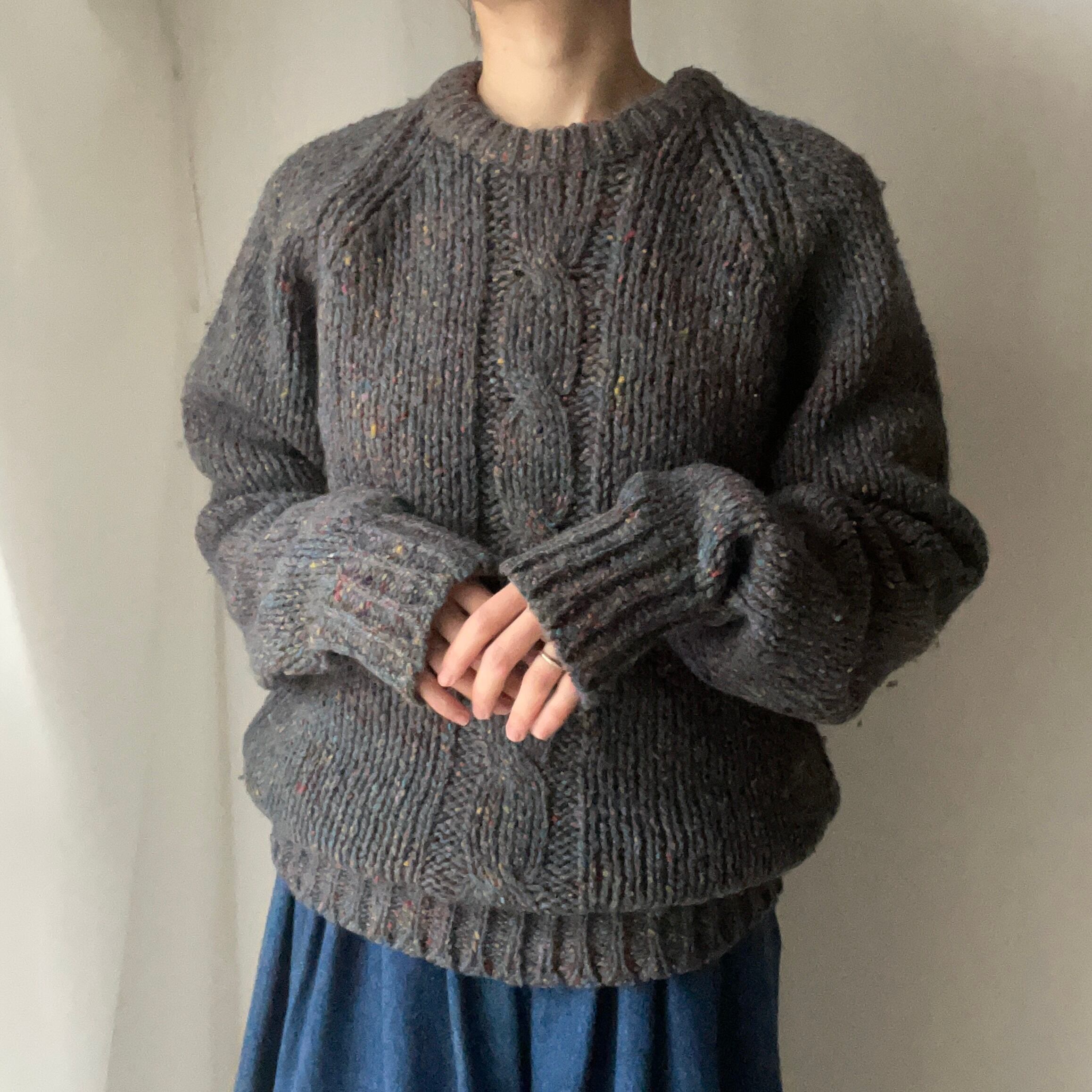 ブルーグレーのお色味にネップがたくさん入ったニット