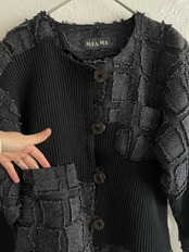 リブ素材とツギハギのようなデザインがドッキングしたジャケット