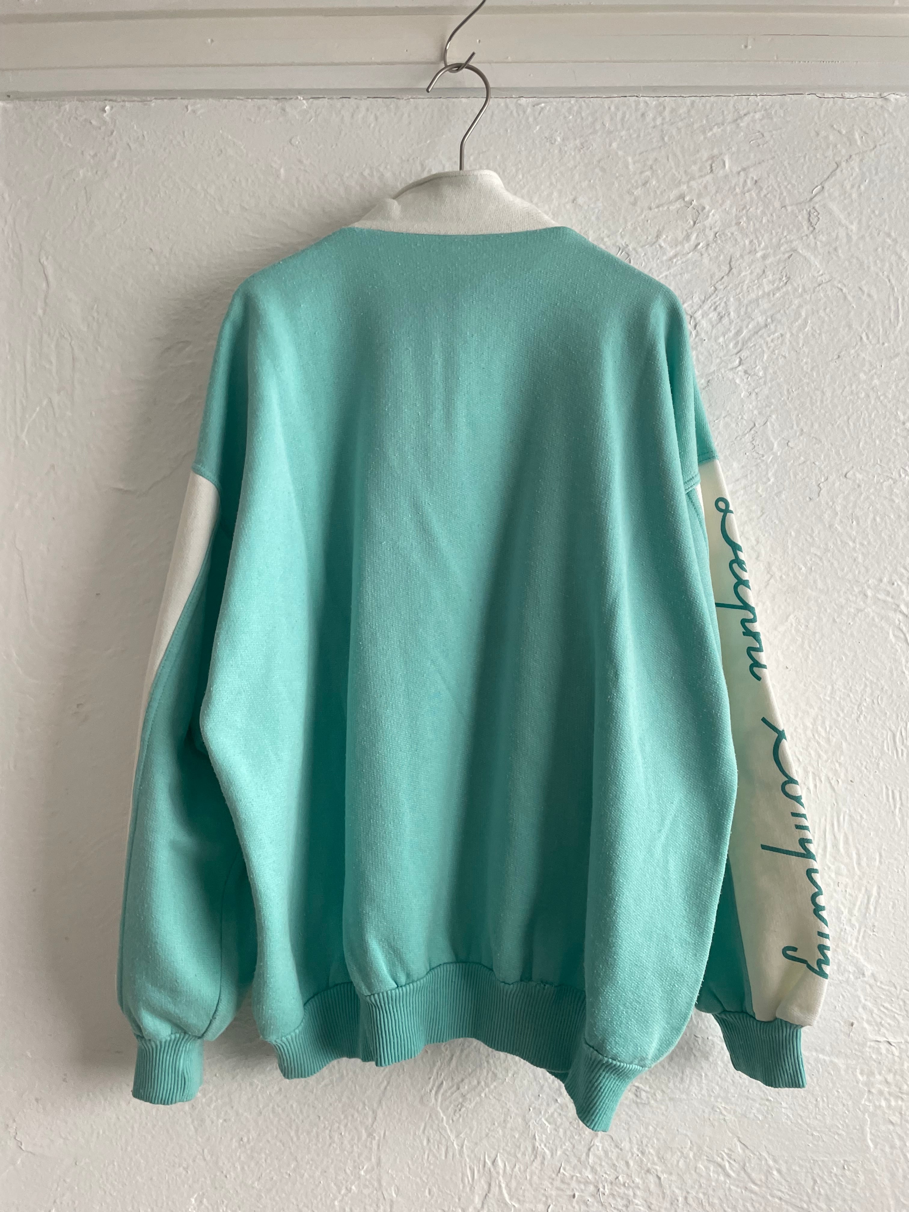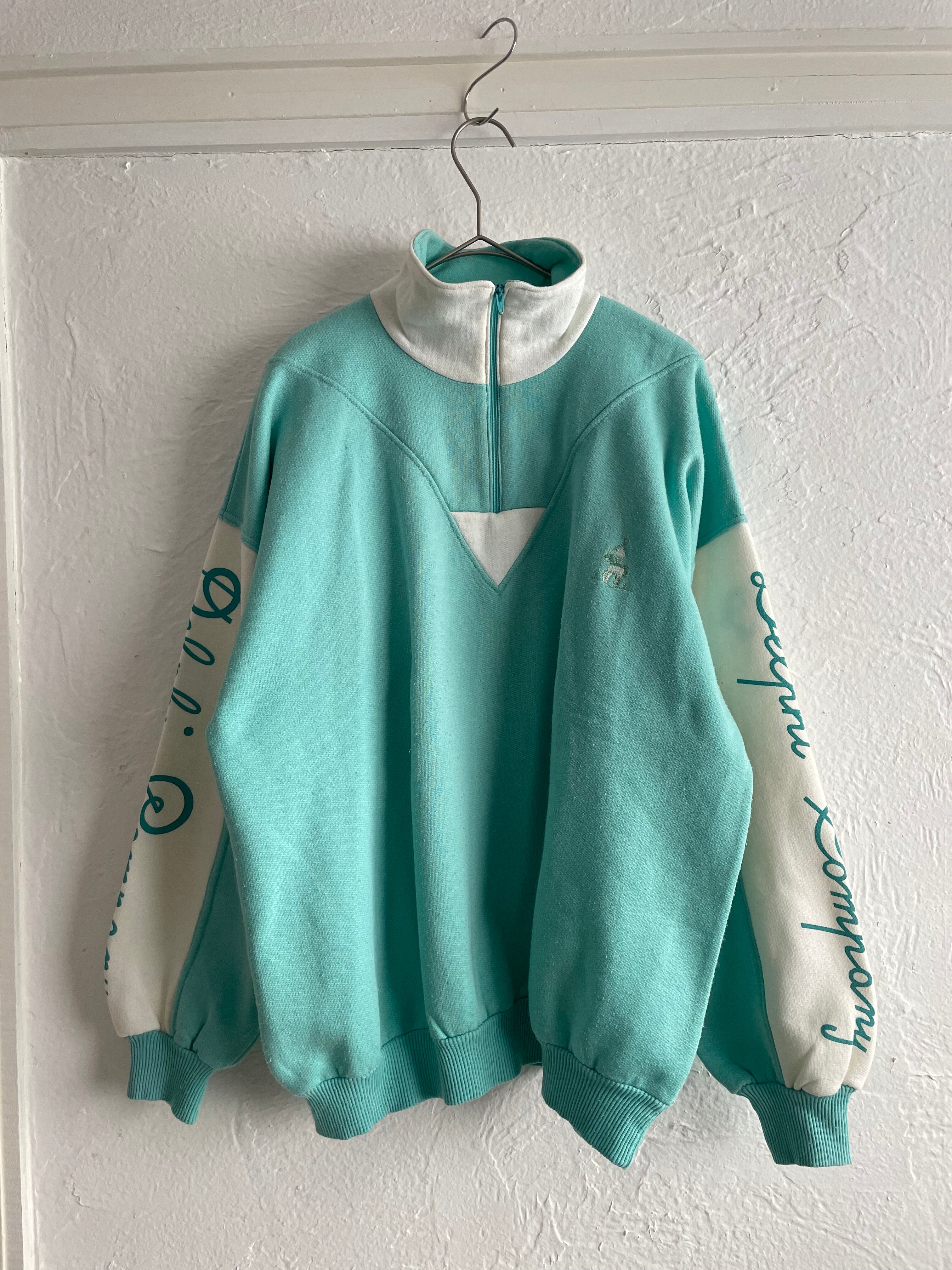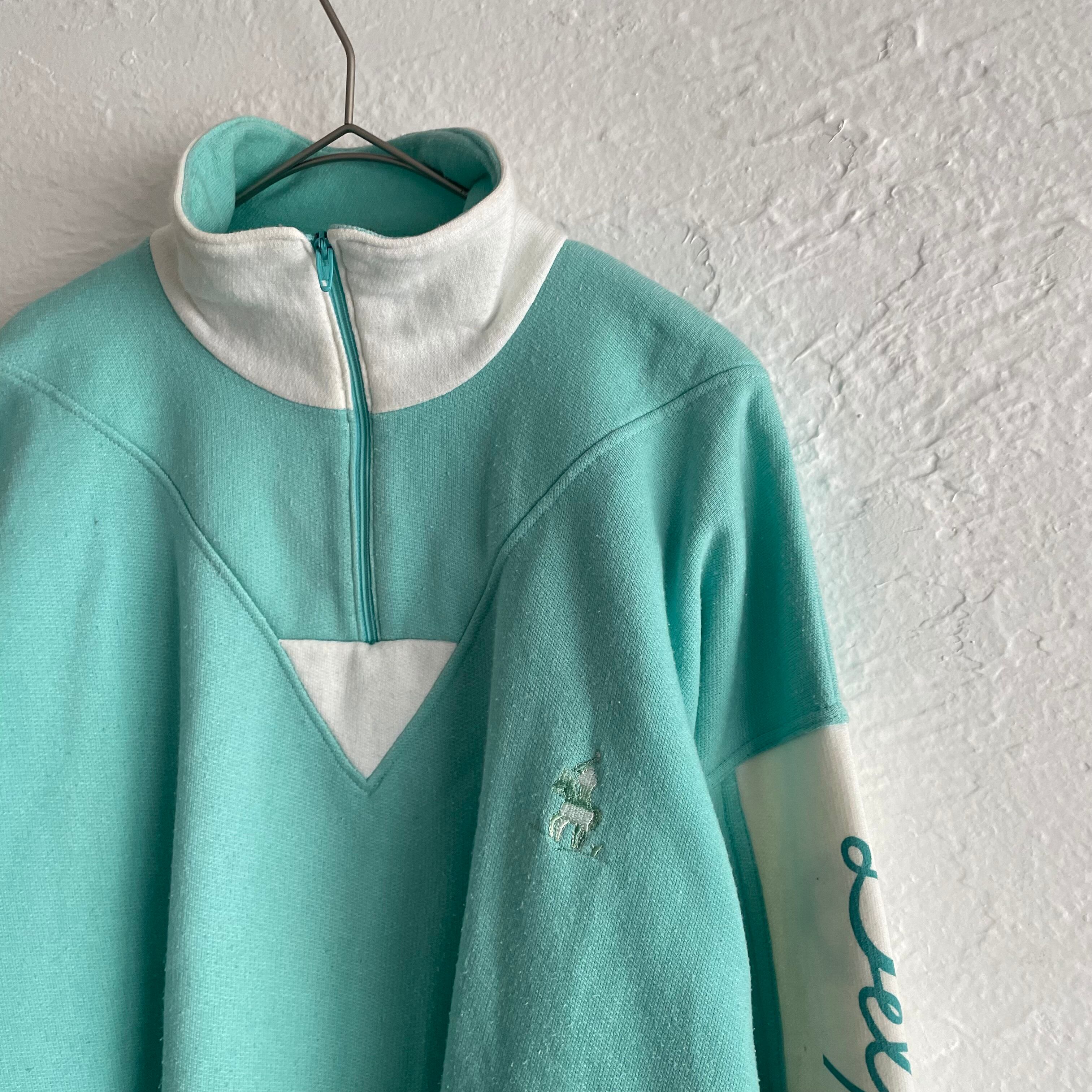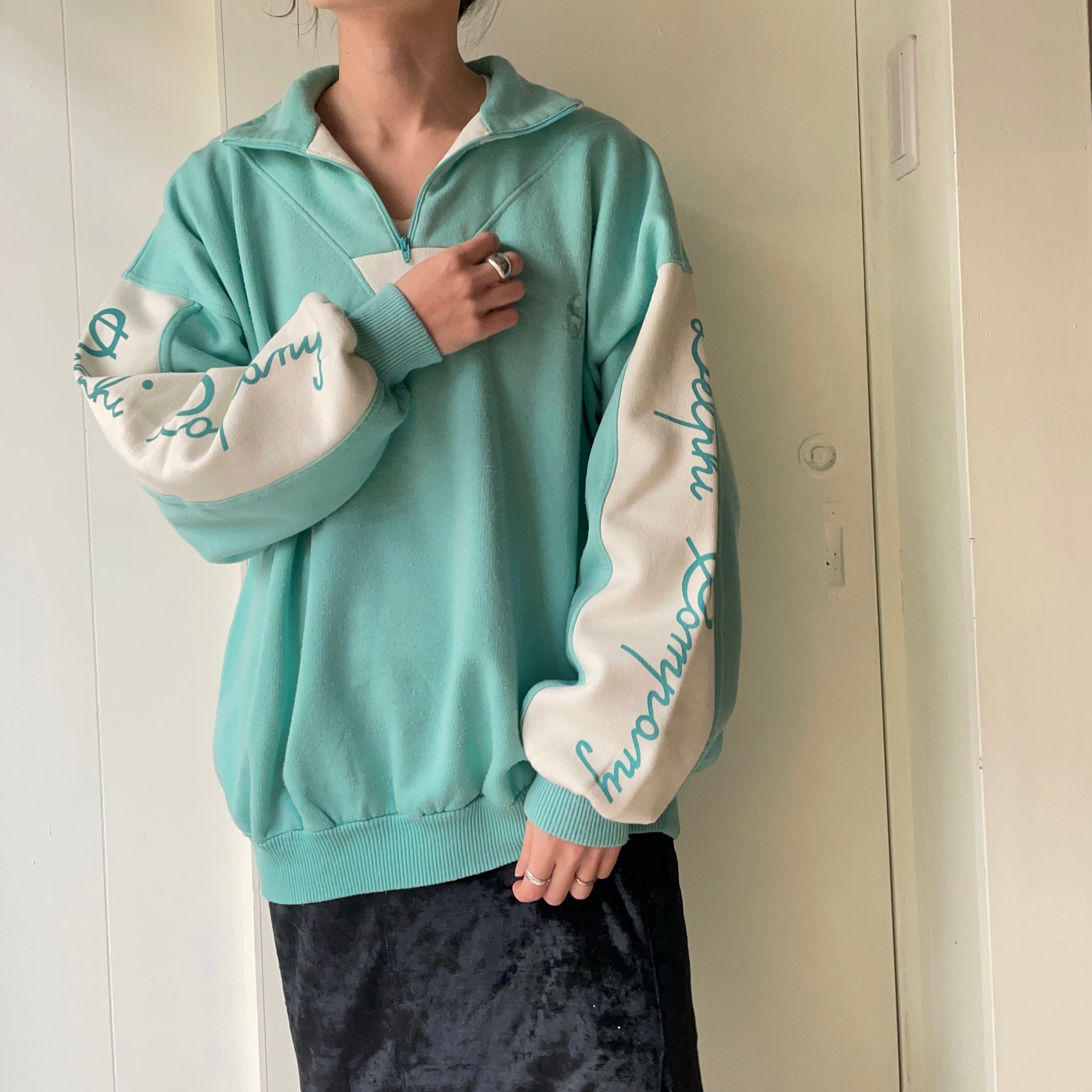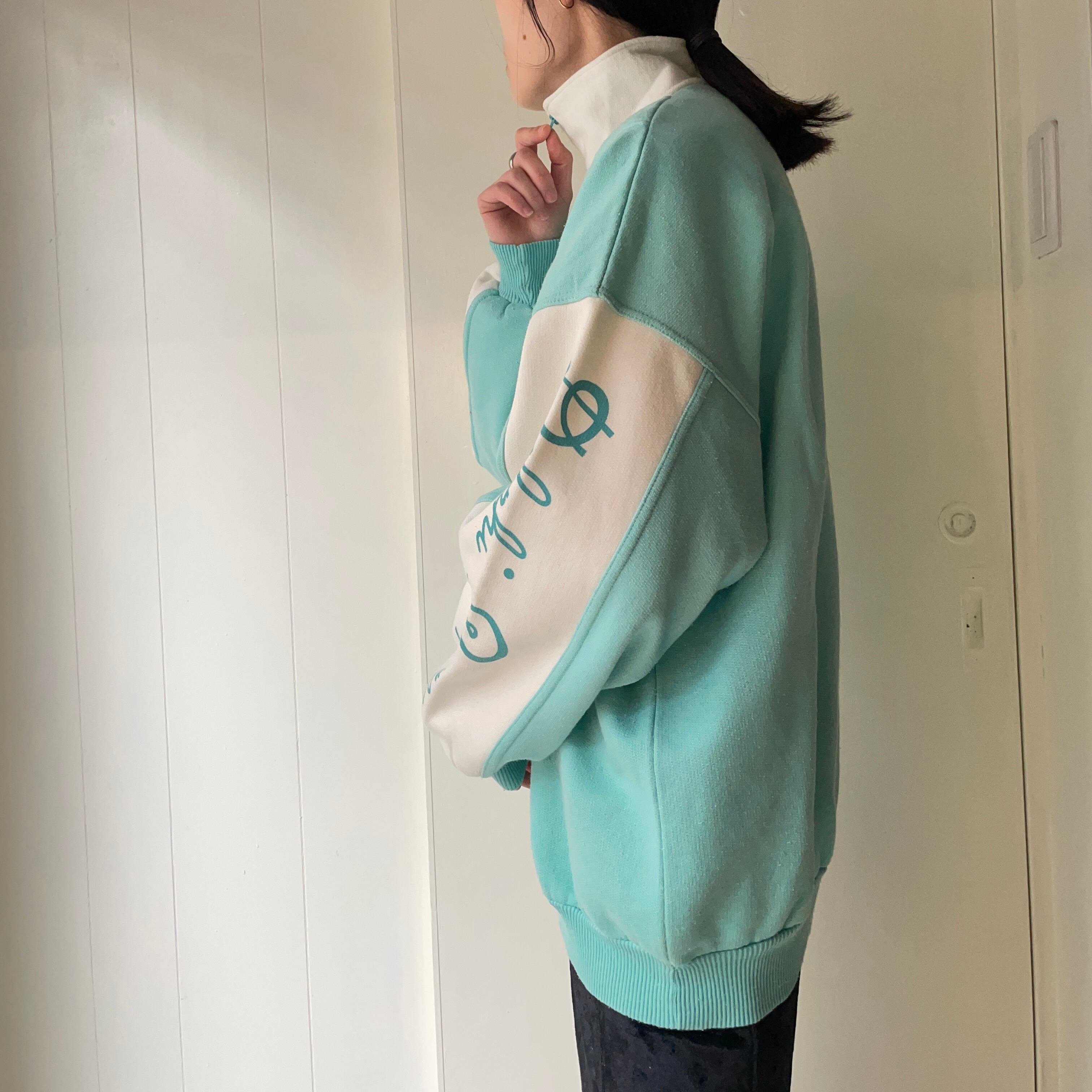 爽やかなミントグリーンとホワイトの組み合わせが可愛いハーフジップスウェット