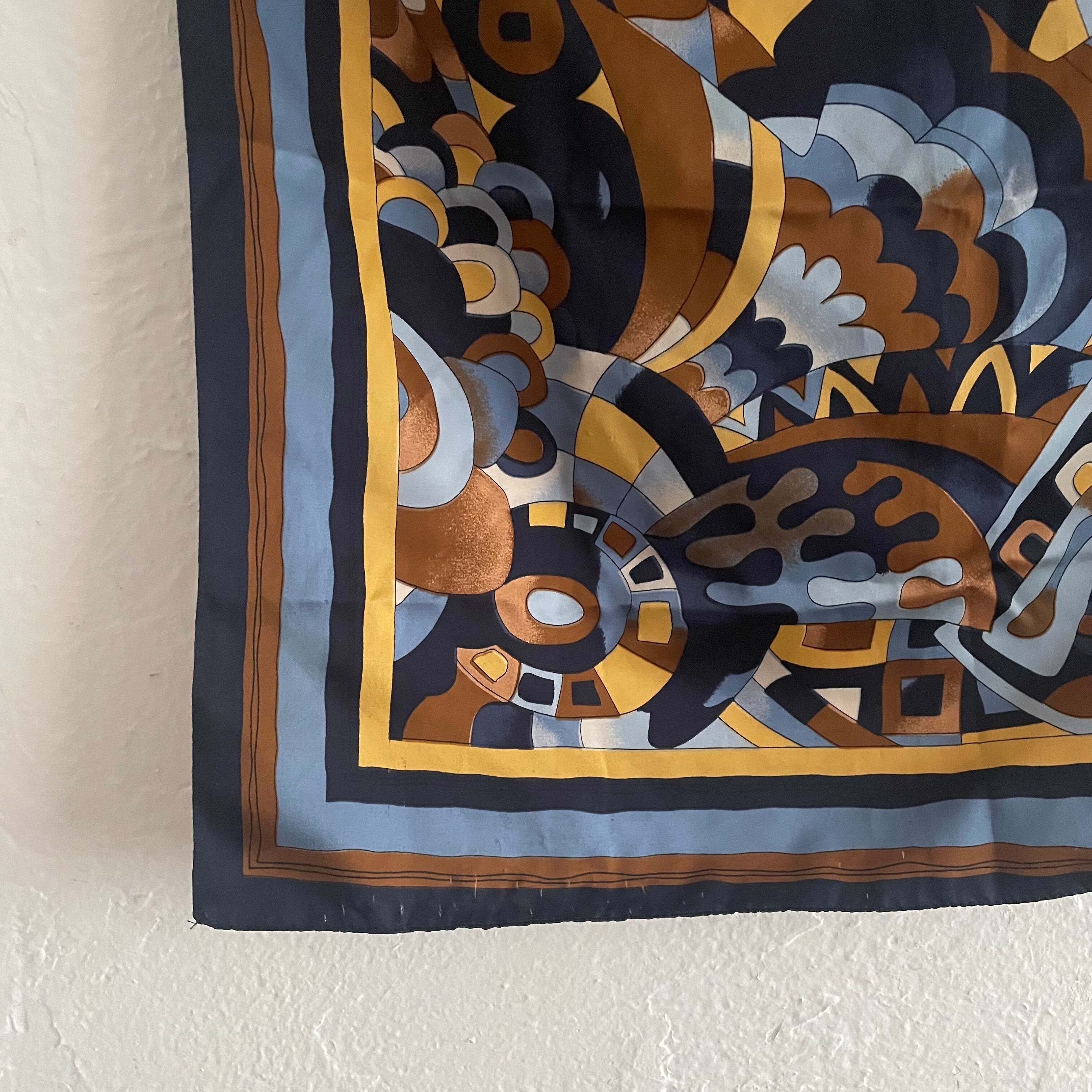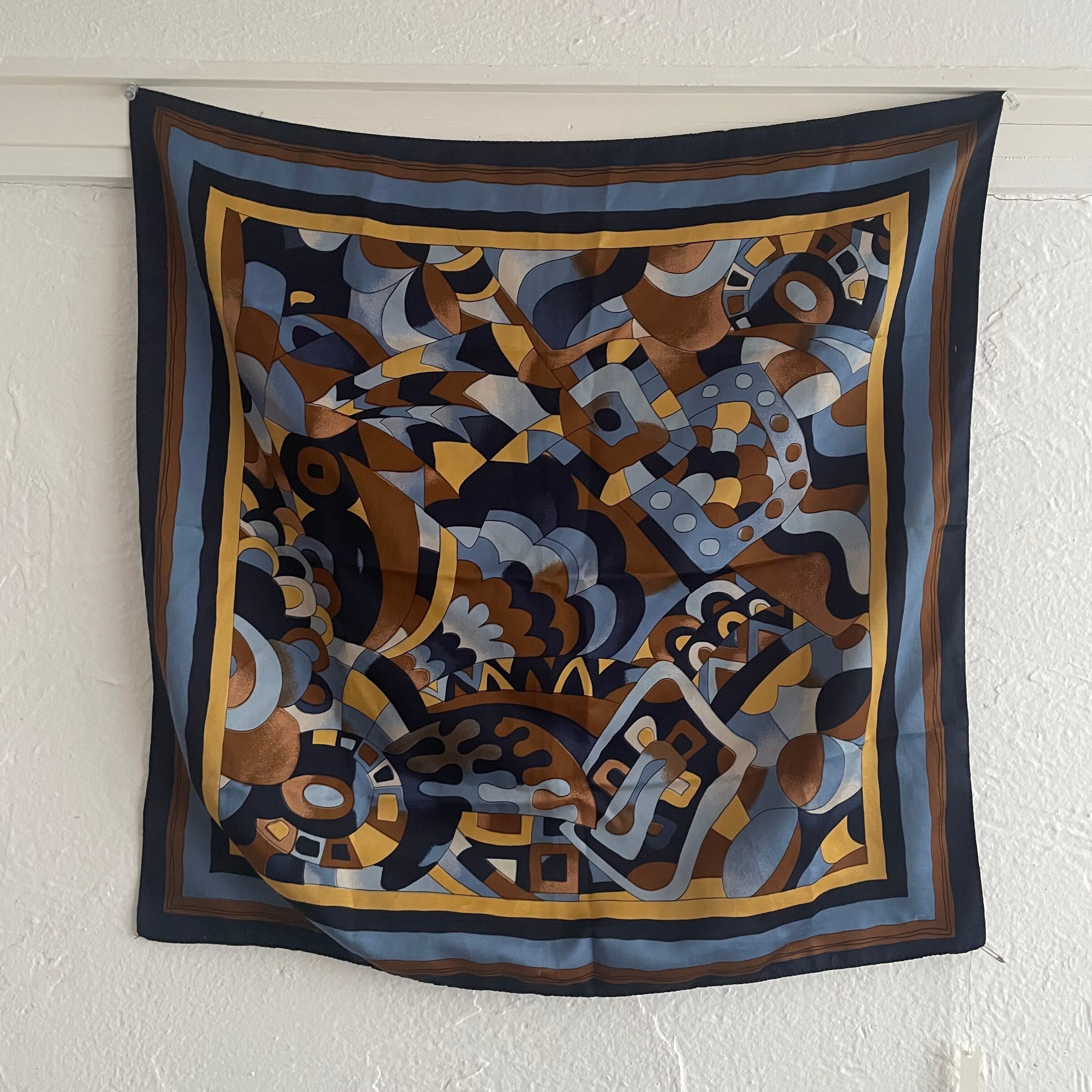 ブルートーンの幾何学模様のスカーフ