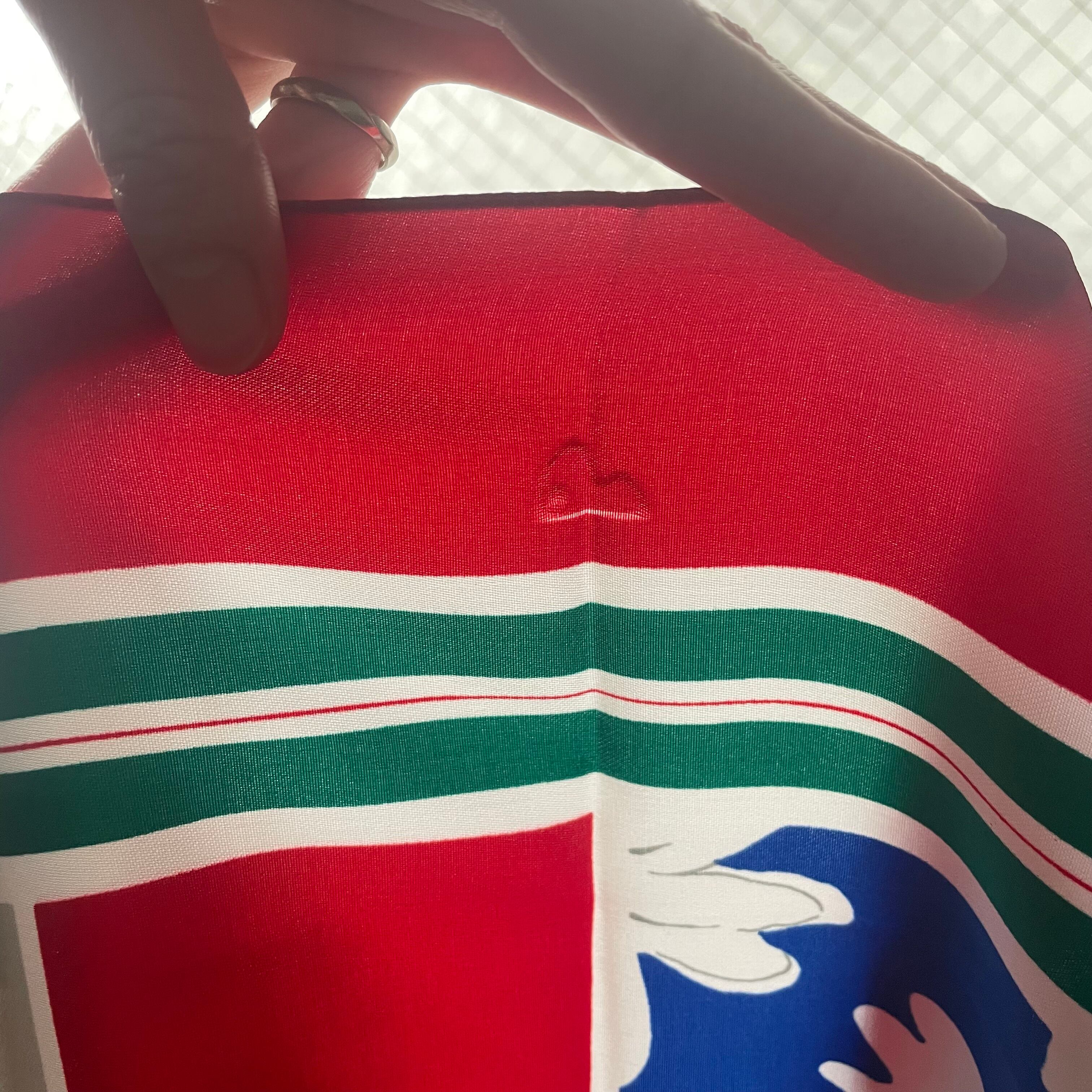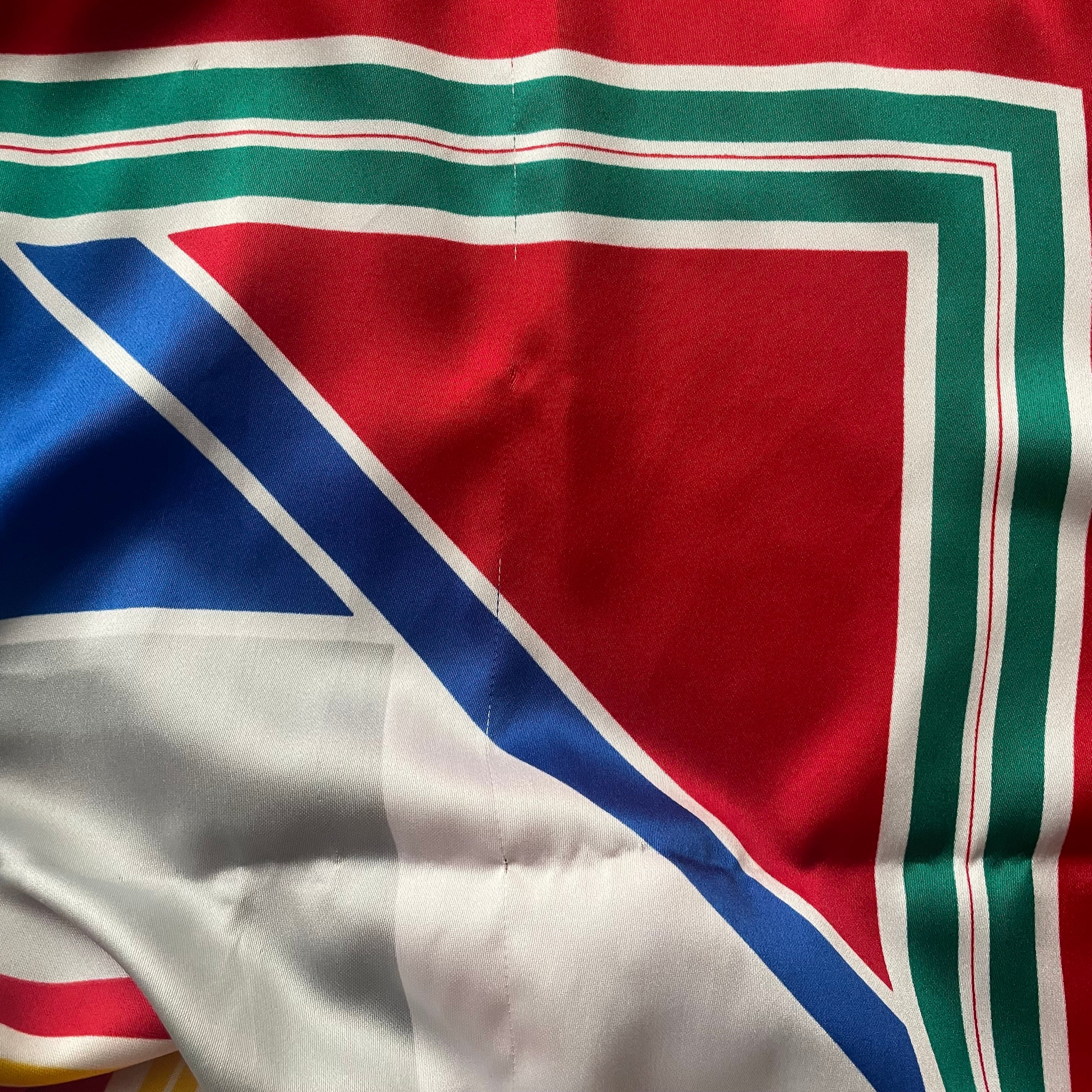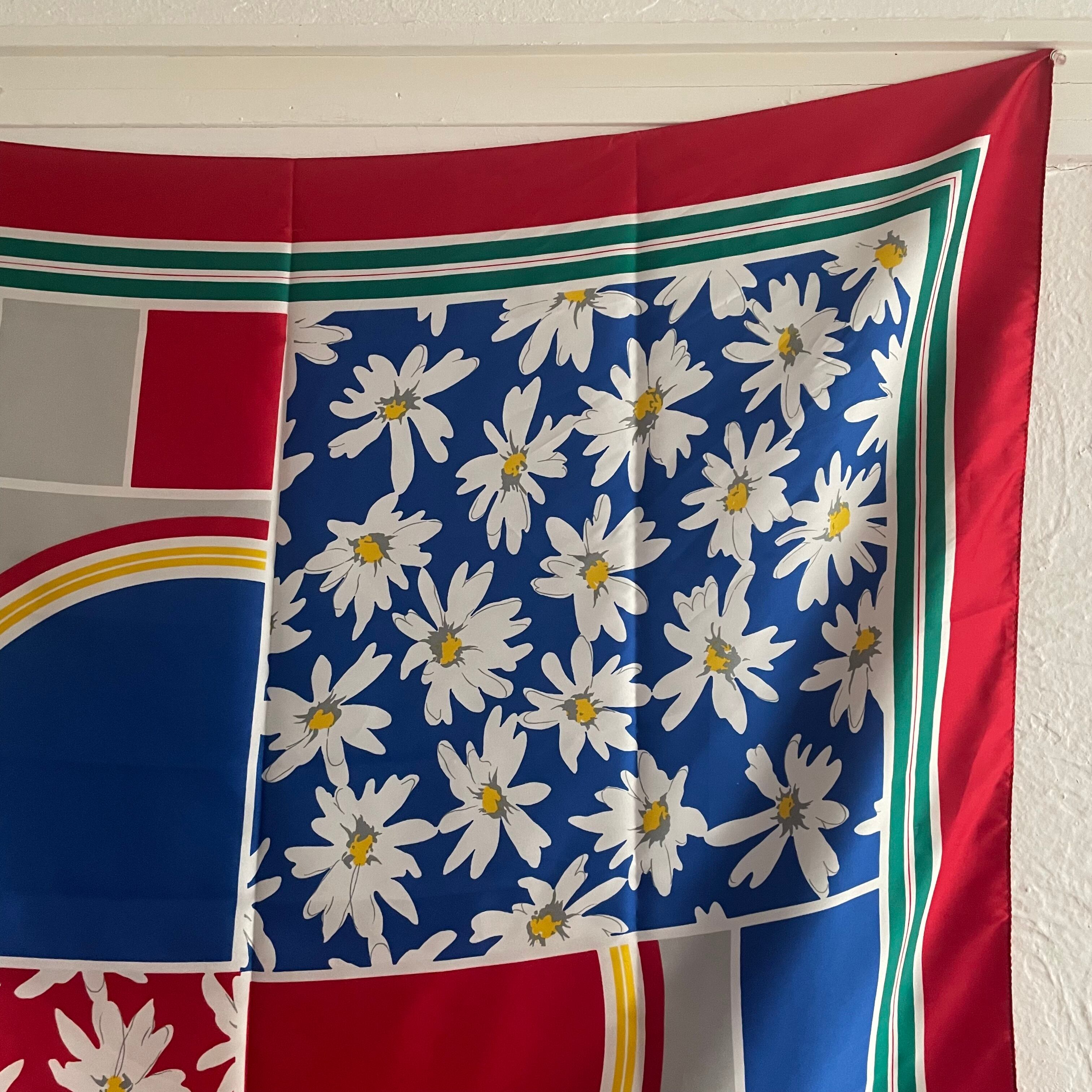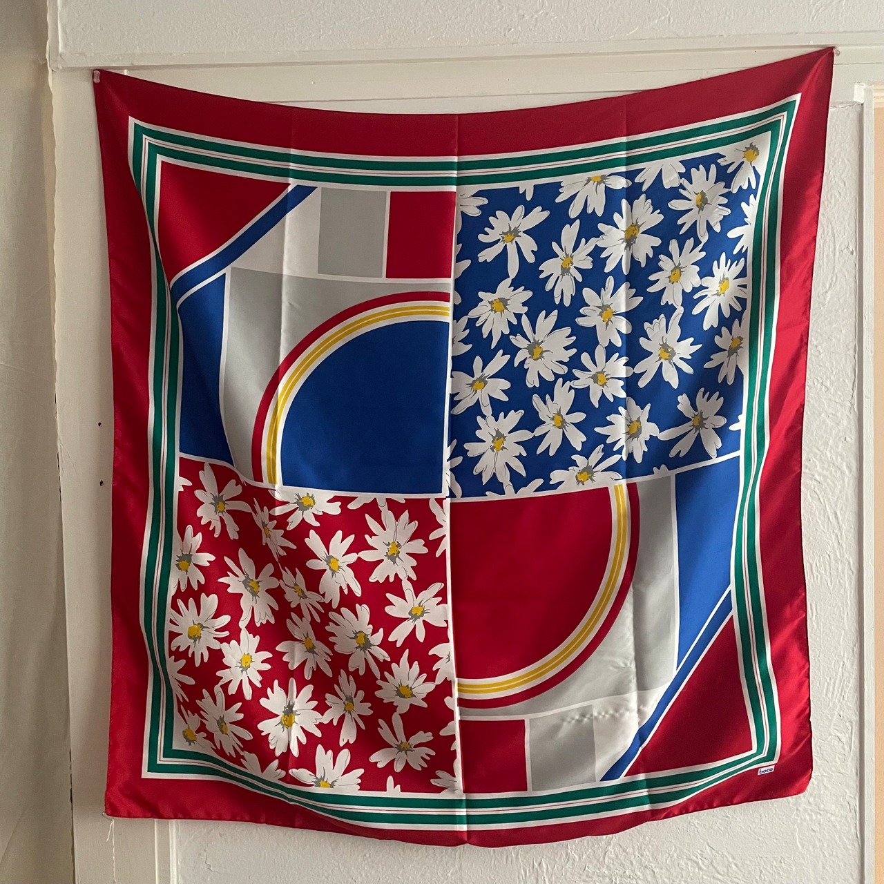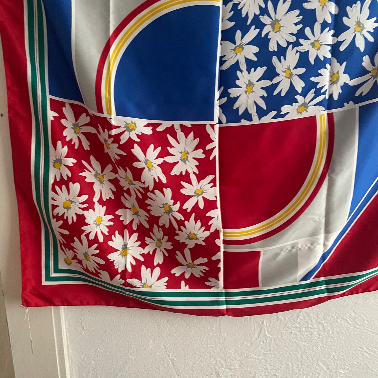 お花柄と幾何学模様が合わさった珍しいデザインのスカーフ