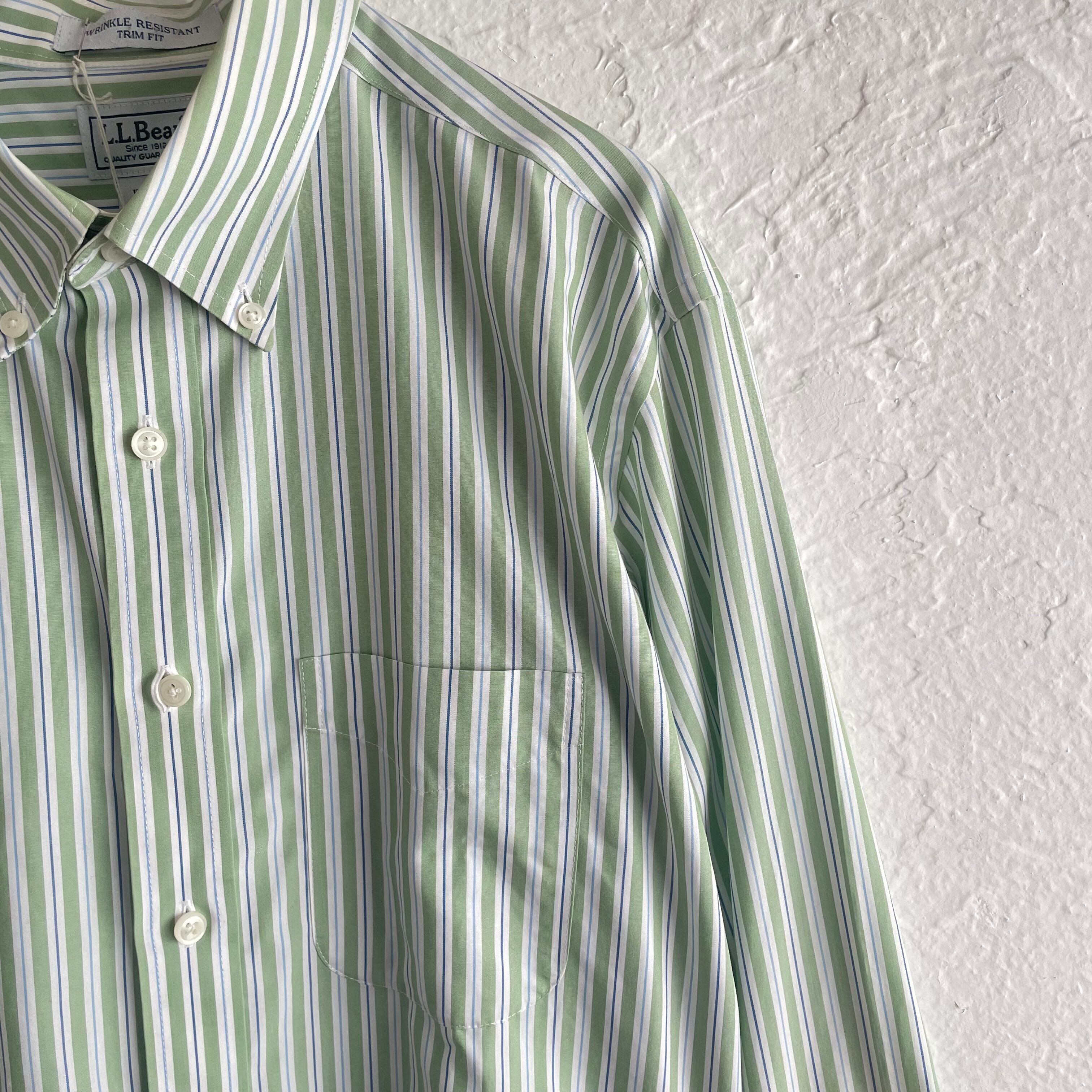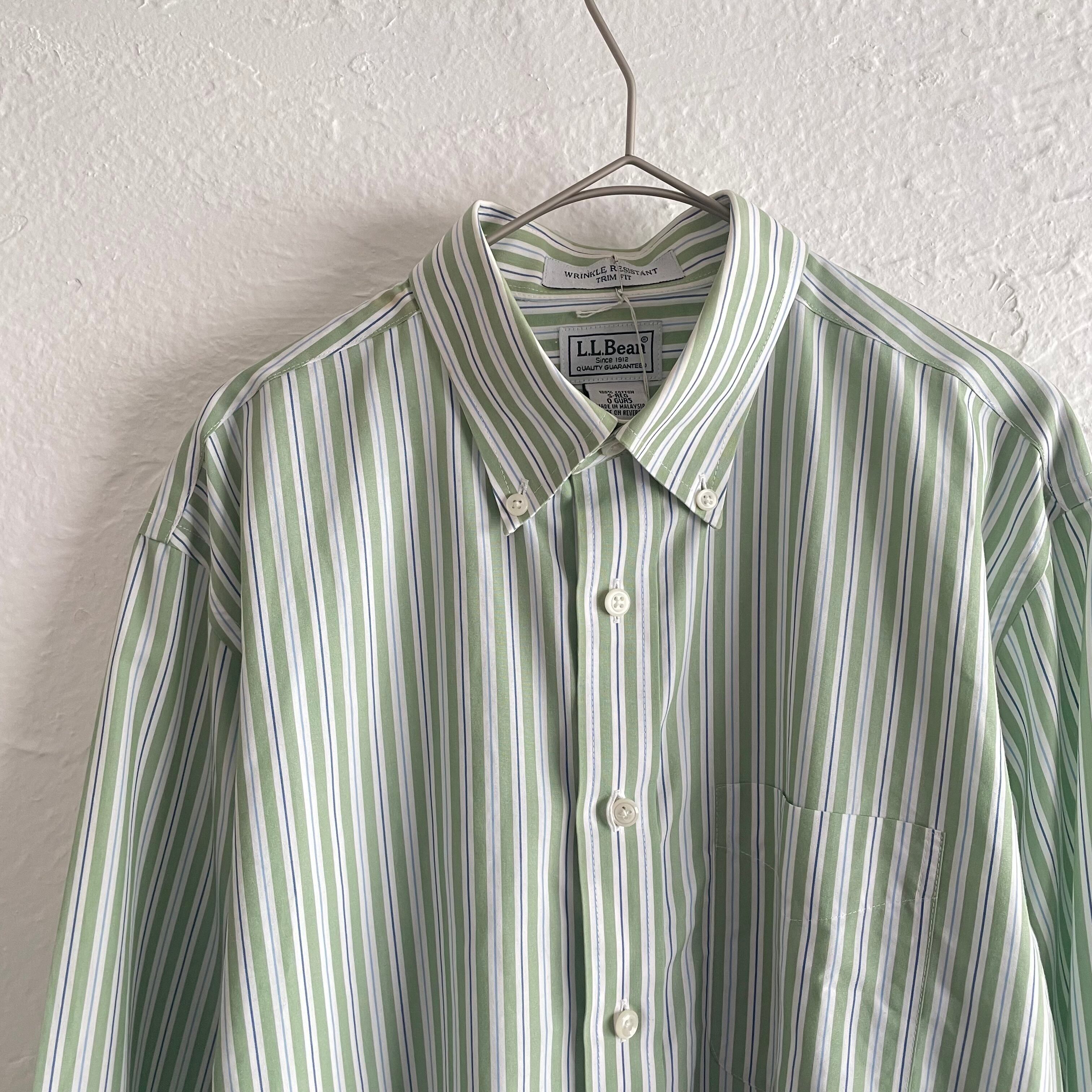 L.L.Beanの春らしい若葉色のカラーが可愛いストライプシャツ