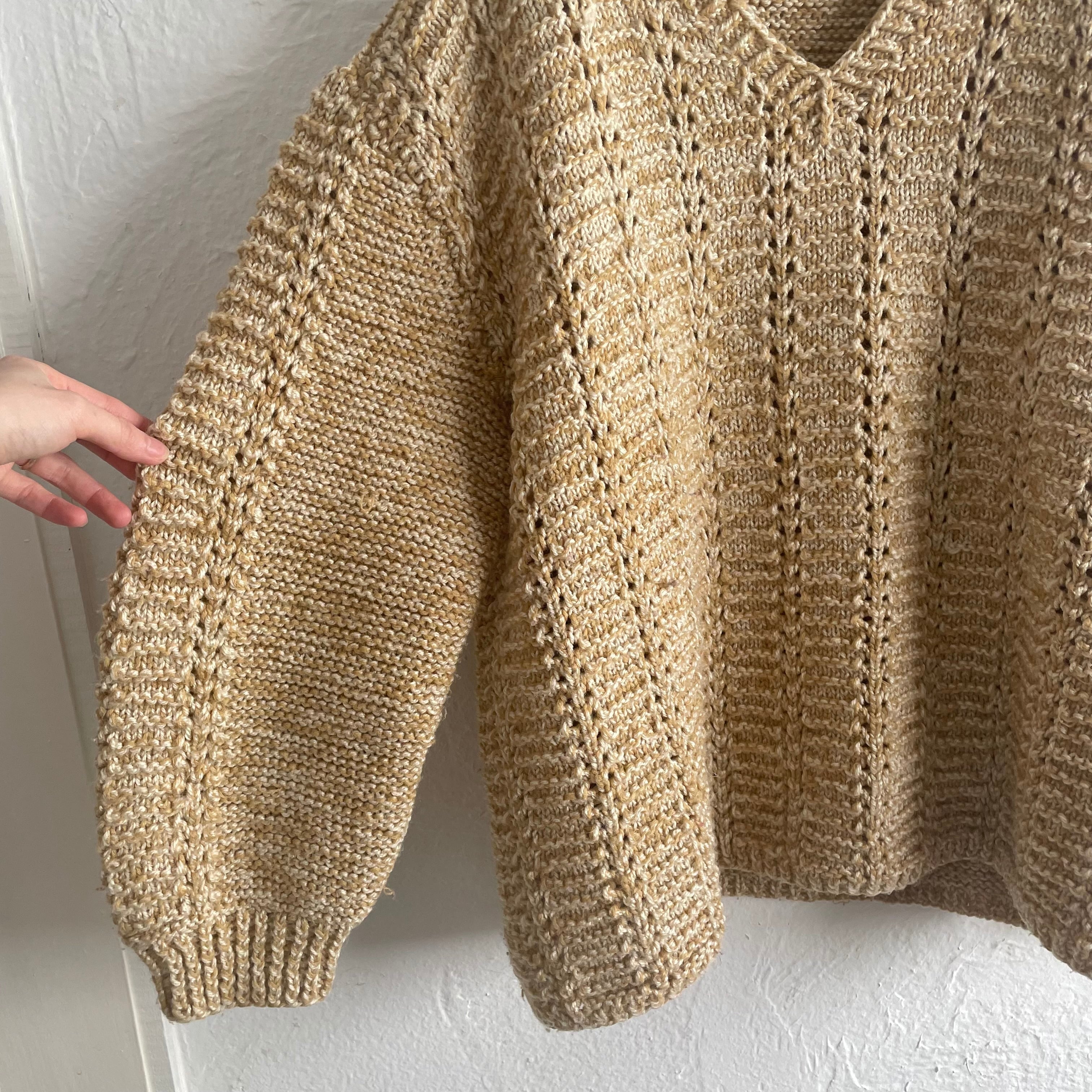 透かし編みやぽってりとした袖のかたちと、ゆったりとした身幅、肩落ちのシルエットなど可愛いポイントが詰まったコットンニット