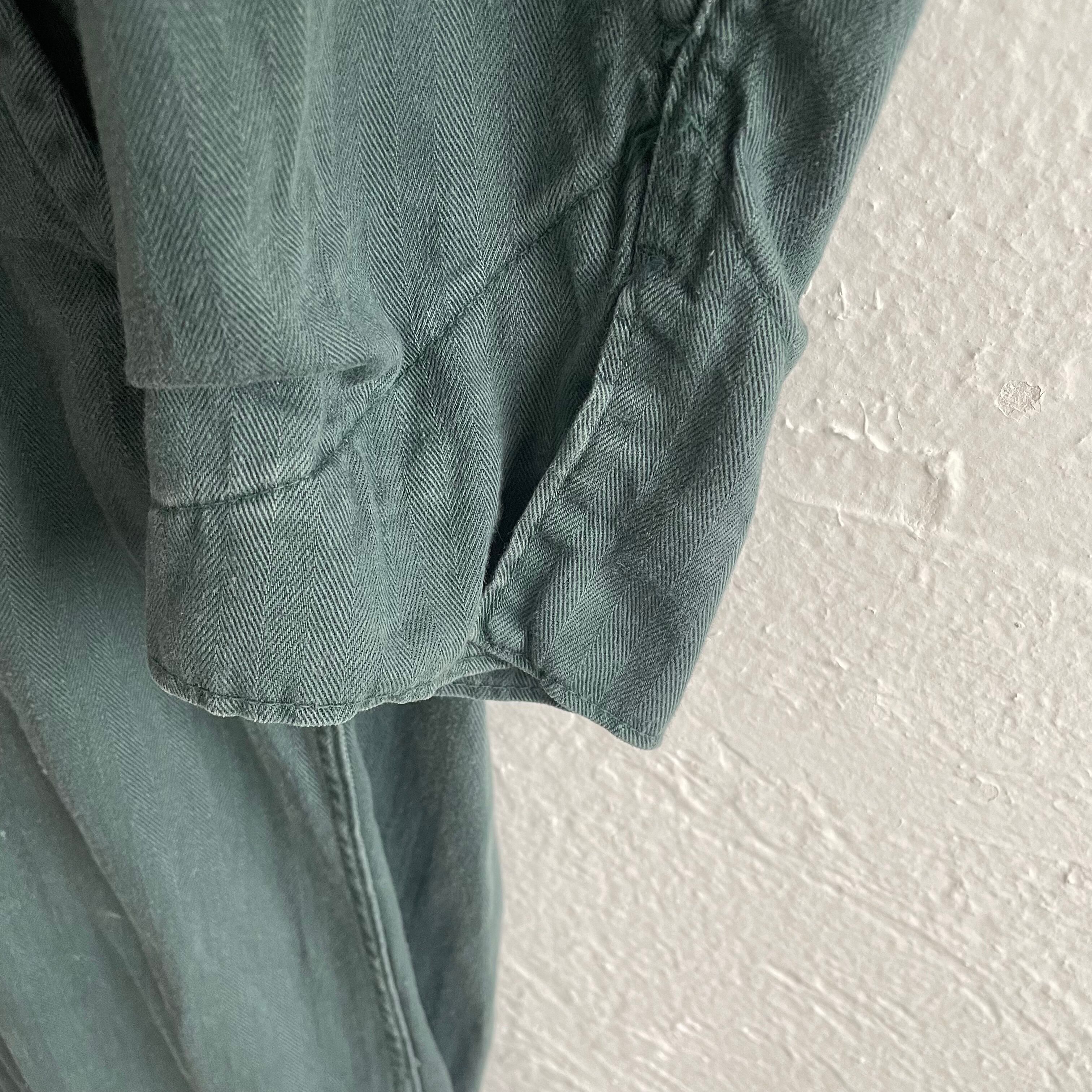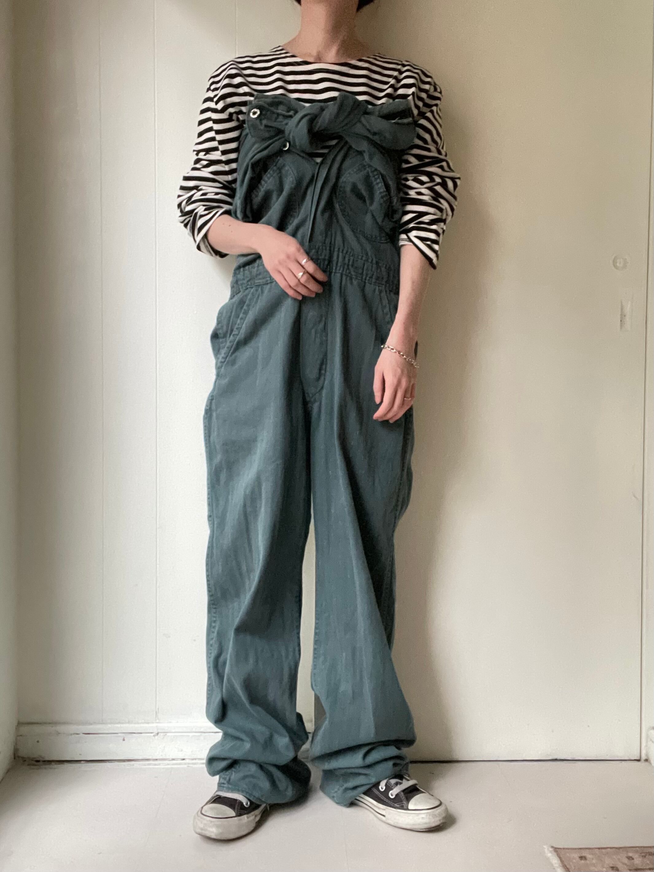 くすんだグリーンのようなカラーも可愛く、そのまま着るのはもちろん、腰巻きやビスチェ風など着回しが楽しめるアイテムです◎