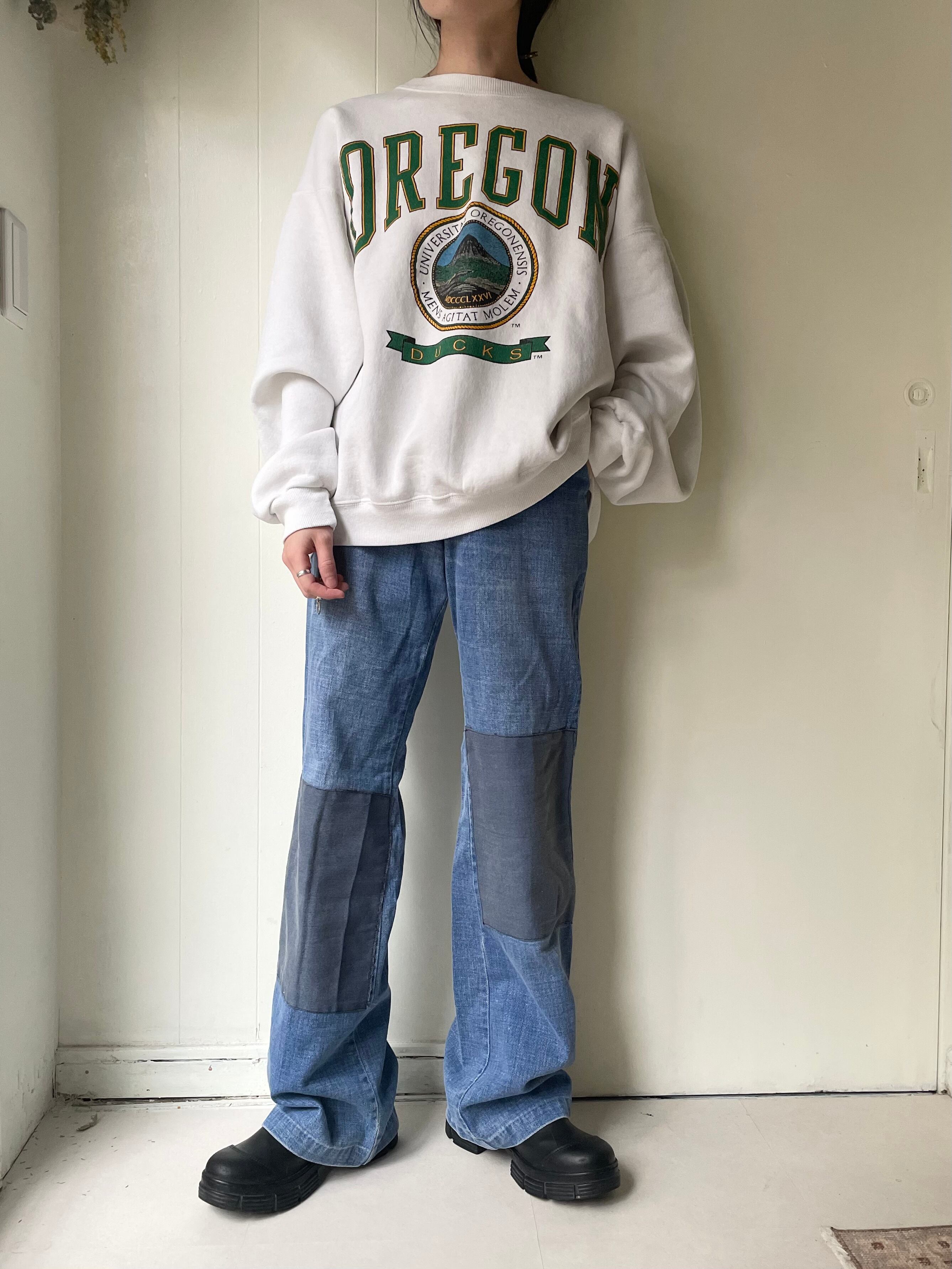 とても履きこなされた1枚のようで、とろっとしたコットンの生地に良い色落ち具合、パッチのお直しのデザインに、TALON社のアルミジッパーなどなど、、、