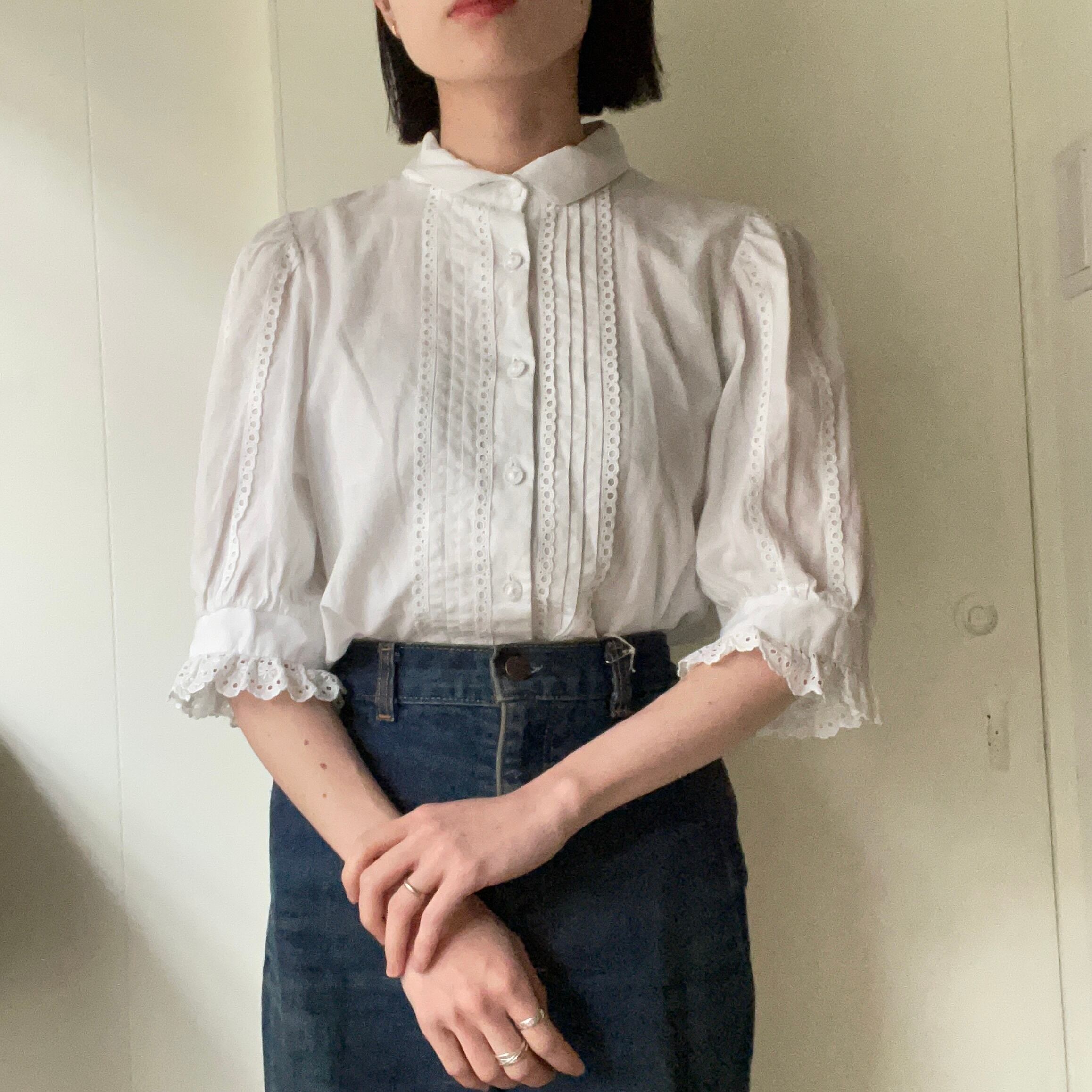 レース等控えめのデザインなので甘くなりすぎずに着ていただける1枚です