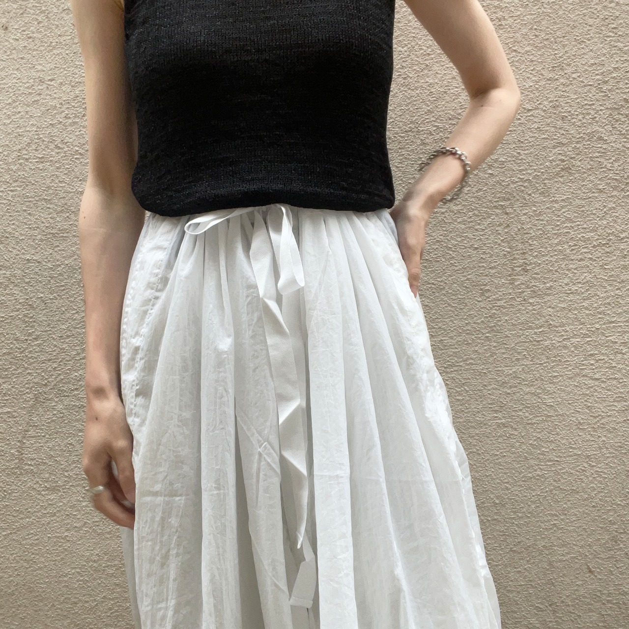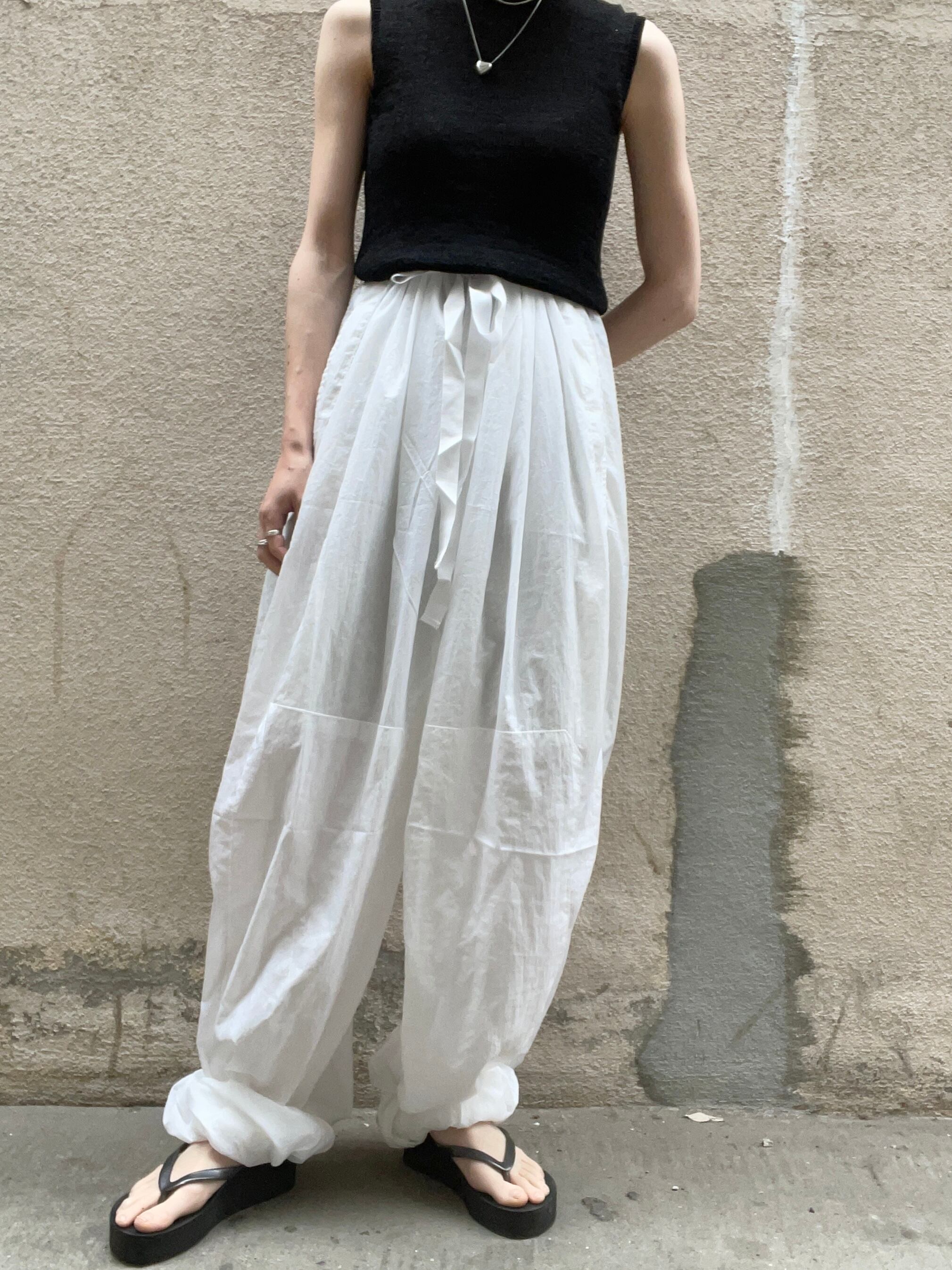 柄物のパンツを重ねて透け感を楽しんでいただくのもおすすめです◎