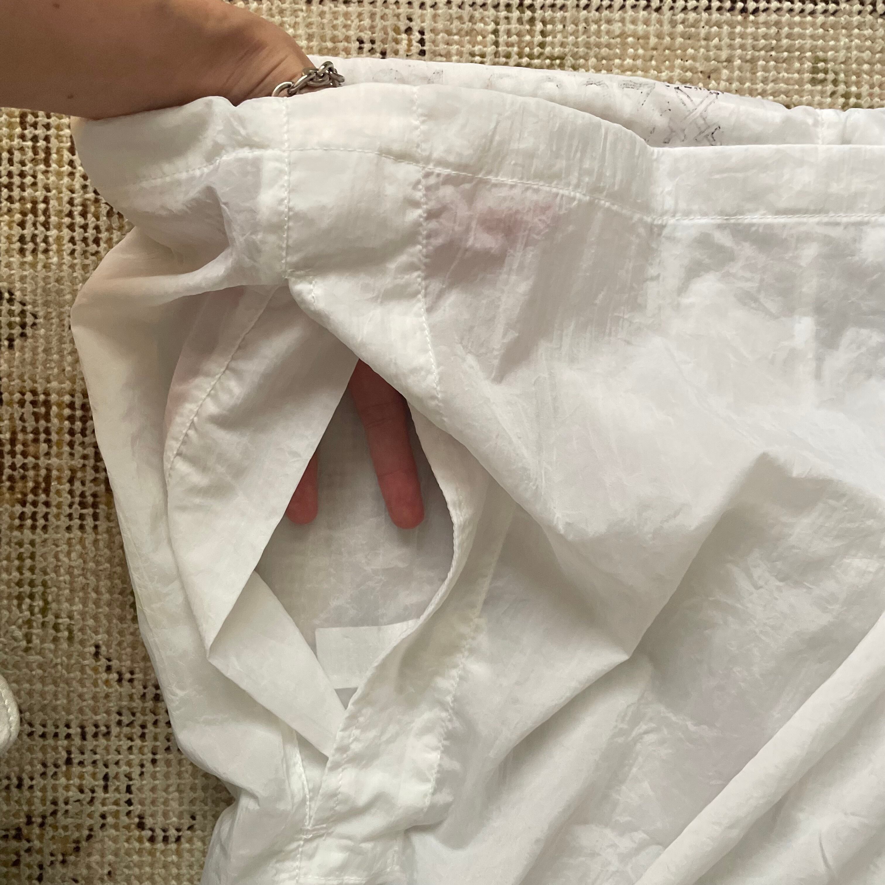 夏でも着用しやすい薄いナイロン素材にオーバーパンツ仕様の為、両サイドのポケットは貫通ポケットとなっております