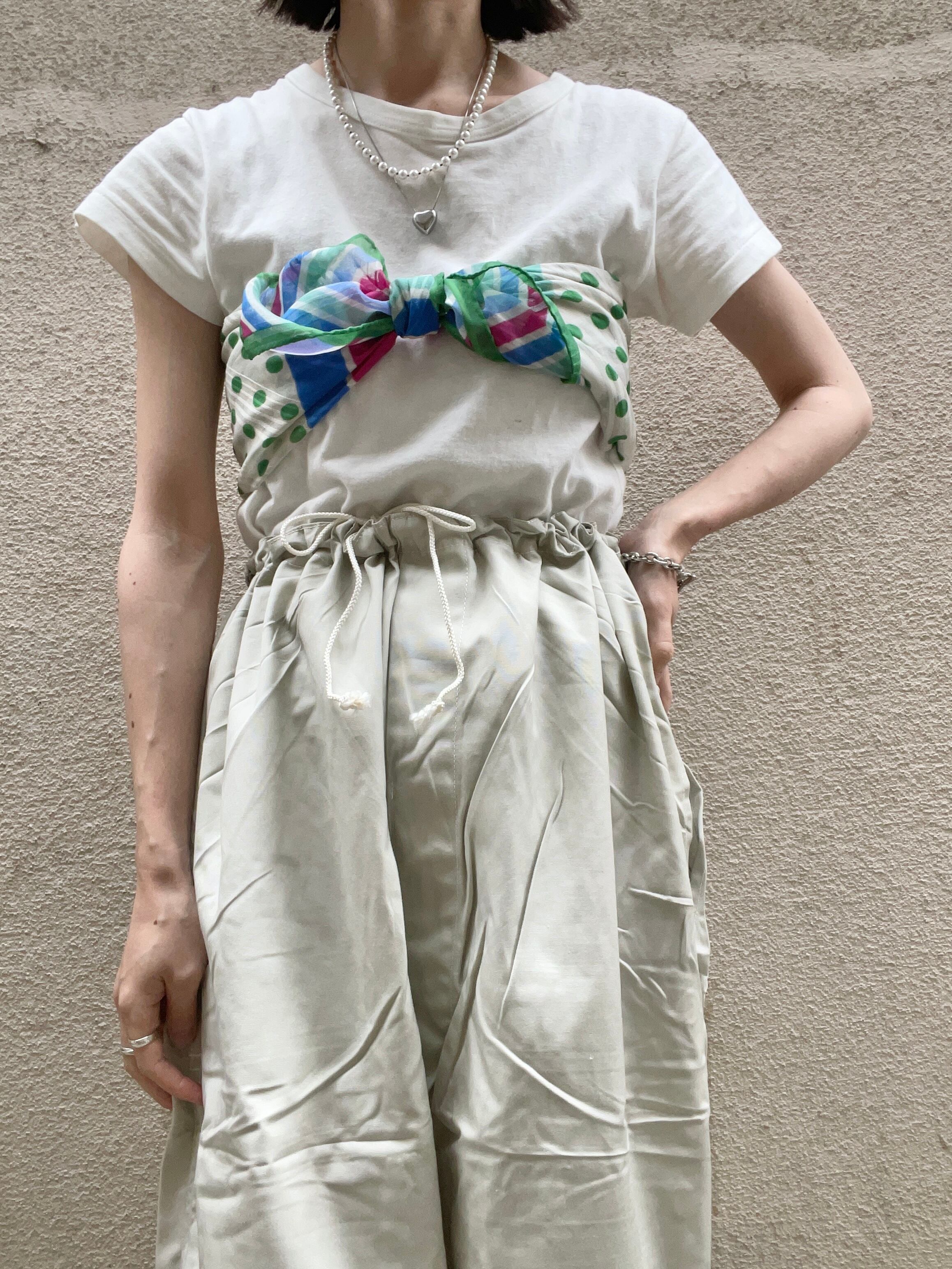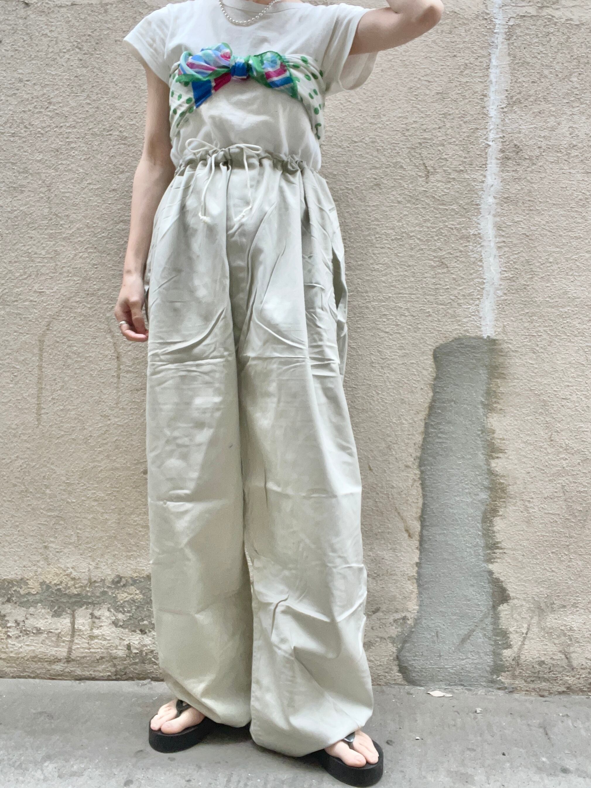 ウエストはコードで絞れるようになっており、両サイドの貫通ポケットは縫ってあるので1枚でも着用していただけます◎