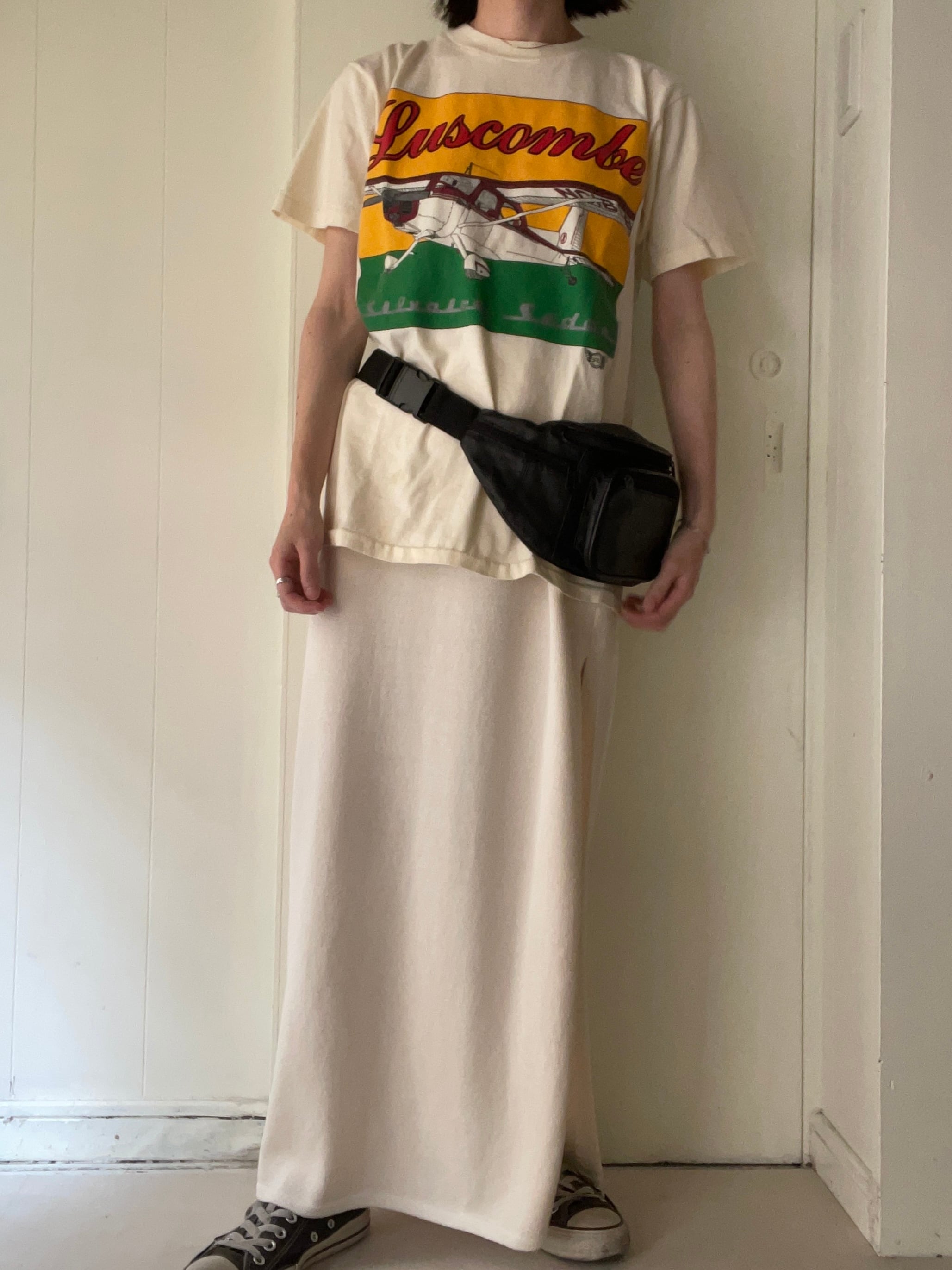サイドのスリットが深めに入っているので、デニムやレース系のアイテムを重ねて履いていただくのも可愛いです○