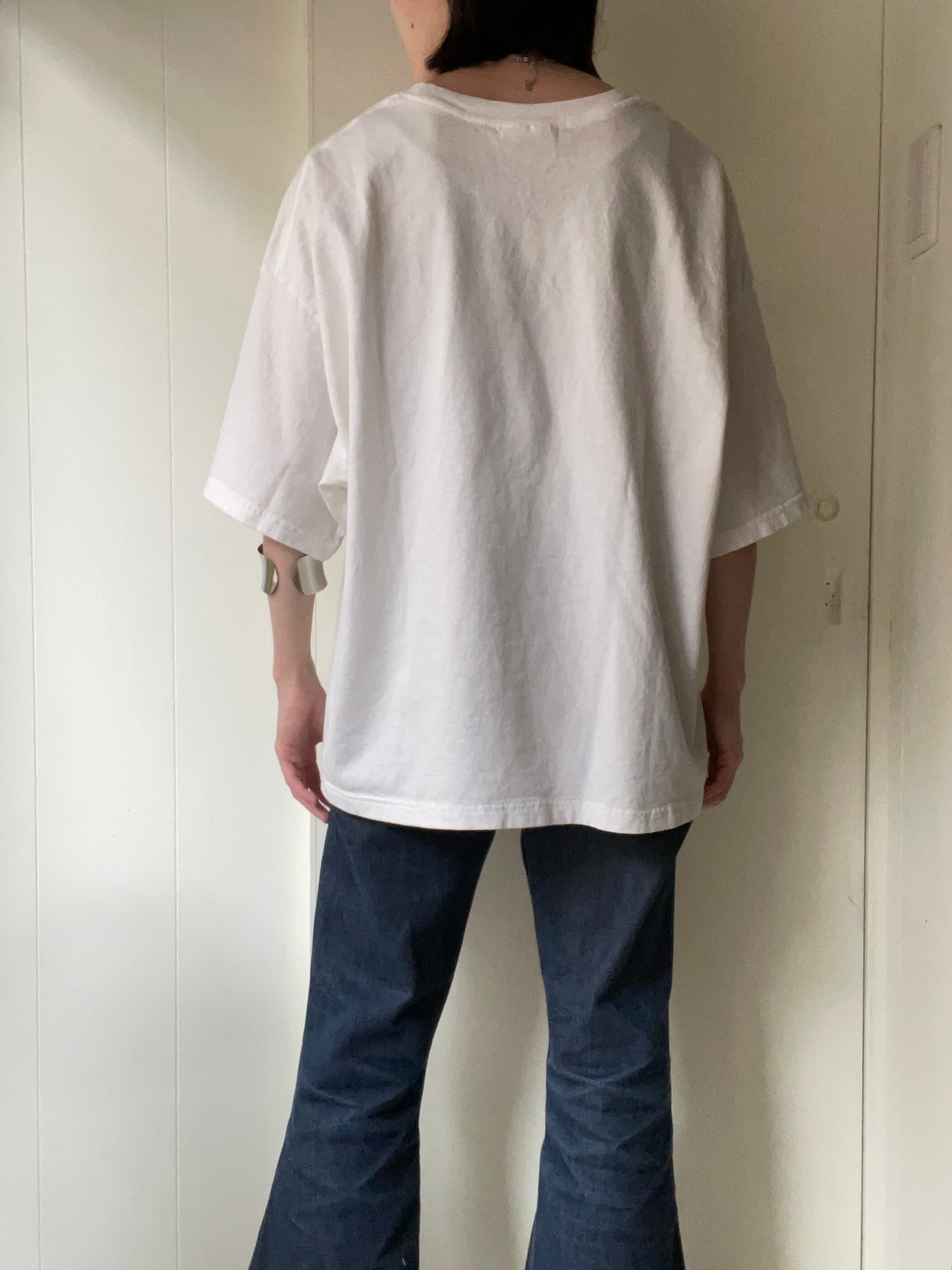 ゆったりとしたボックスシルエットですが、レディースサイズなので大きすぎず良いサイズ感です