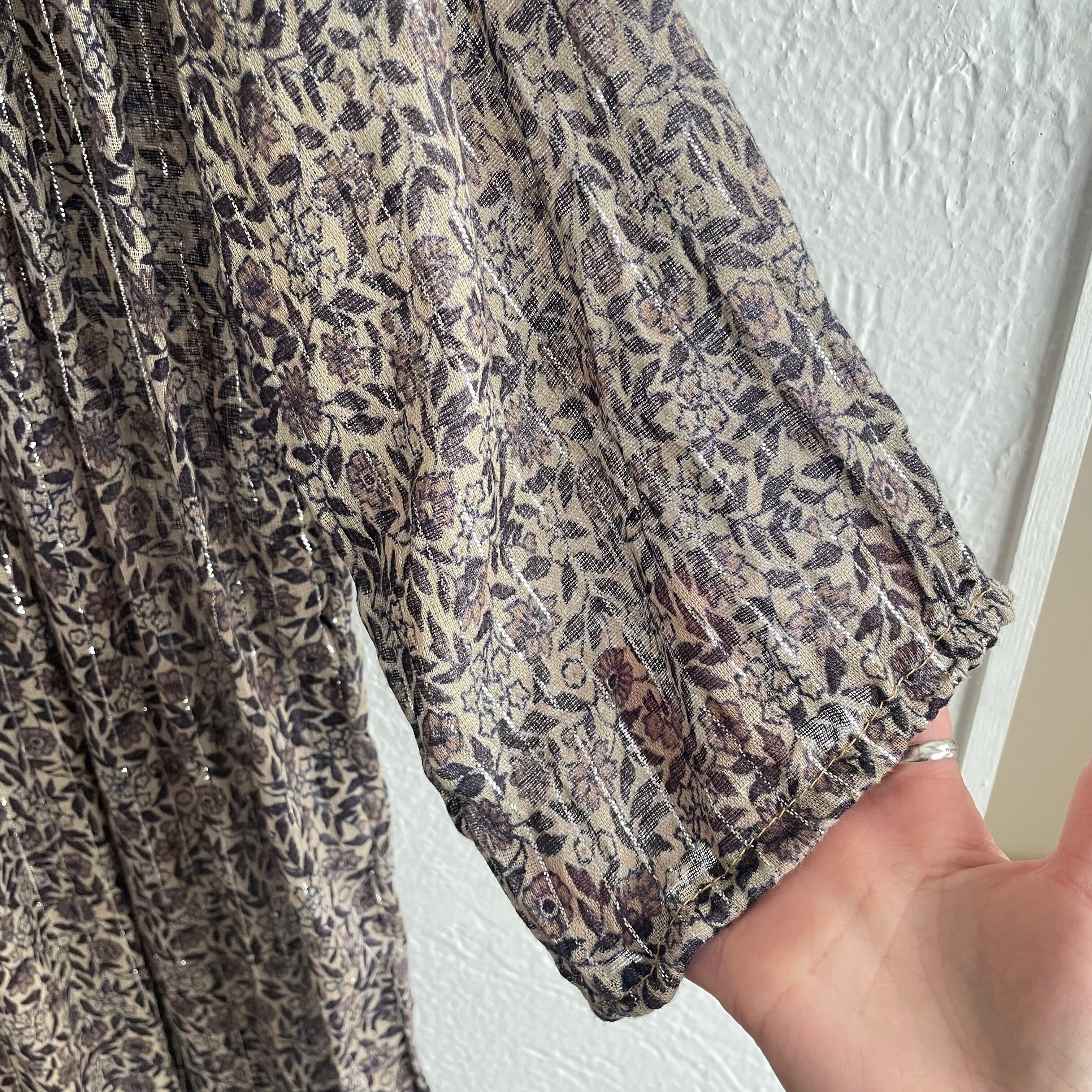 カラーはベージュベースにネイビーのような深い紫のようなニュアンスカラーの小花柄で大人っぽい雰囲気の1枚です