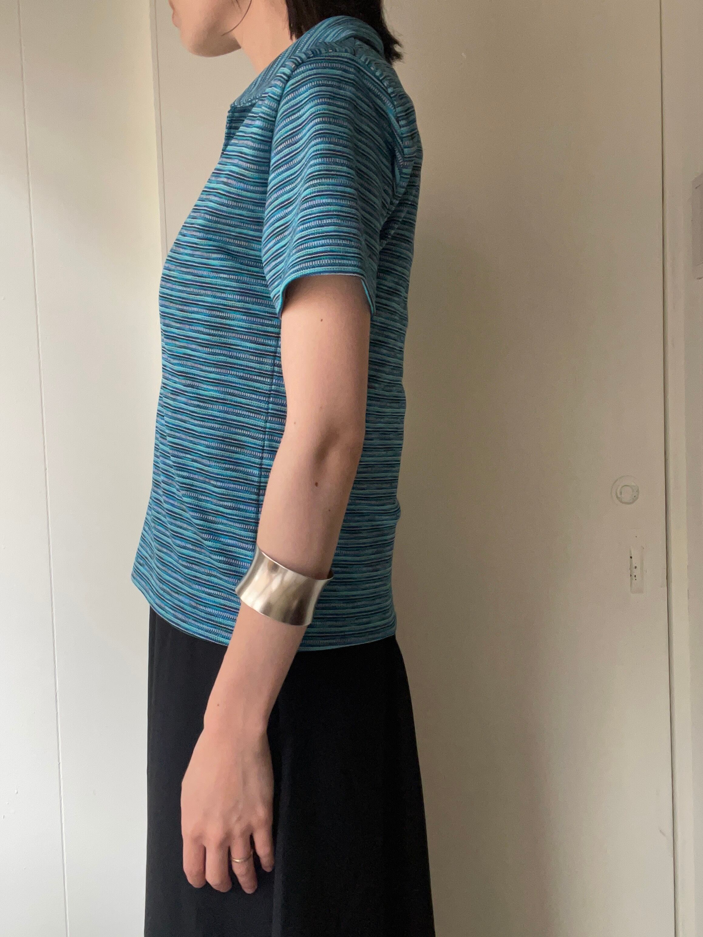 ピッチの細いマルチボーダーがこなれた雰囲気の1枚です