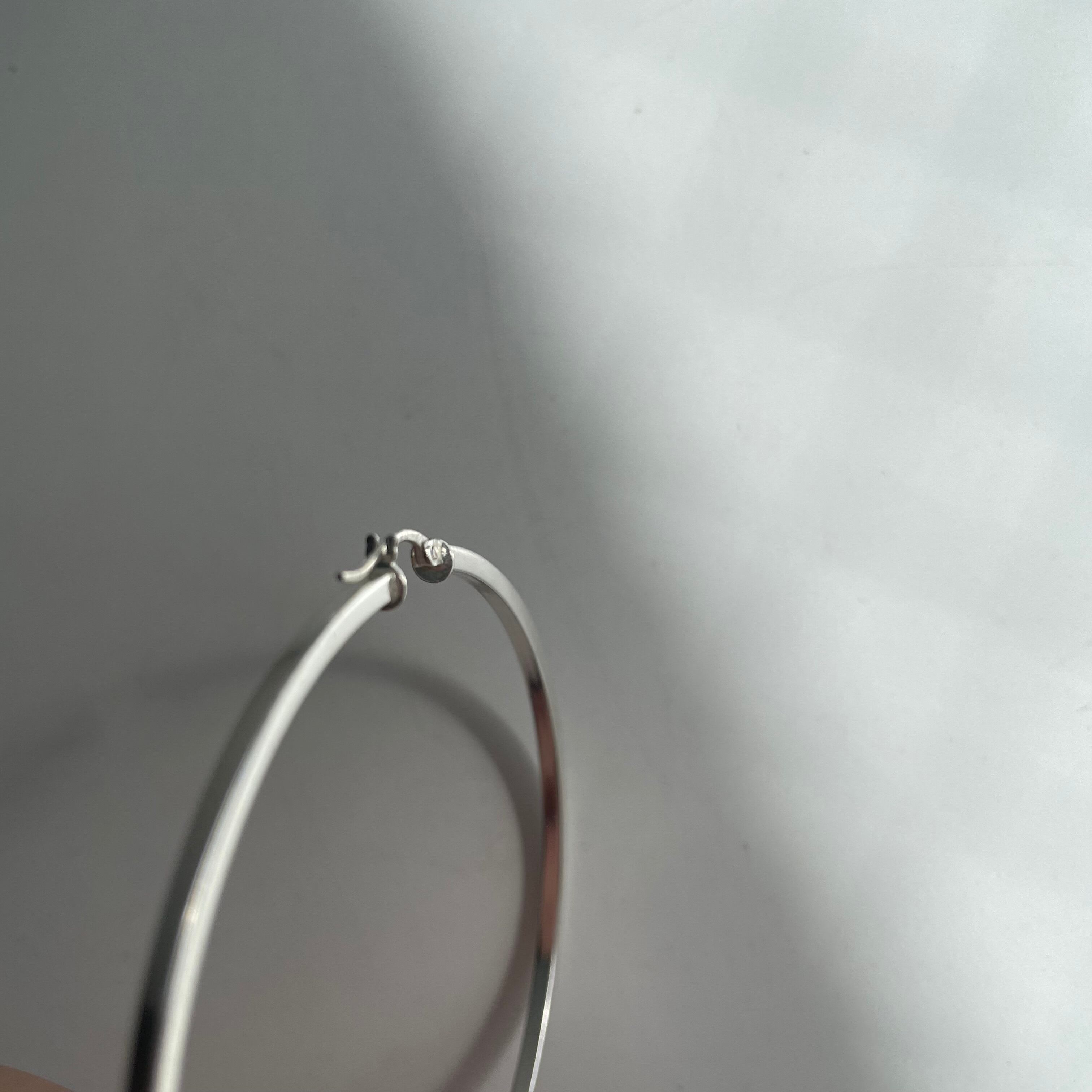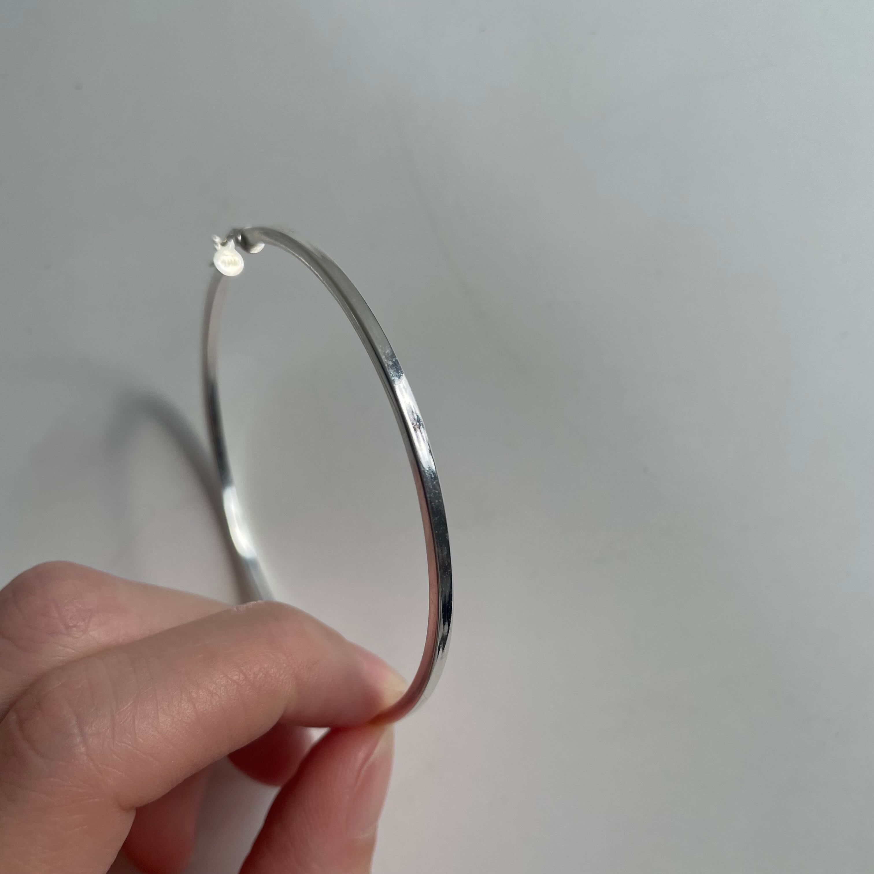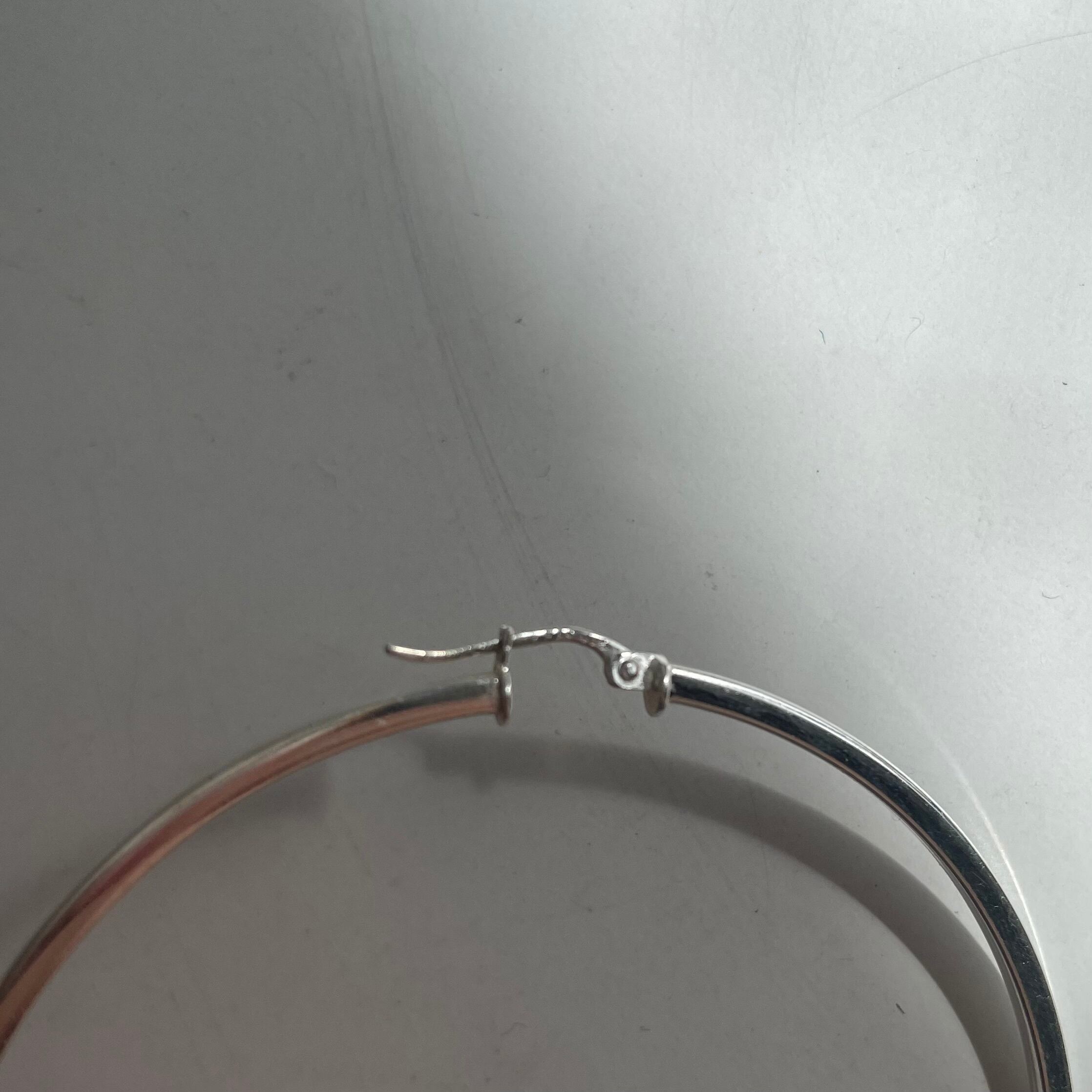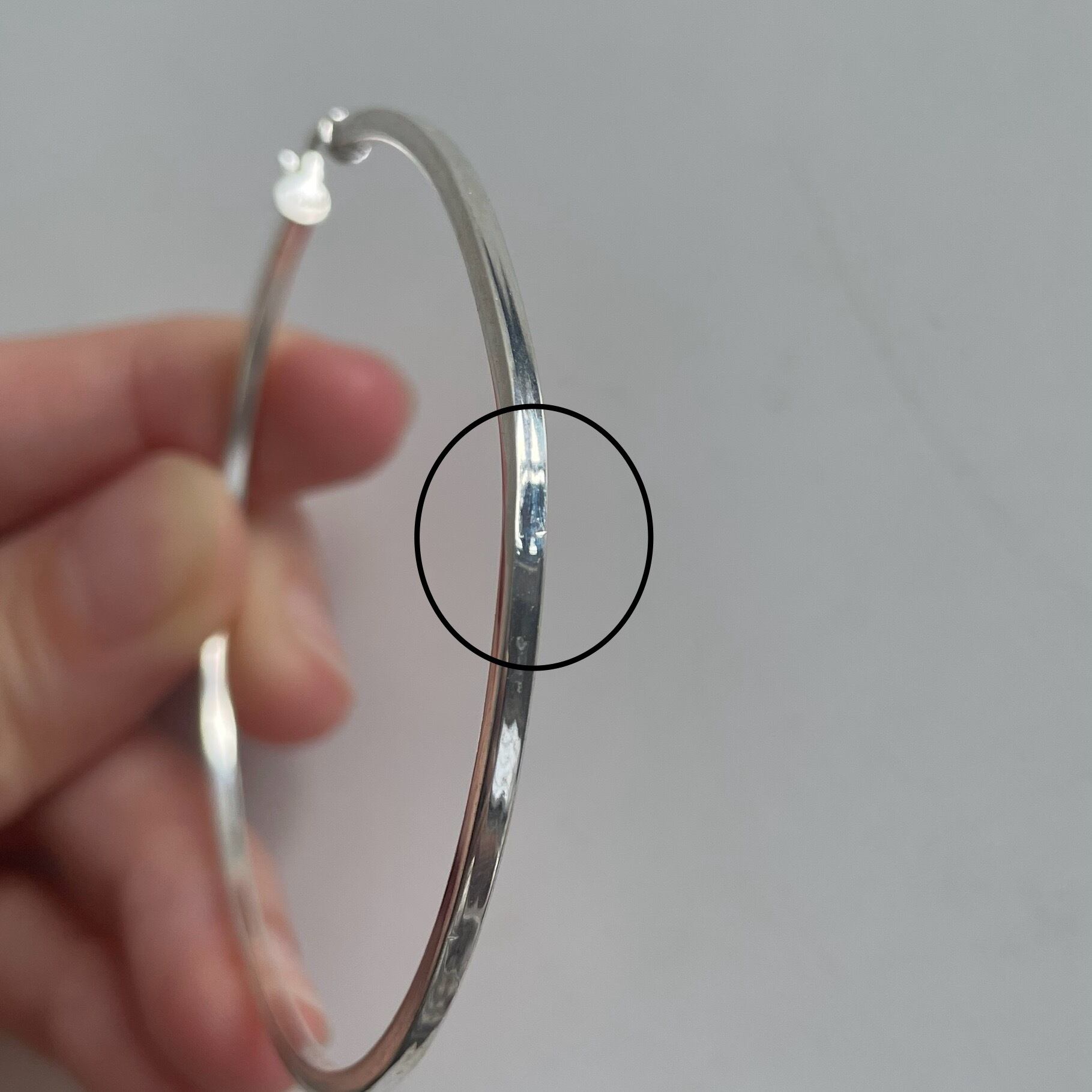角張った円形で、おそらく中が空洞になっているので軽い着け心地のピアスです