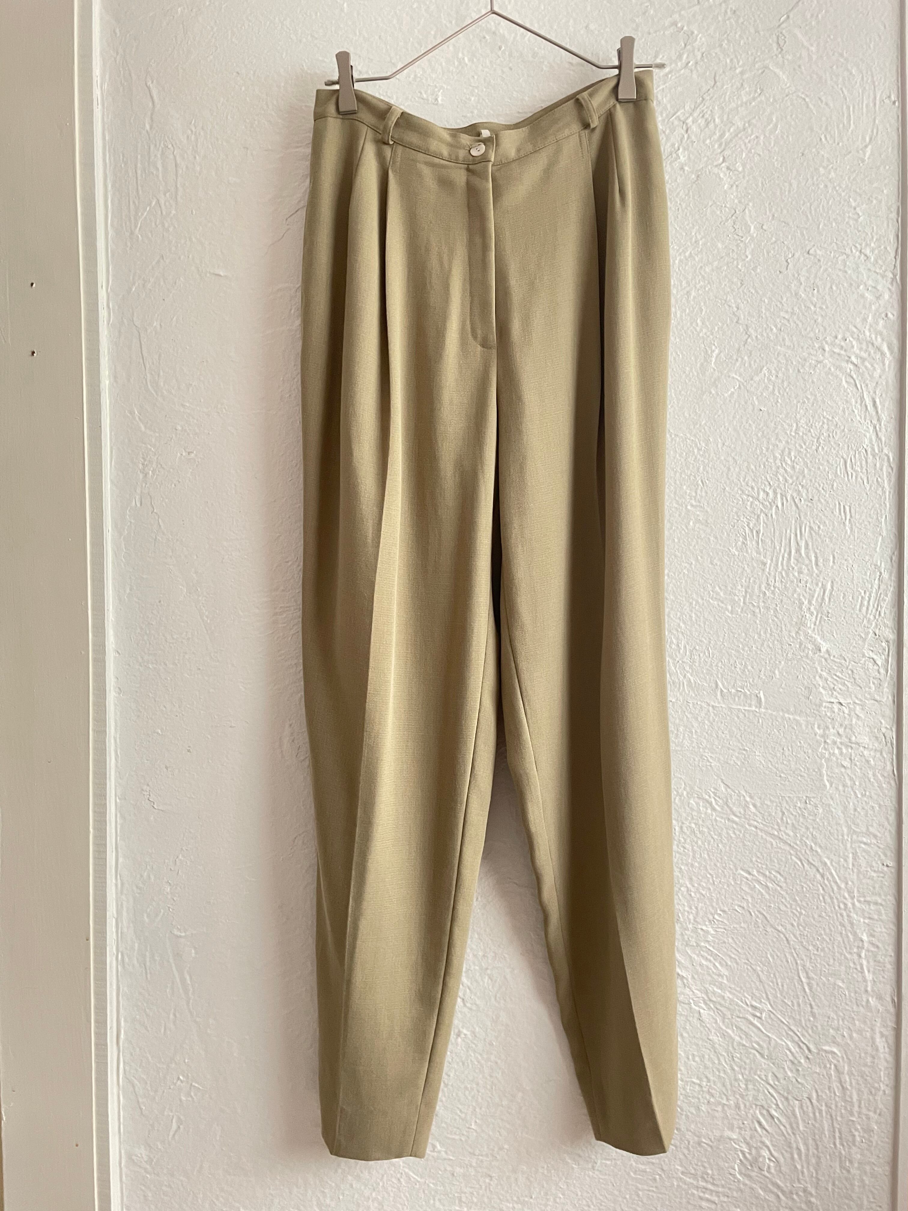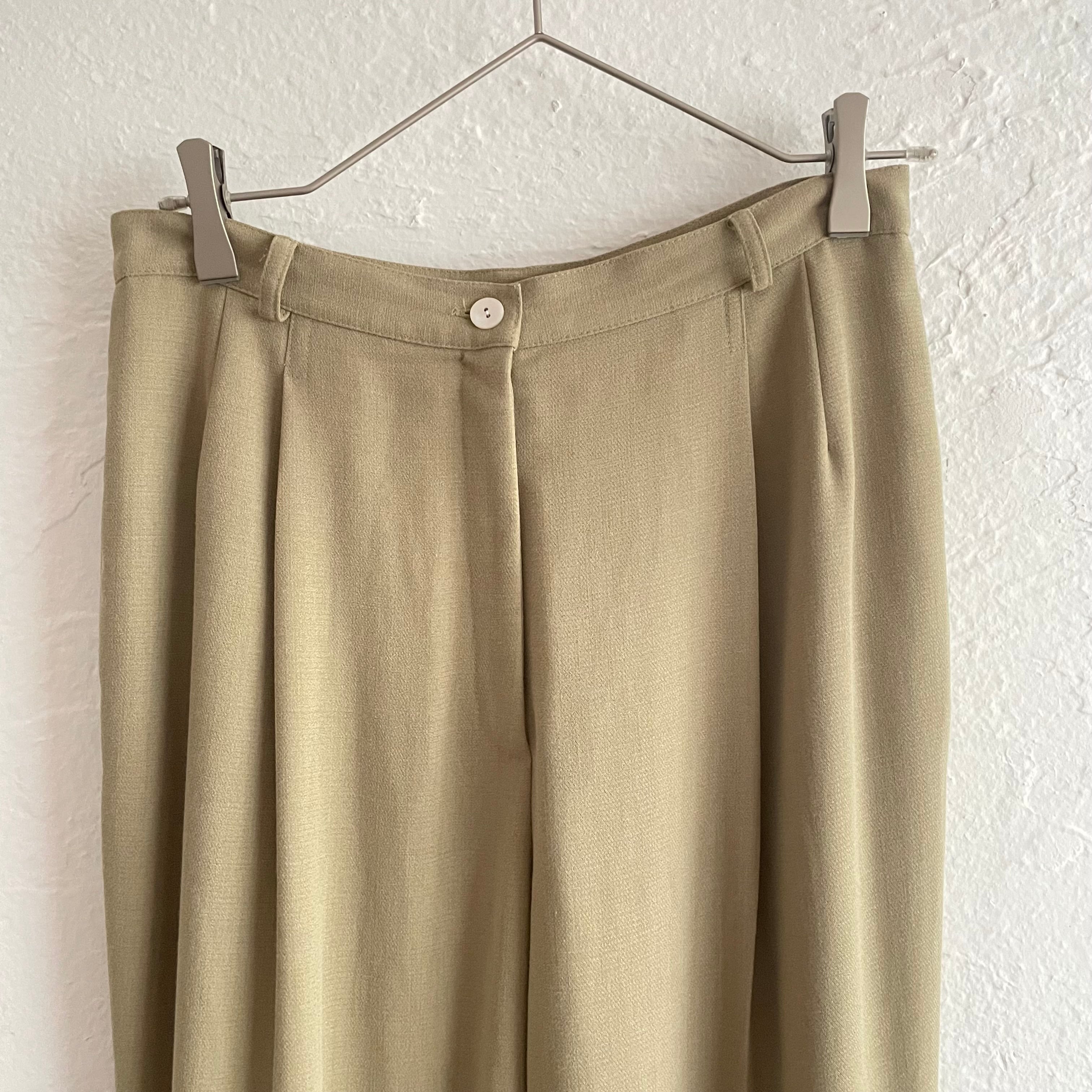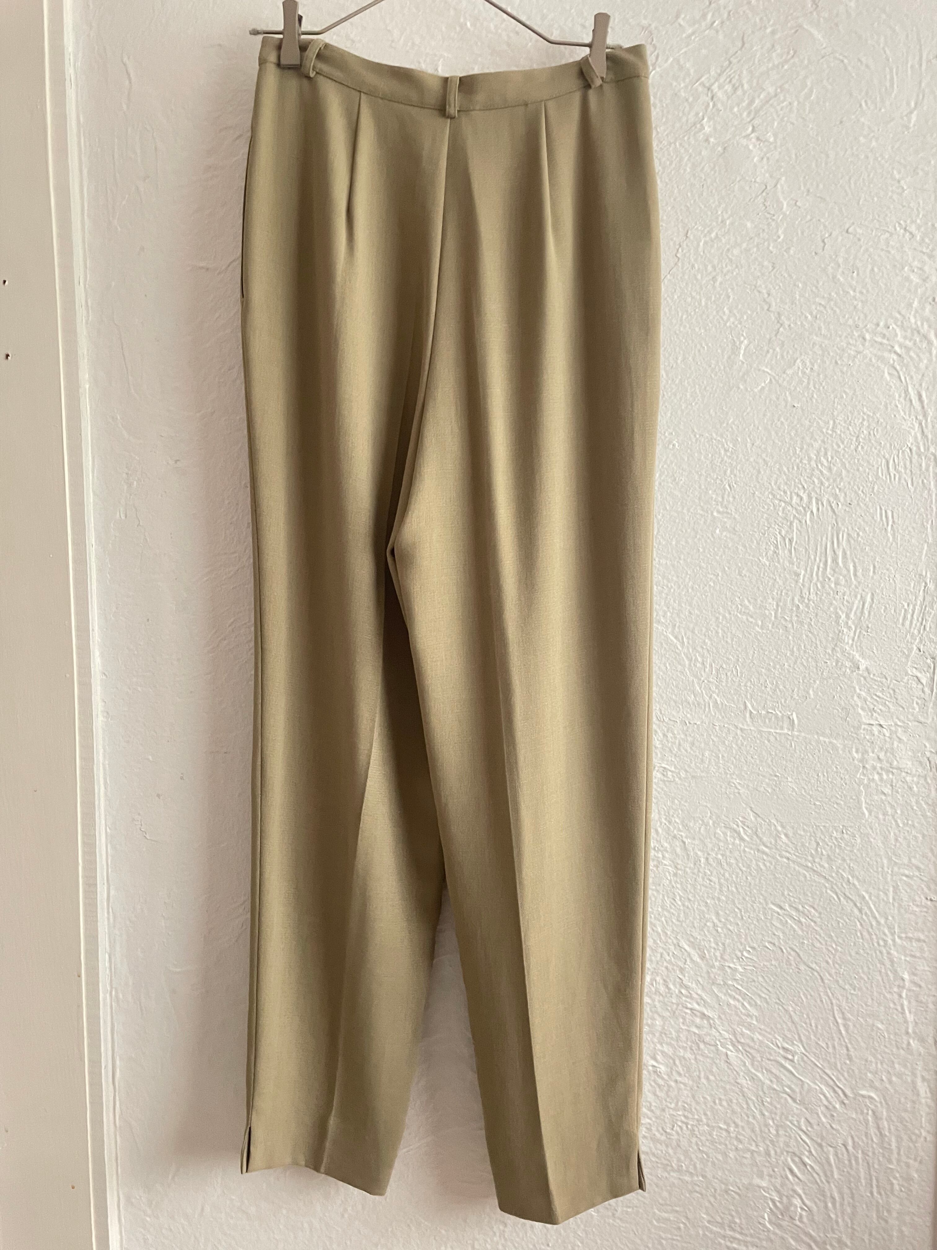 淡いグリーンカラーとてろっとした素材感が夏にもぴったりなテーパードパンツ