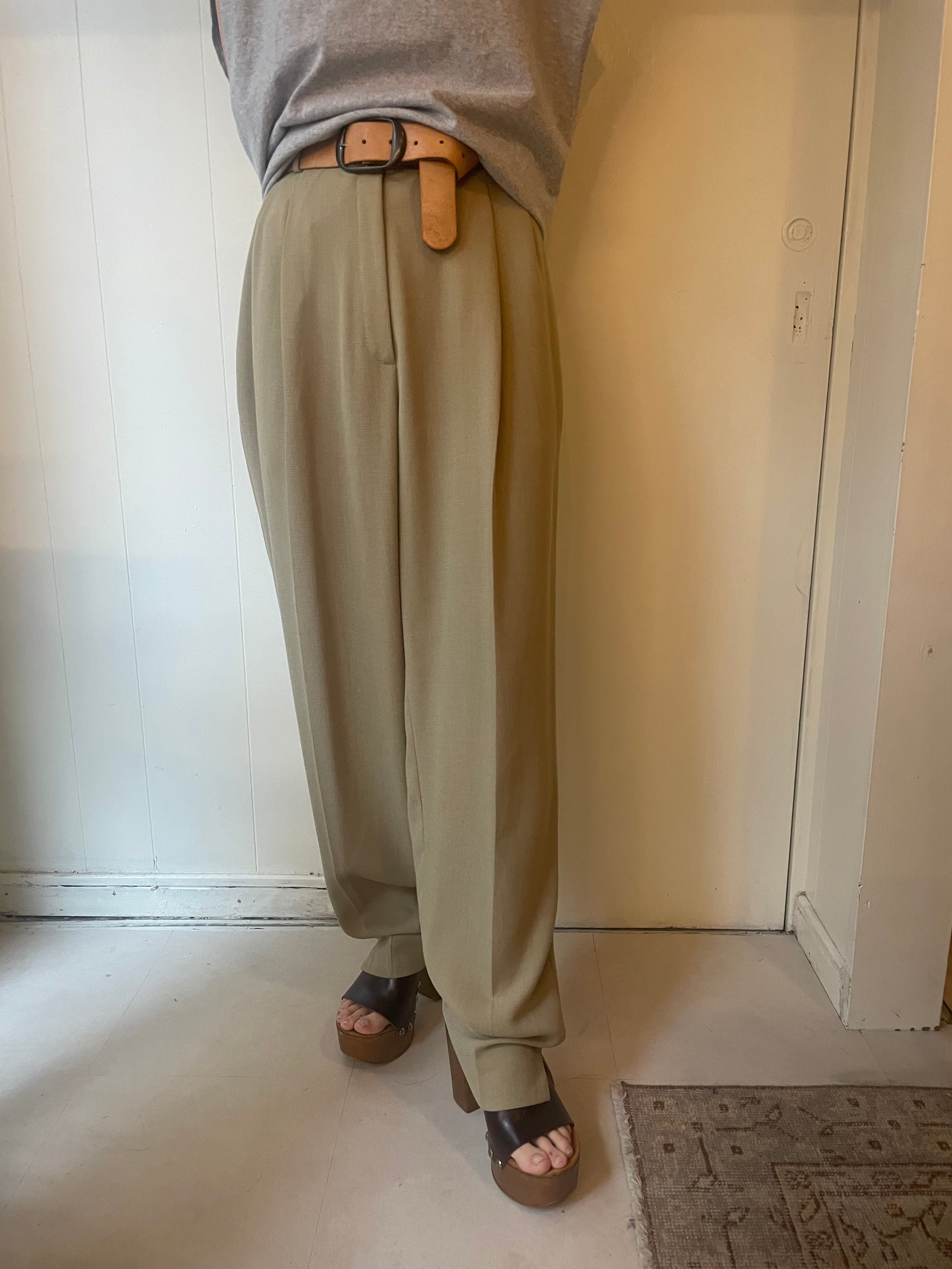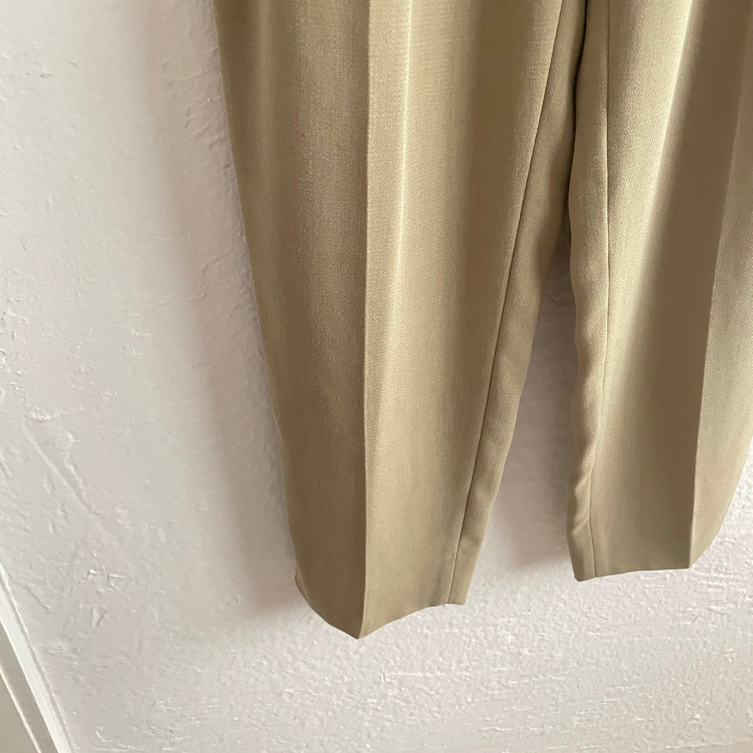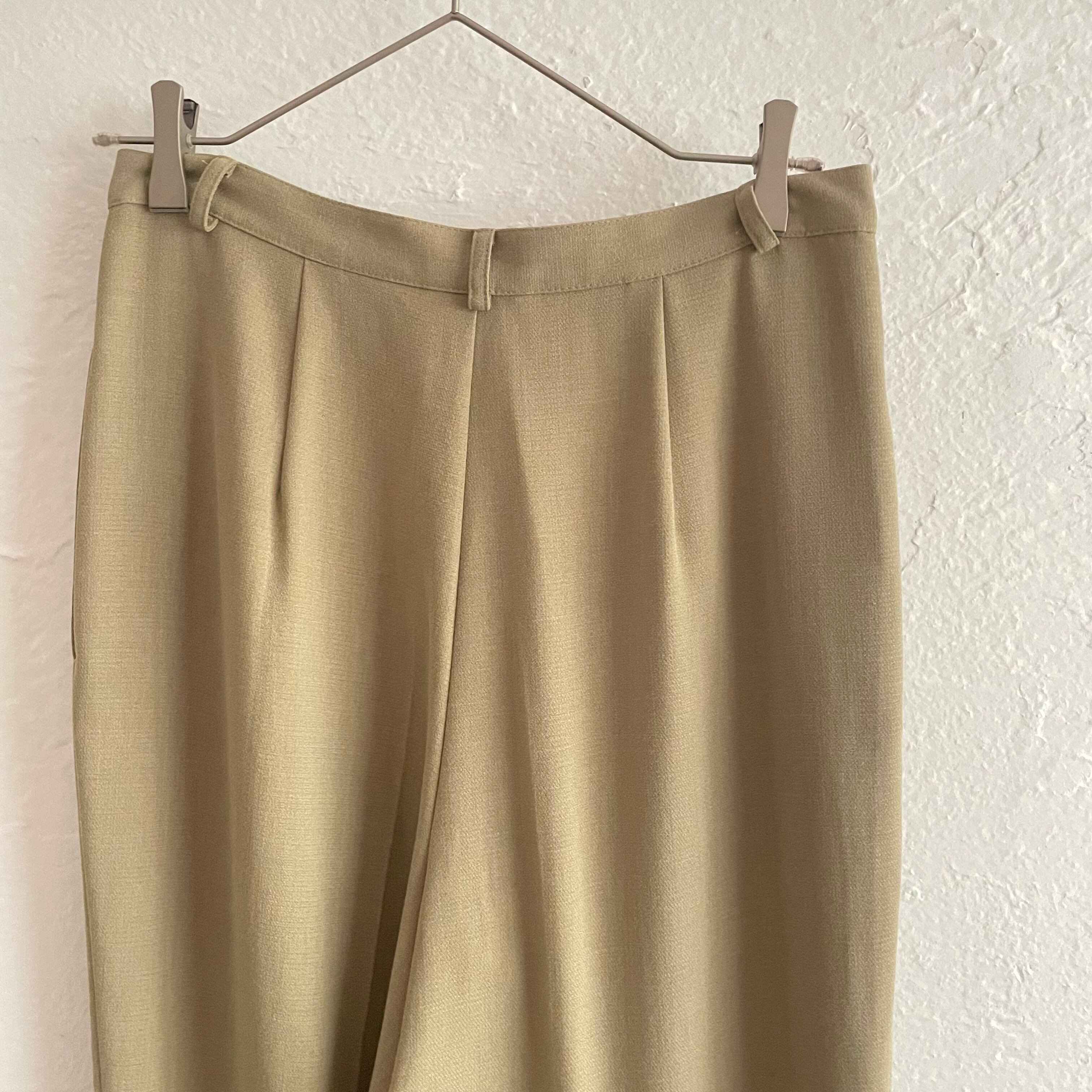 淡いグリーンカラーとてろっとした素材感が夏にもぴったりなテーパードパンツ