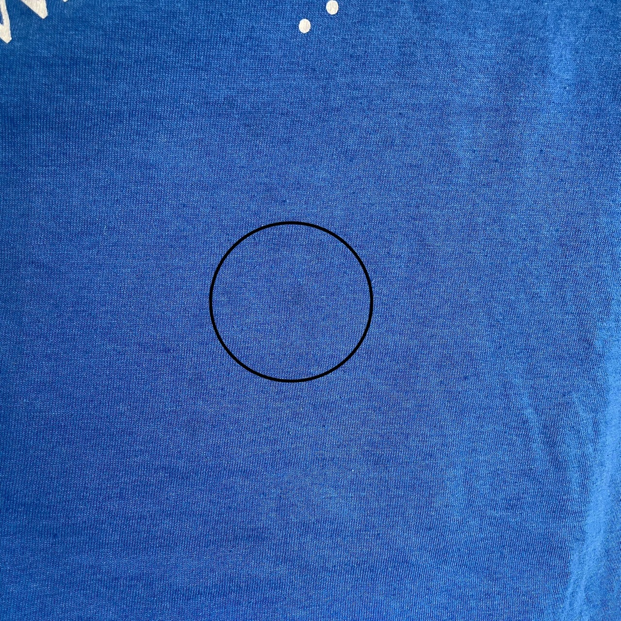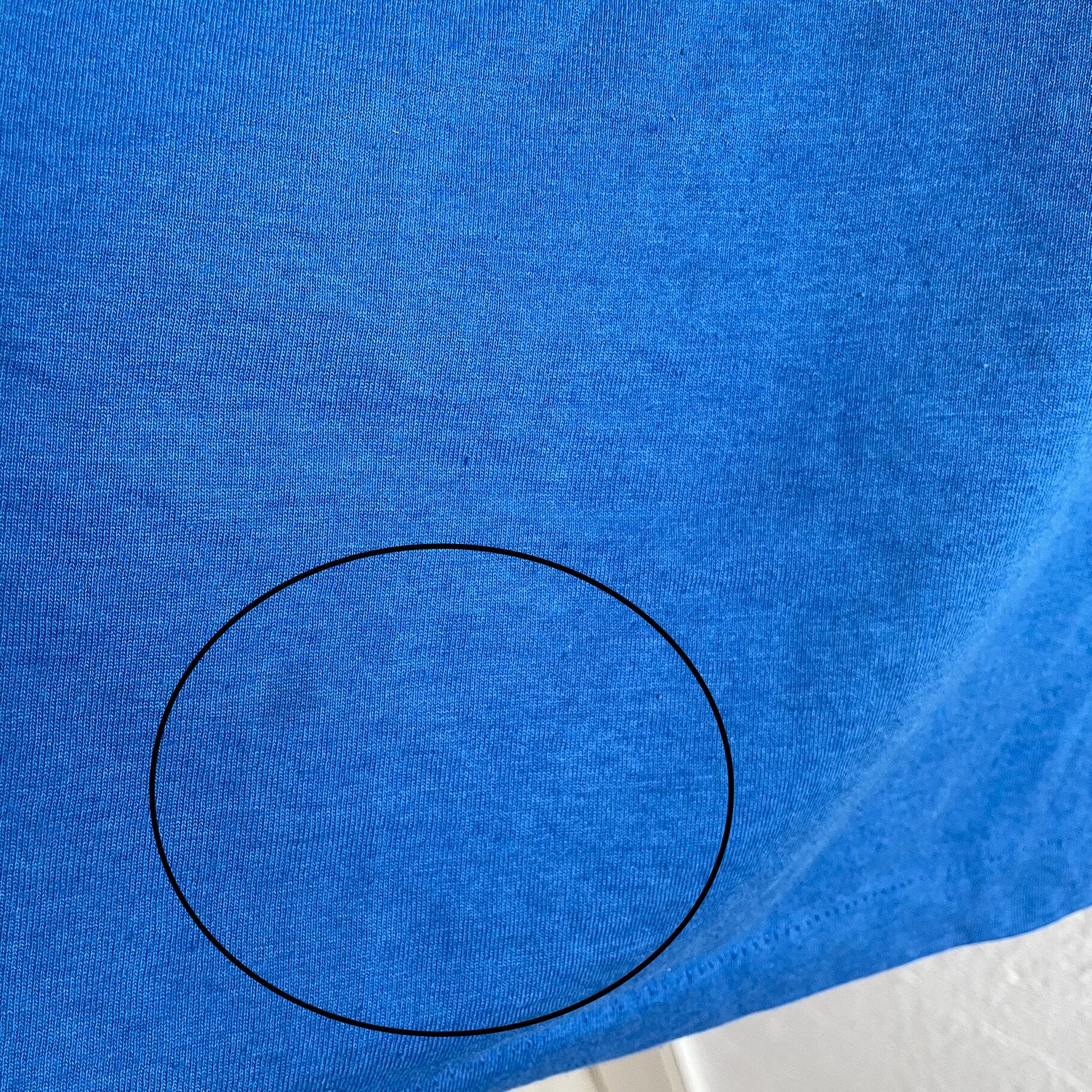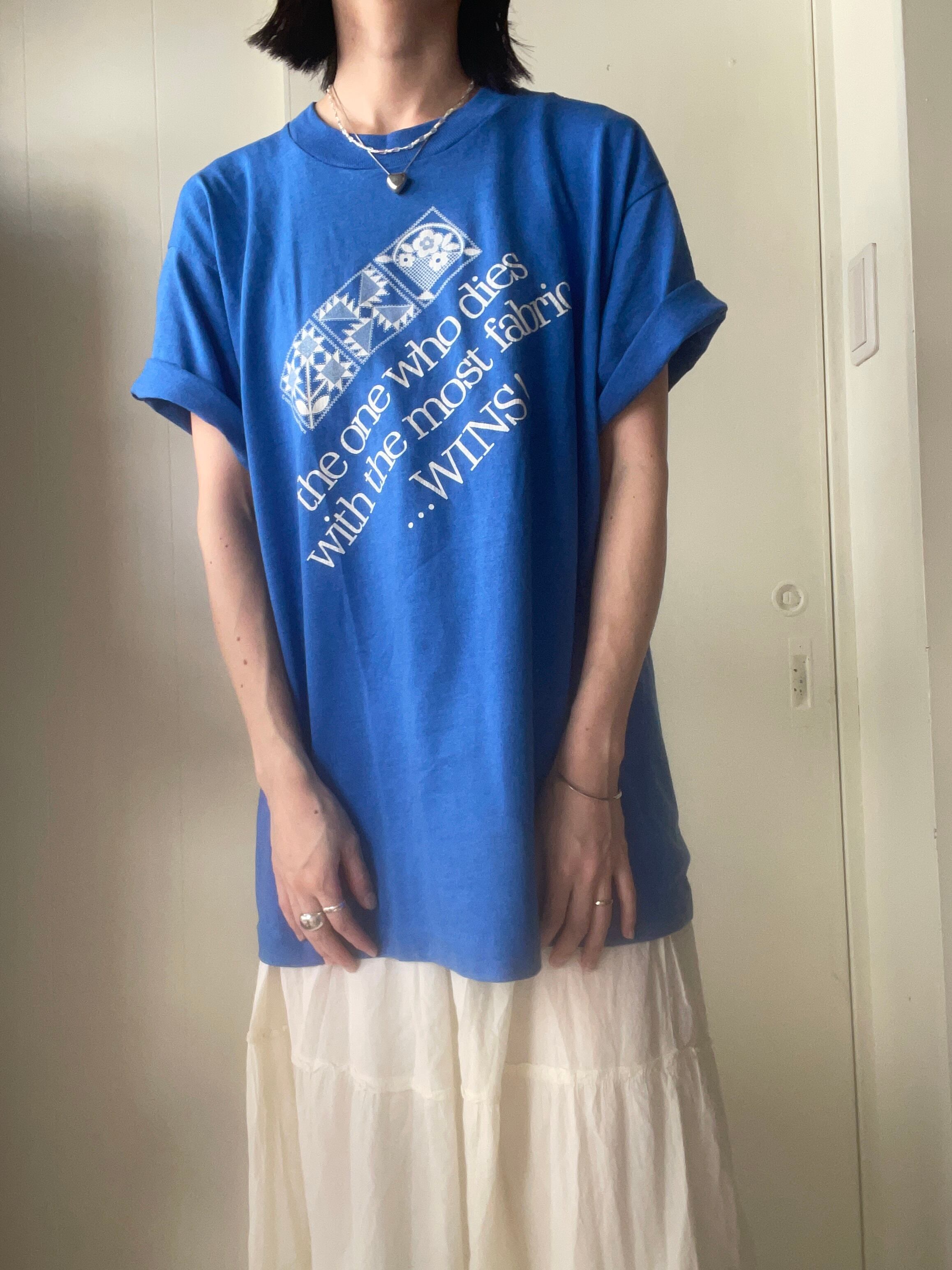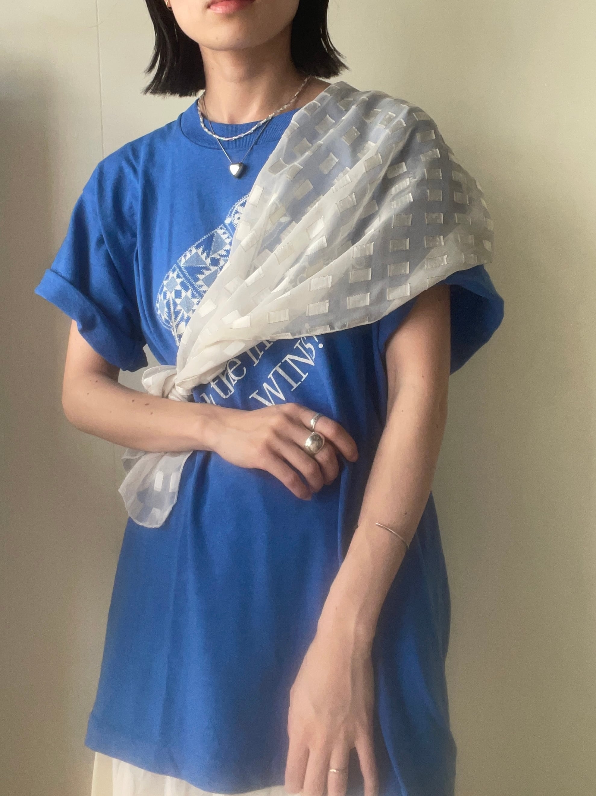 ブルーボディにシンプルなワンカラーのプリントなのでメインでもインナーとしても着回しの効く1枚です◎