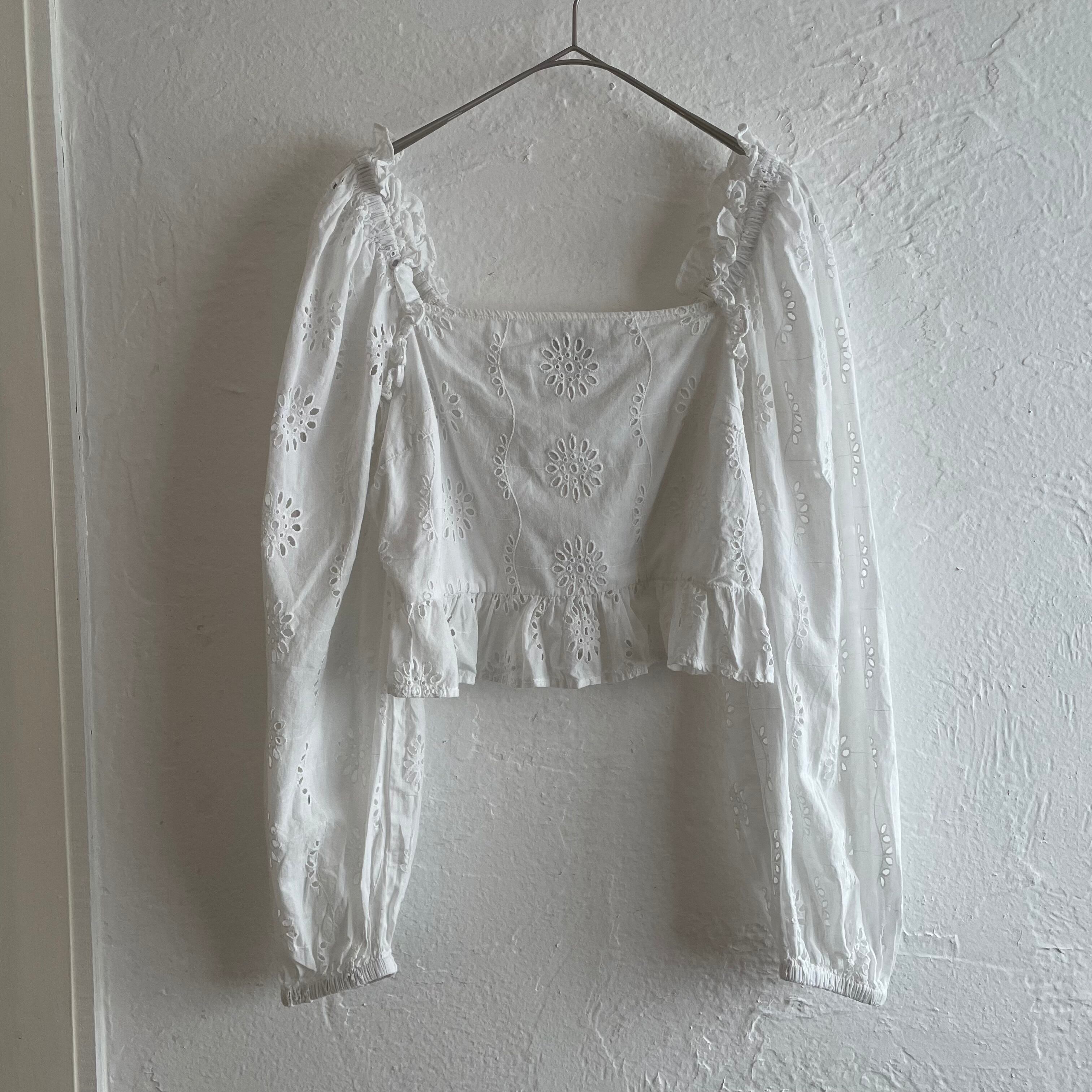 穴あきレースの長袖ブラウス
