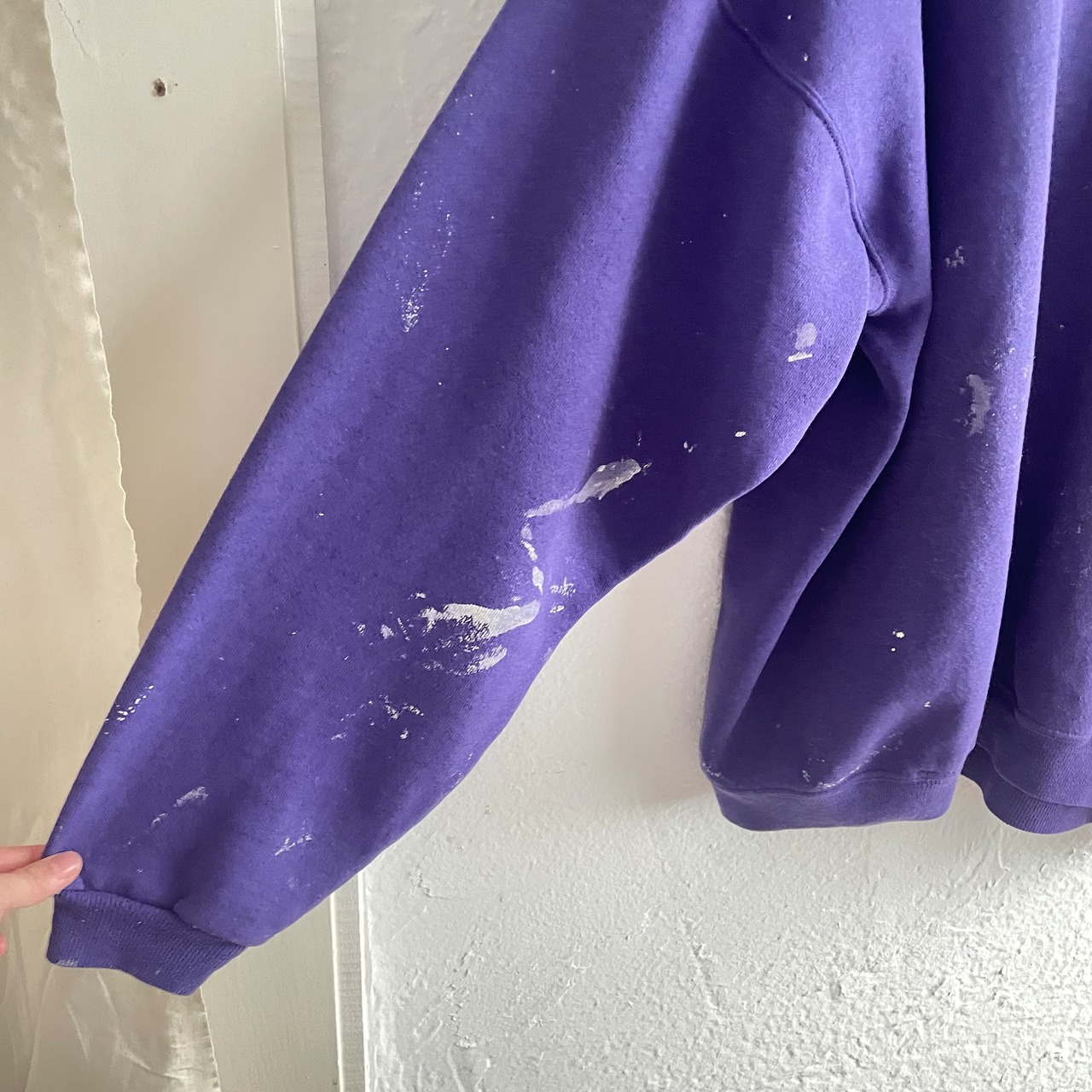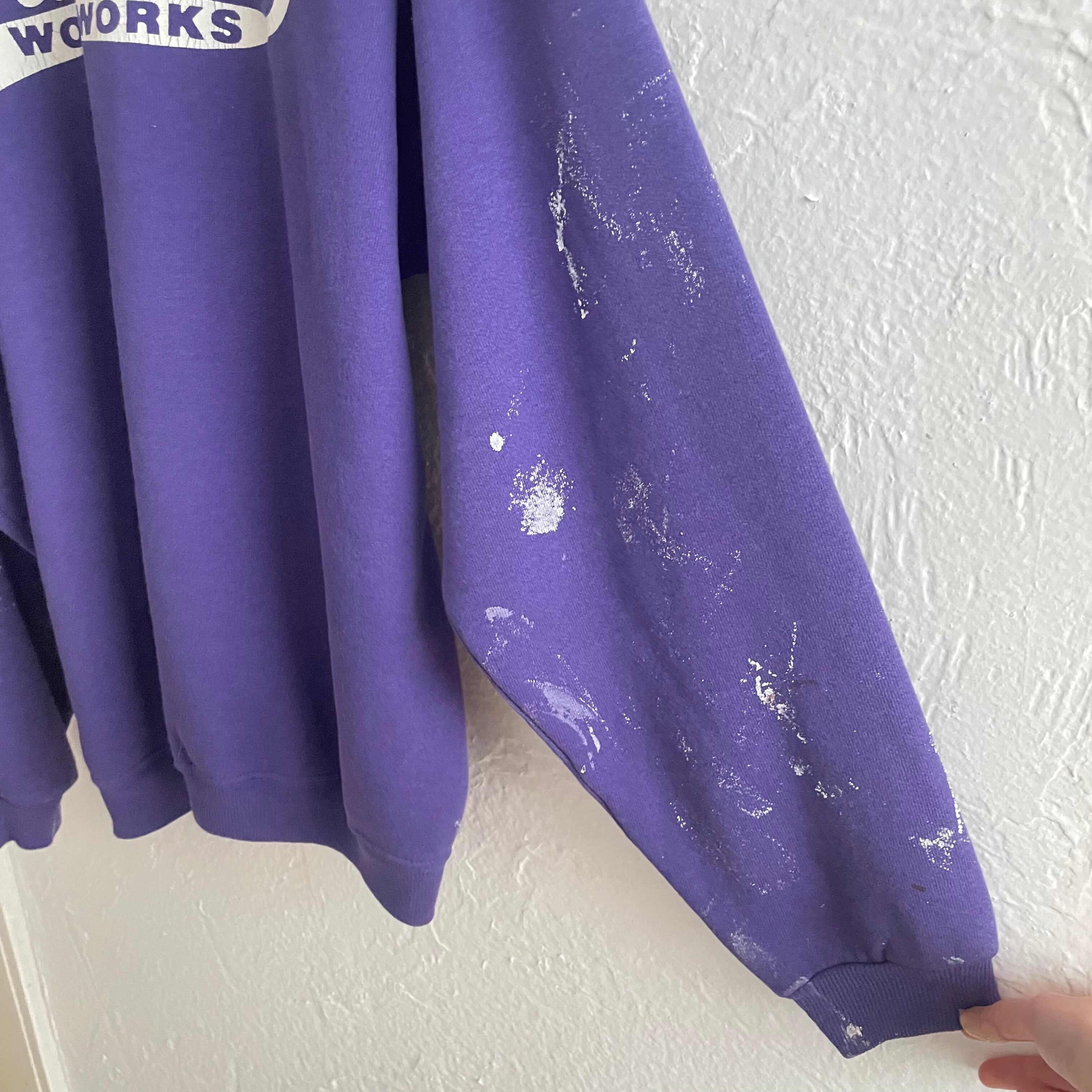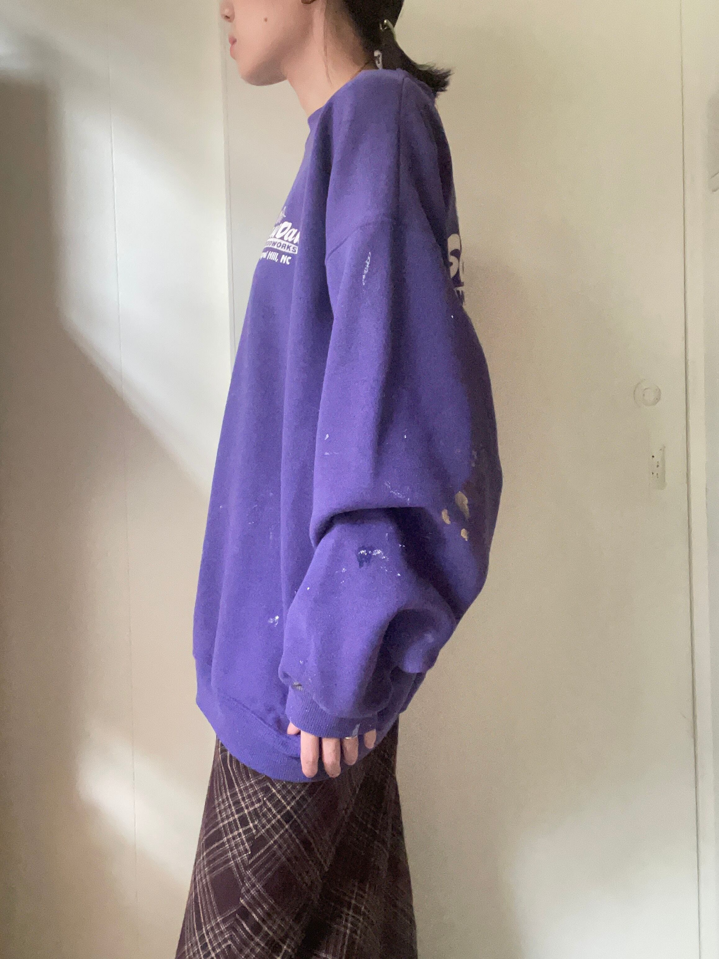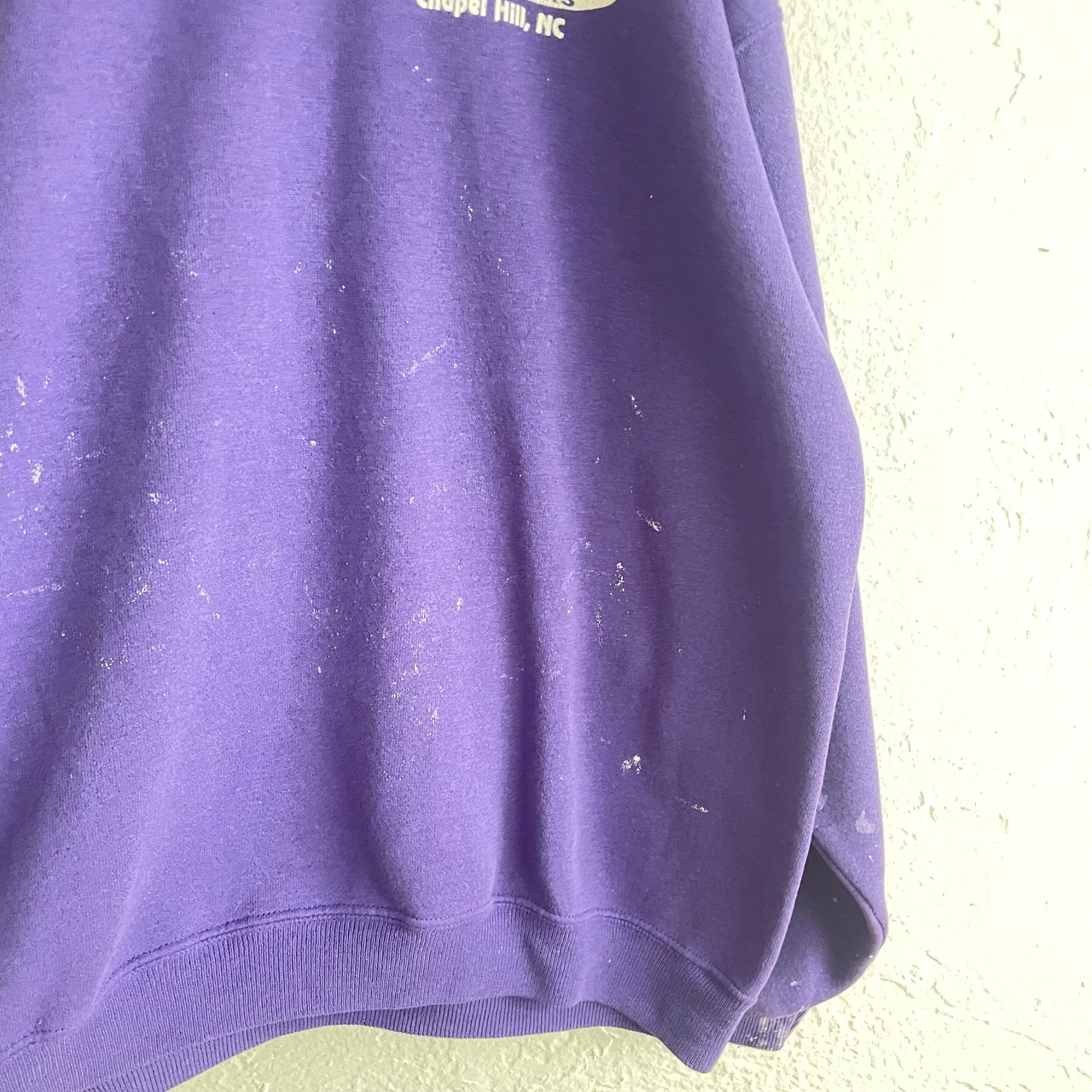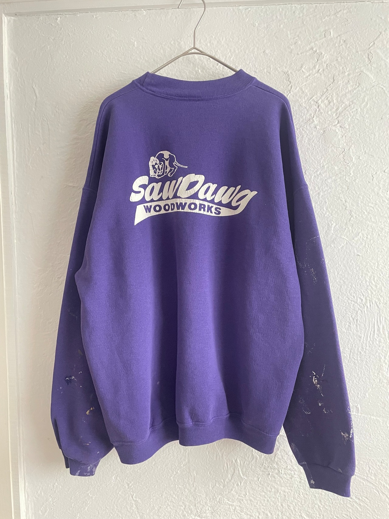 前後にプリントがあり、袖全体にペイント汚れのあるデザインです