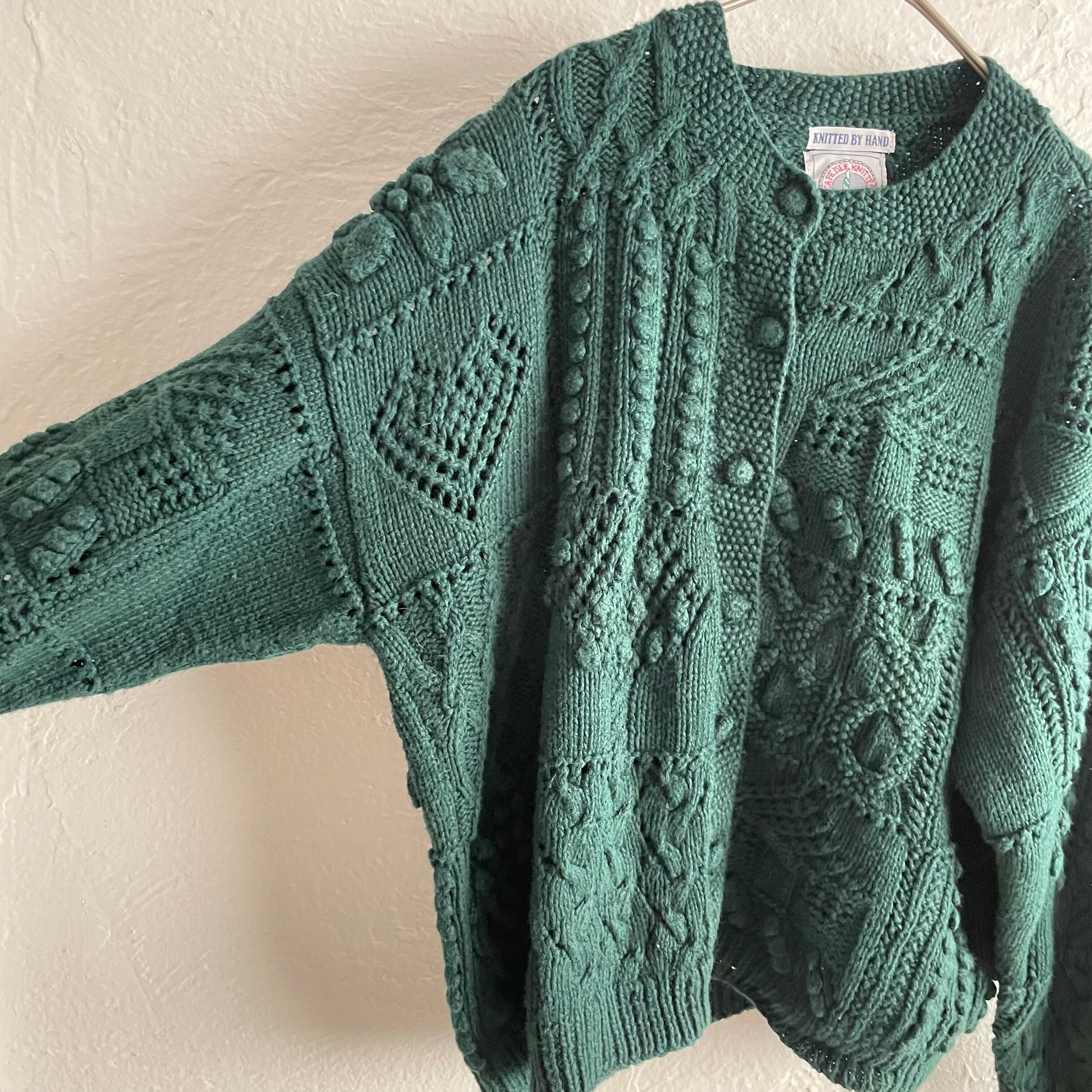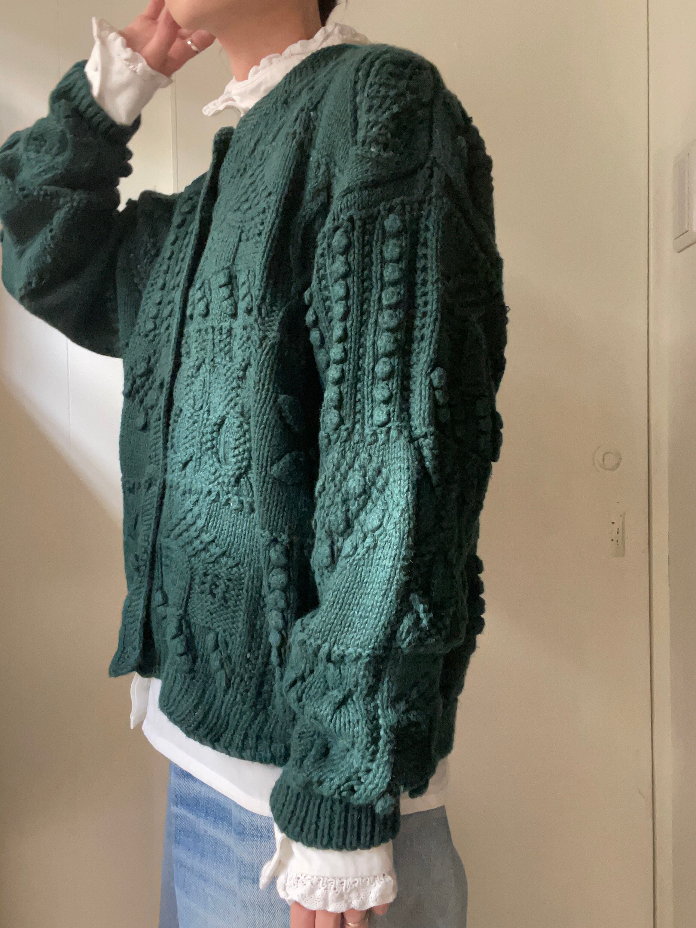 ぽこぽこと浮き出た柄が可愛いハンドニットカーディガン