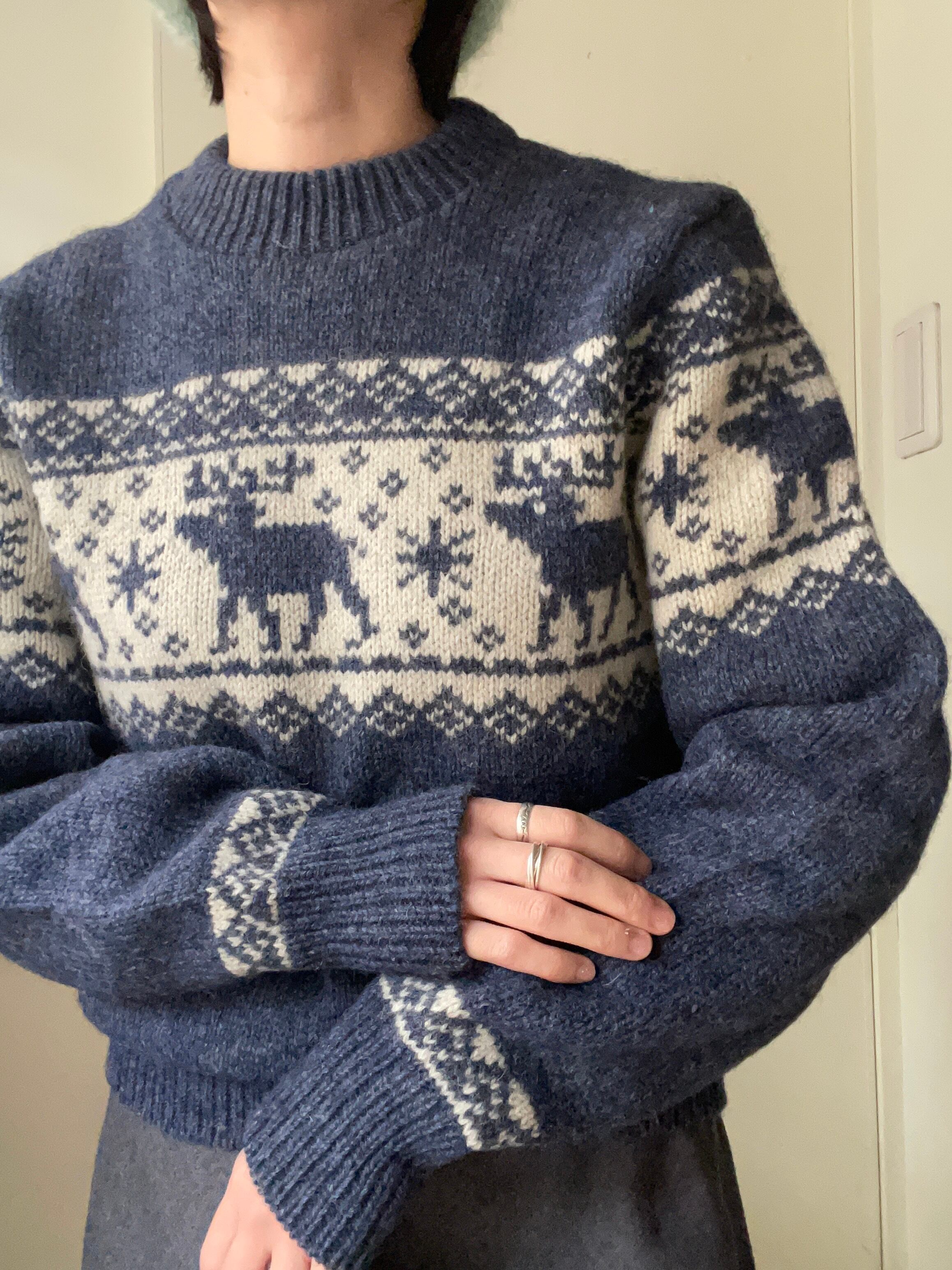 ウールと化学繊維を組み合わせたMOUNTAIN WOOLという山岳活動にも適しているお素材のニット