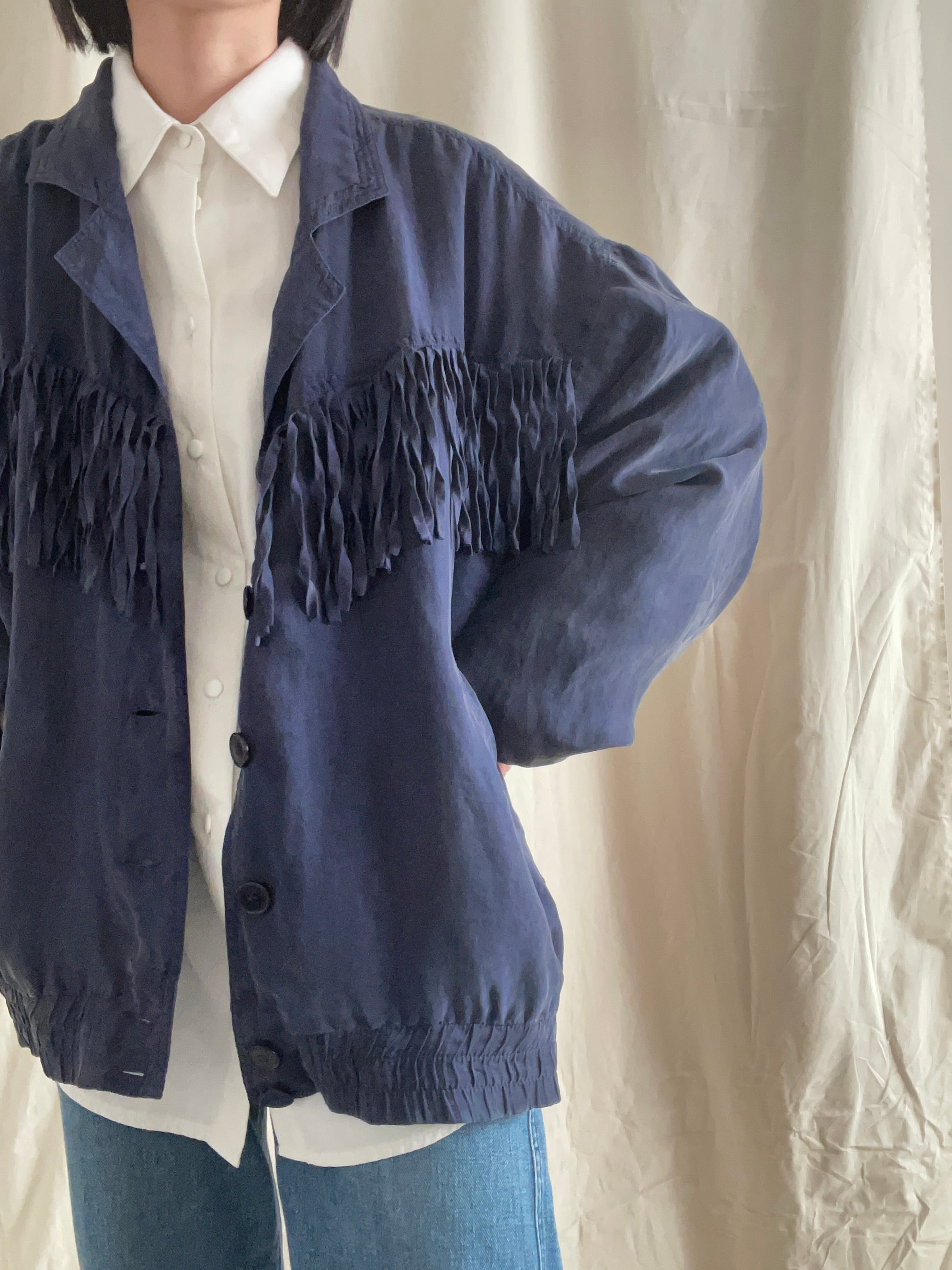 fringe silk blouson