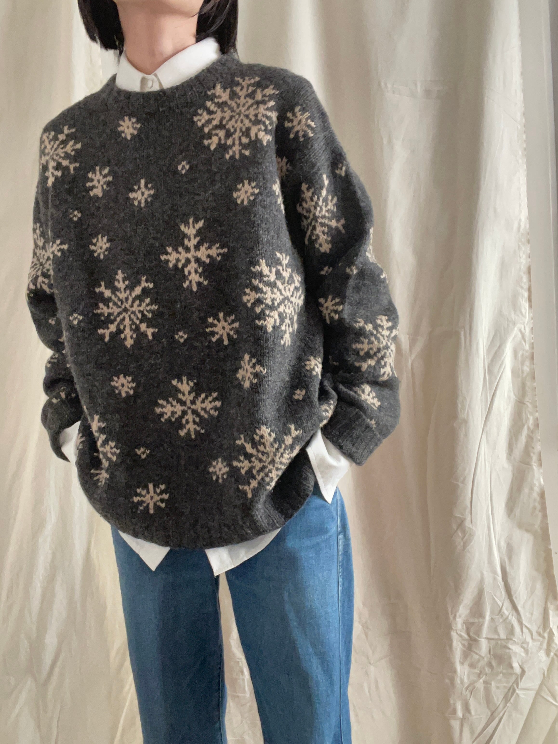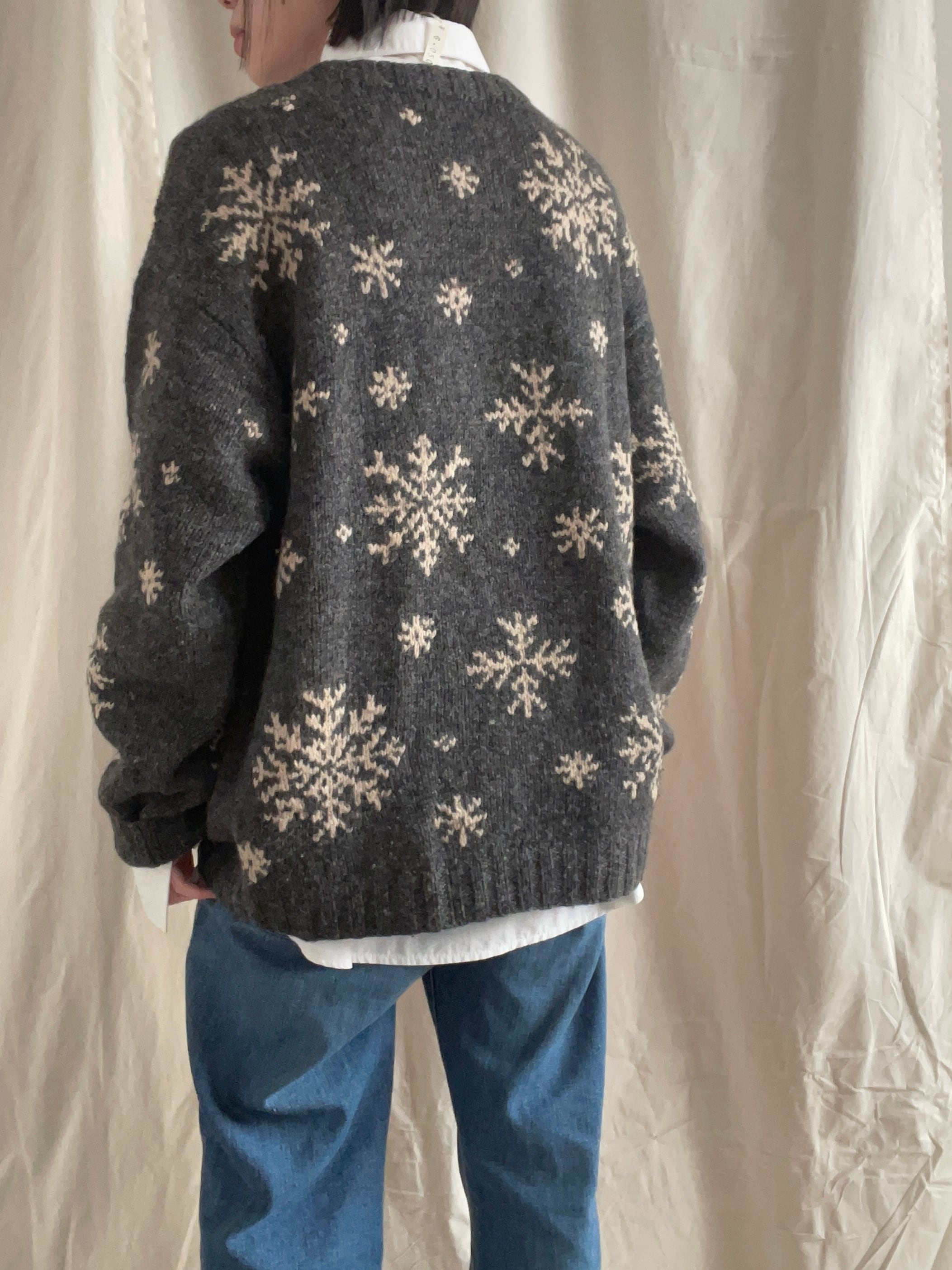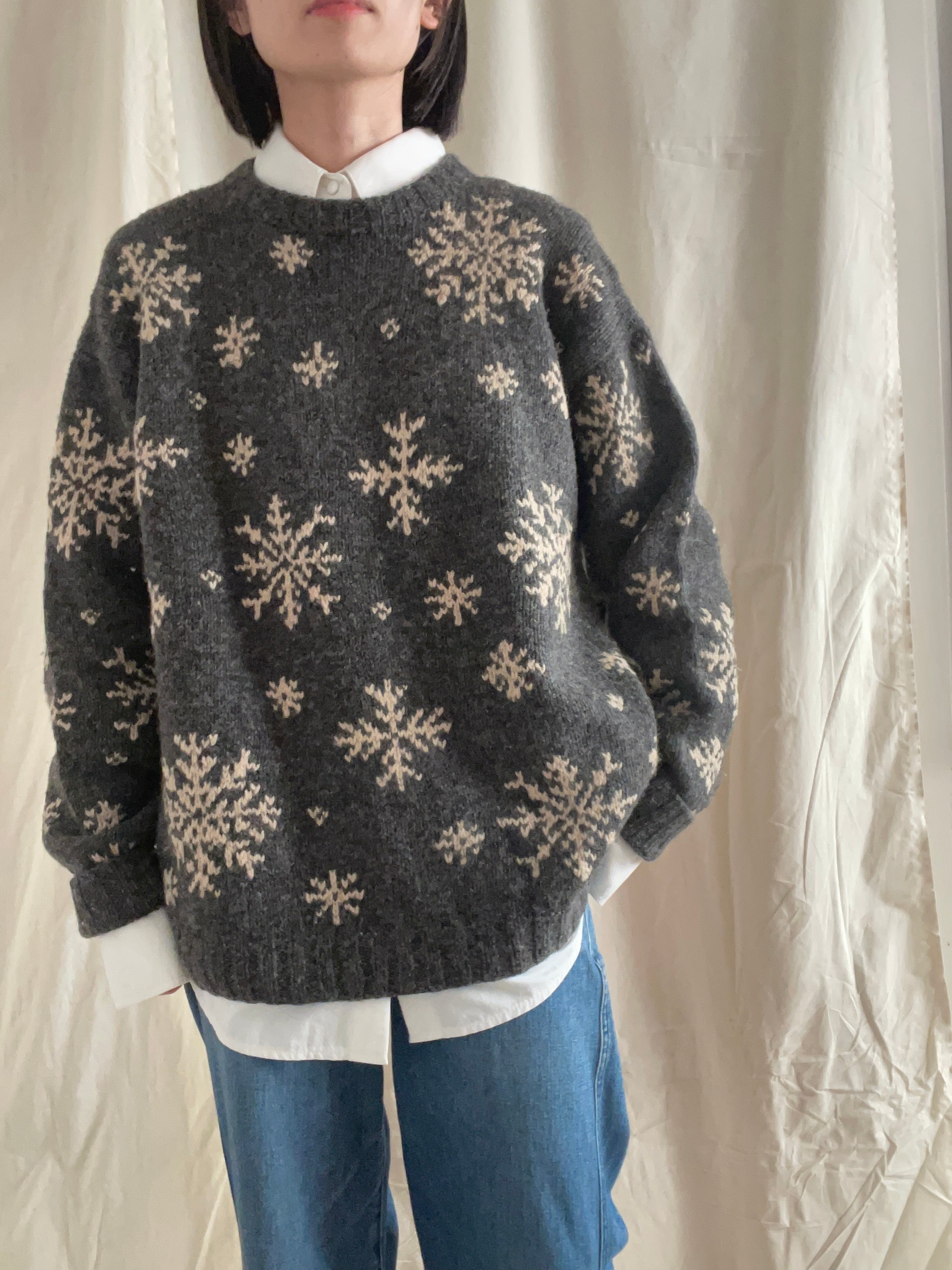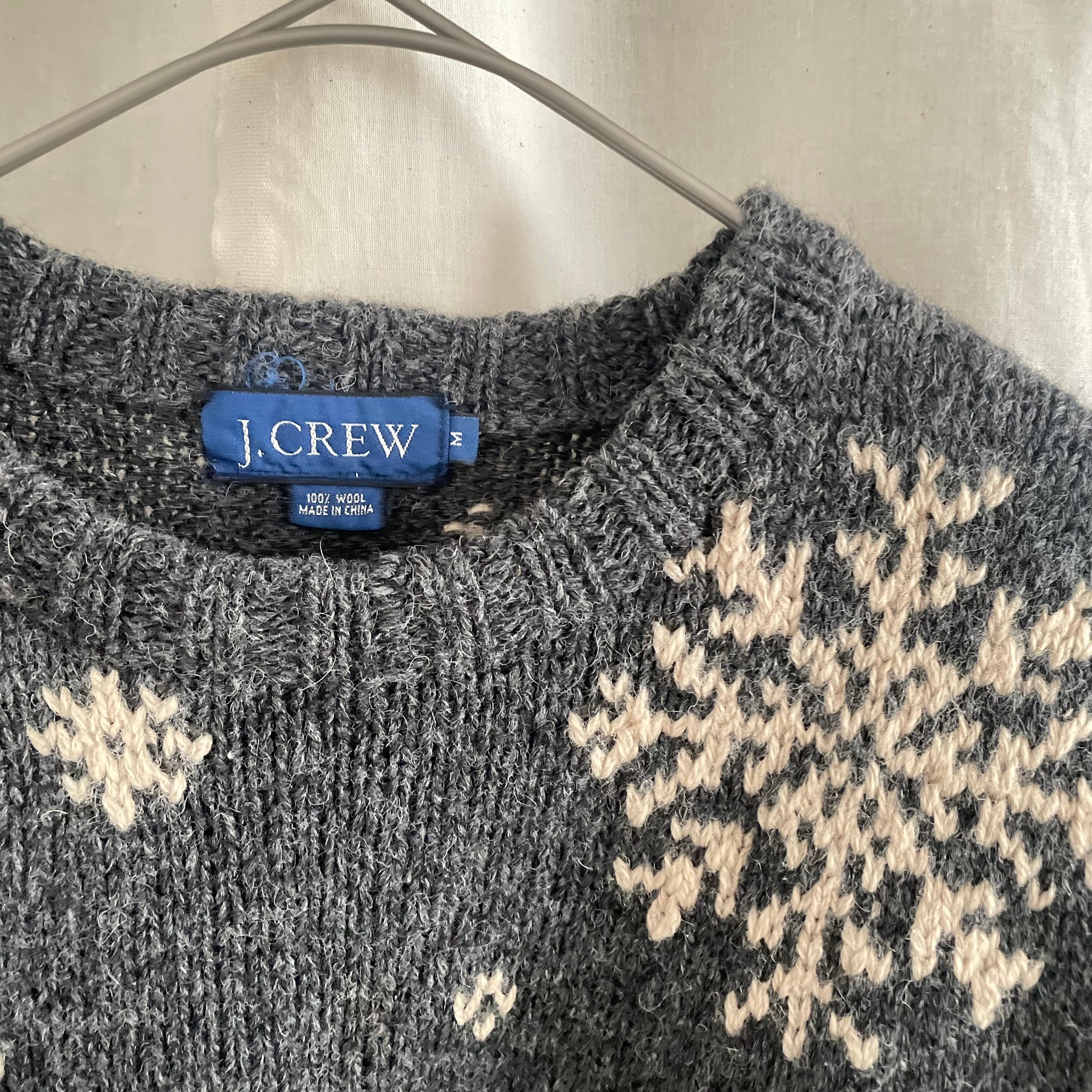 J.CREWの雪の結晶模様のウールニット