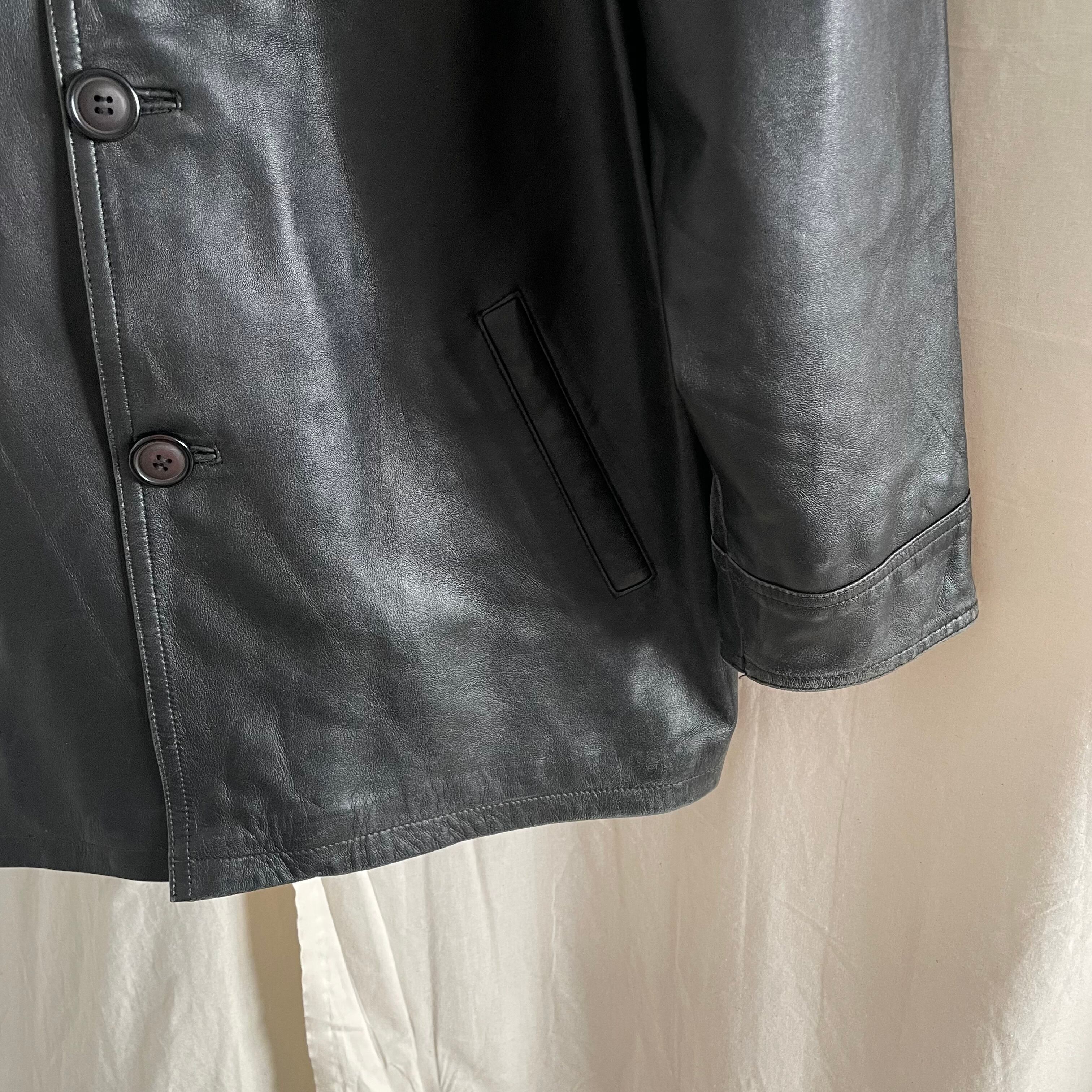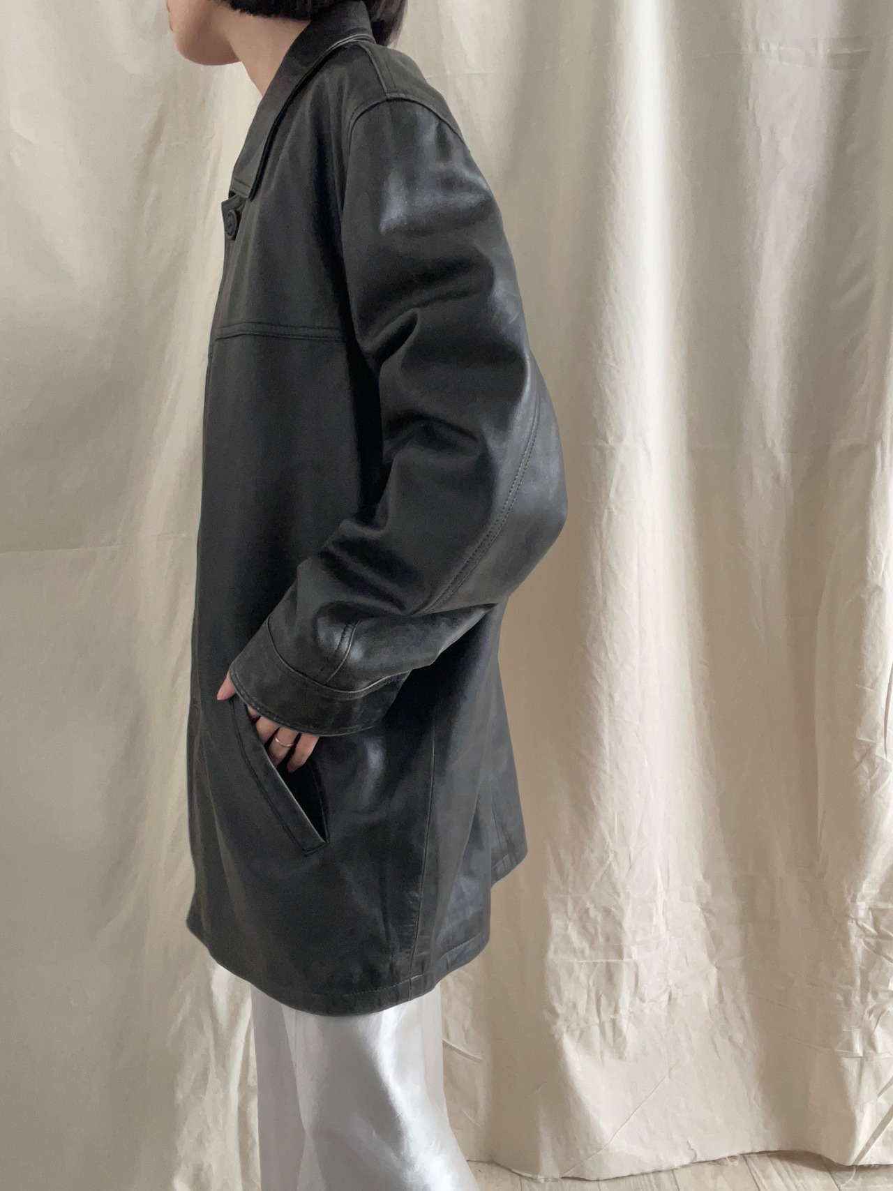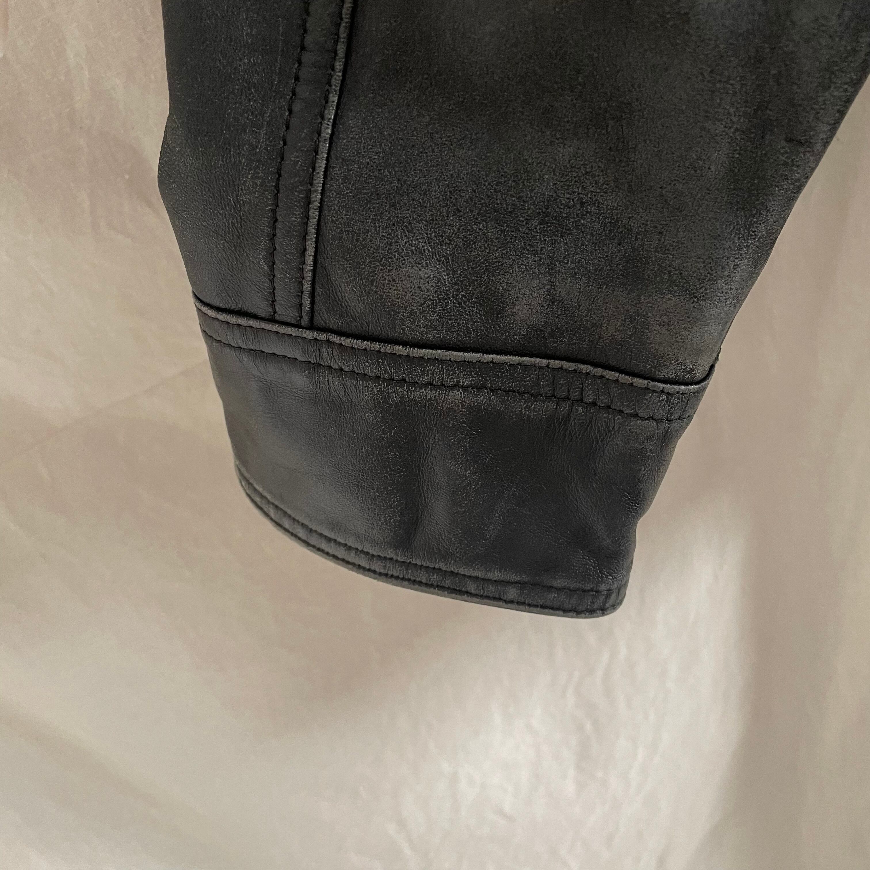 革の内側にウールが裏張りされているため、薄い生地感ですが風を通しにくく見た目よりも暖かく着ていただけます◎