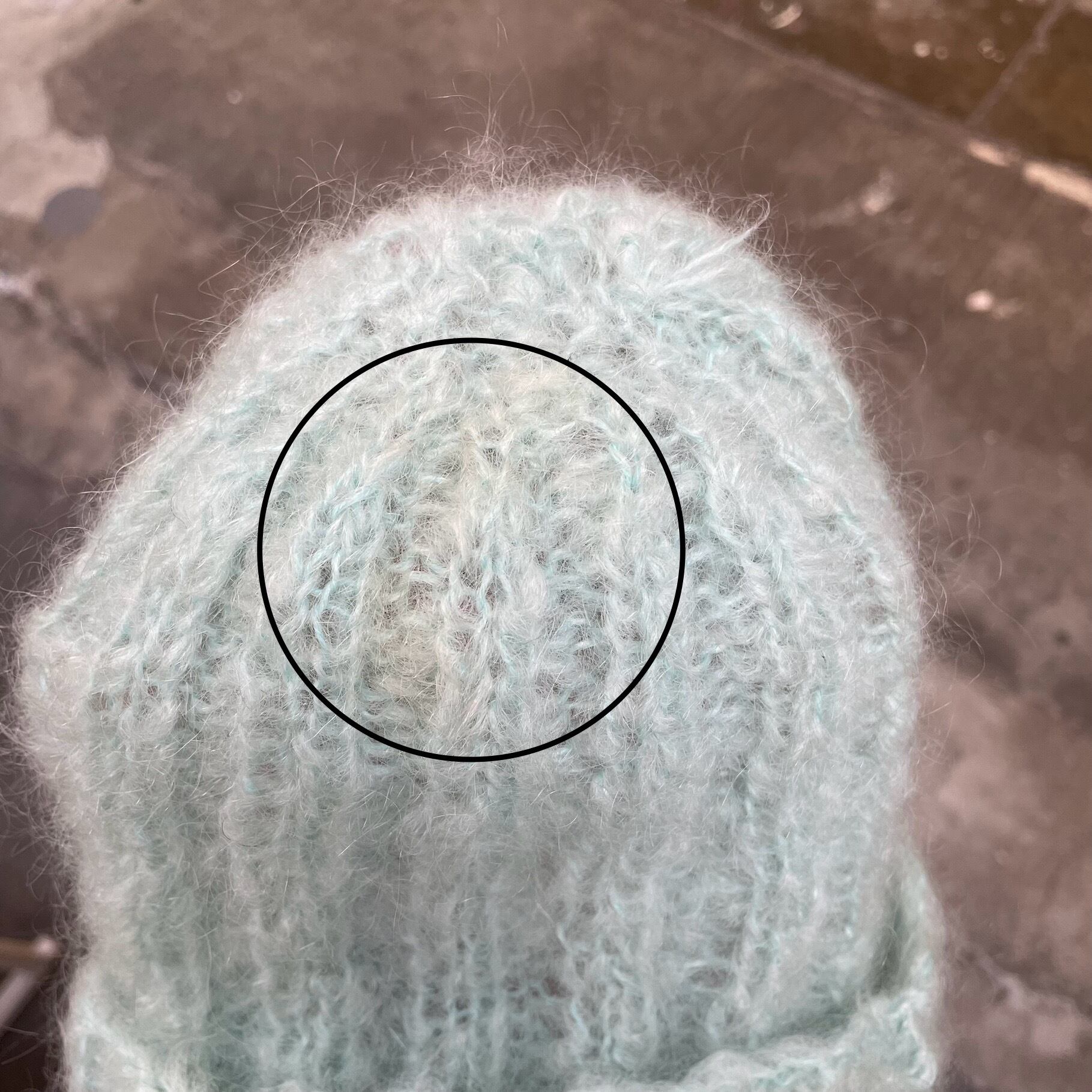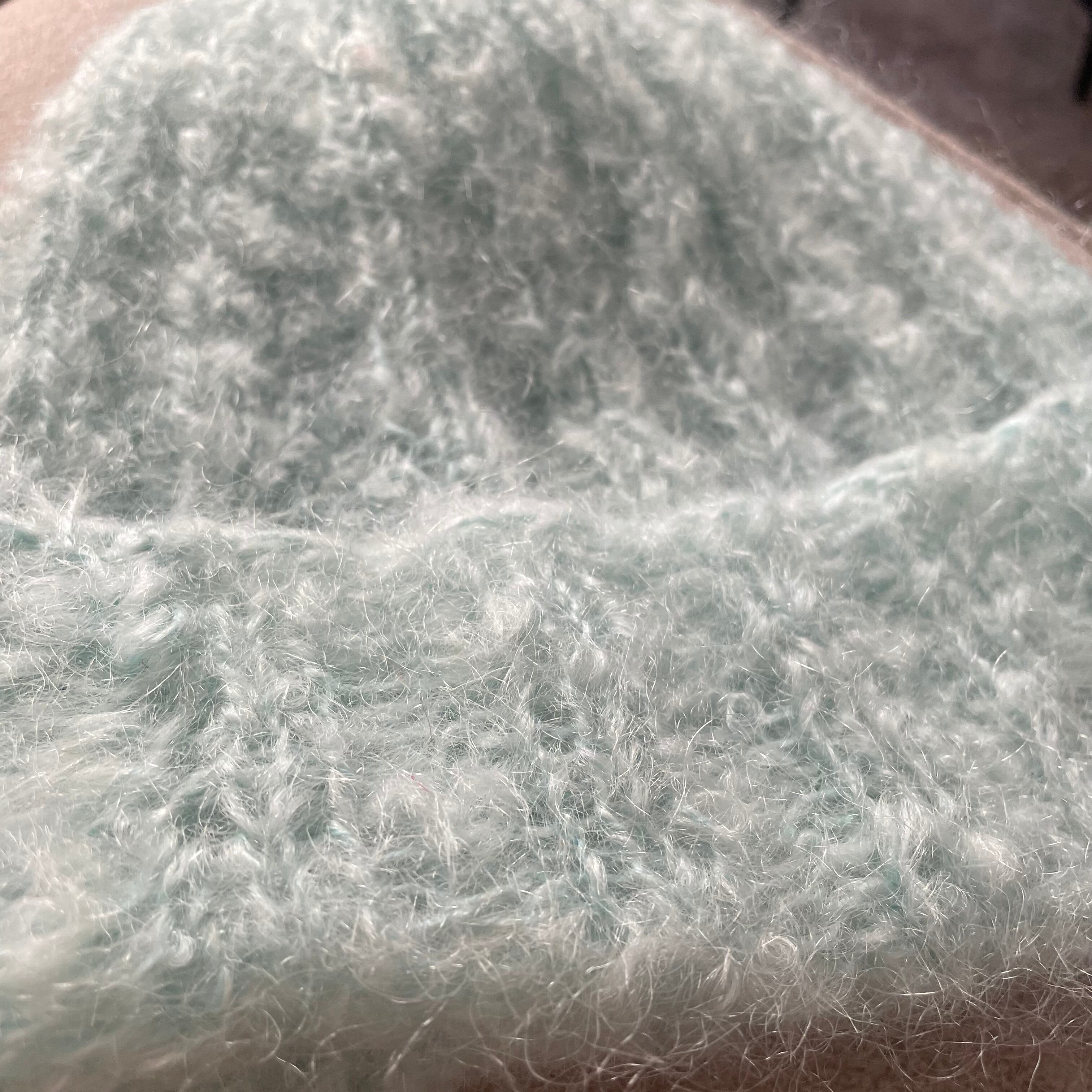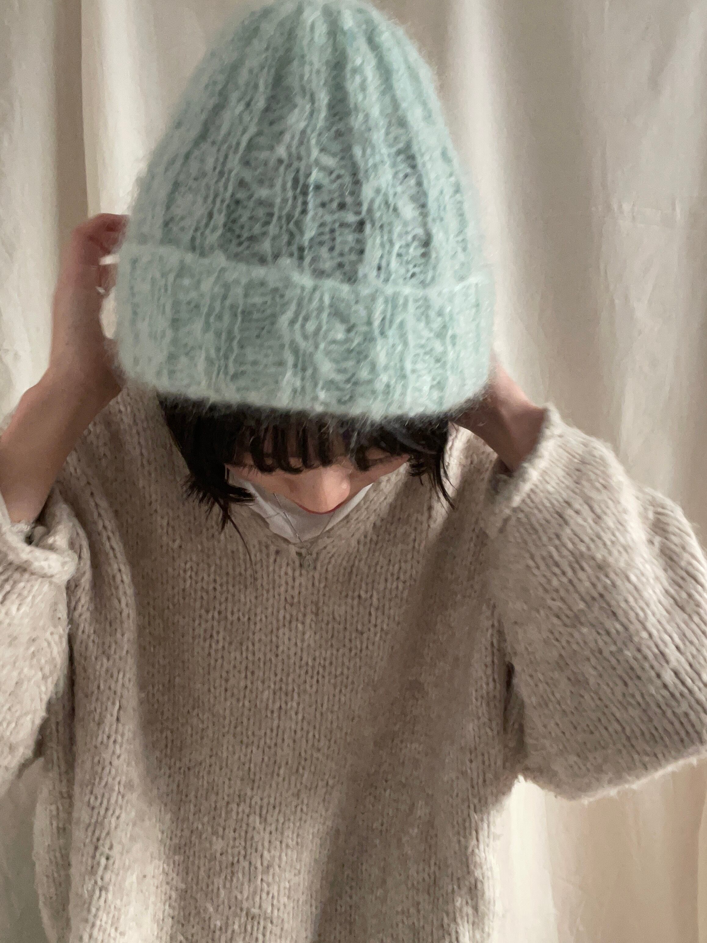 毛足の長い毛糸で編まれたふわふわのニットキャップ