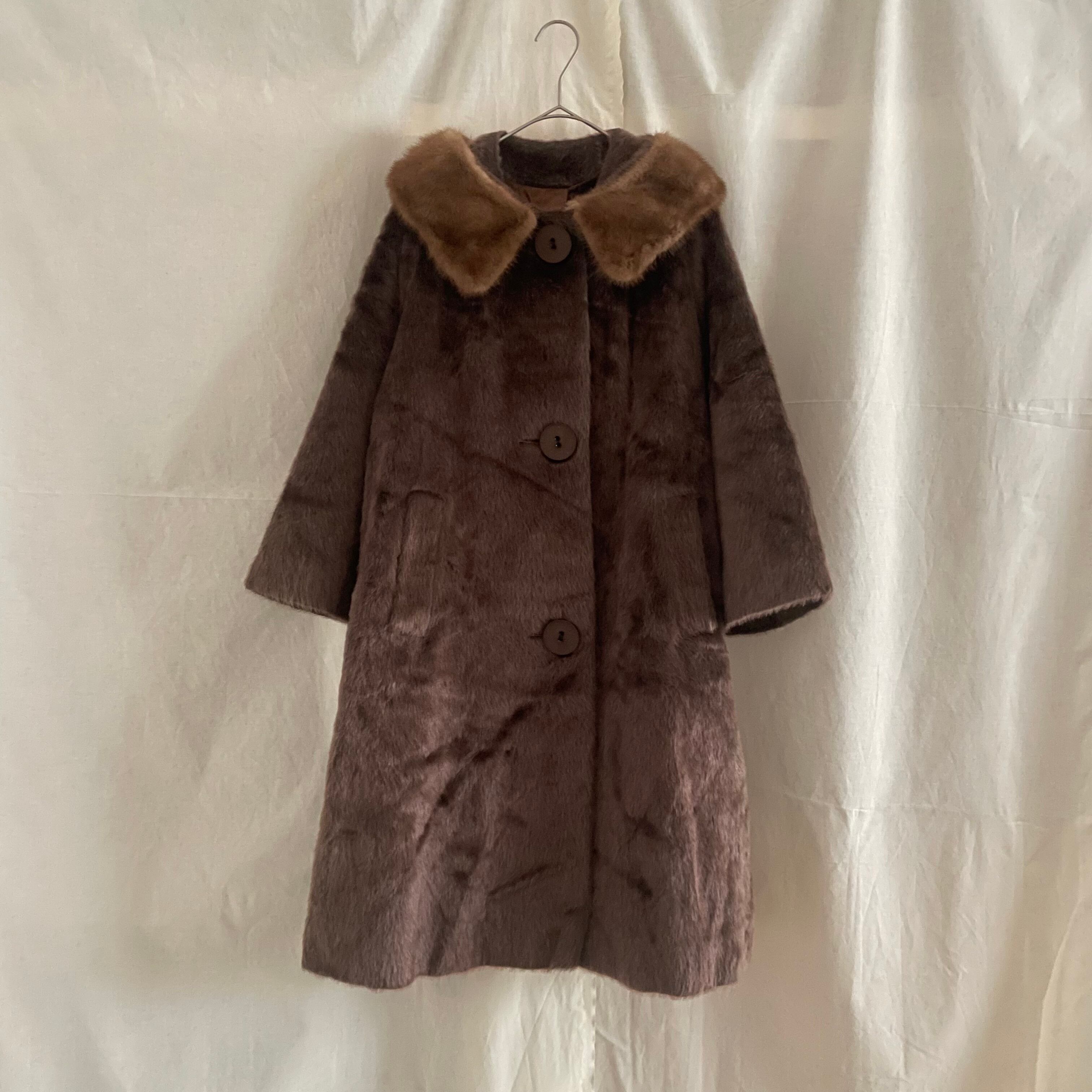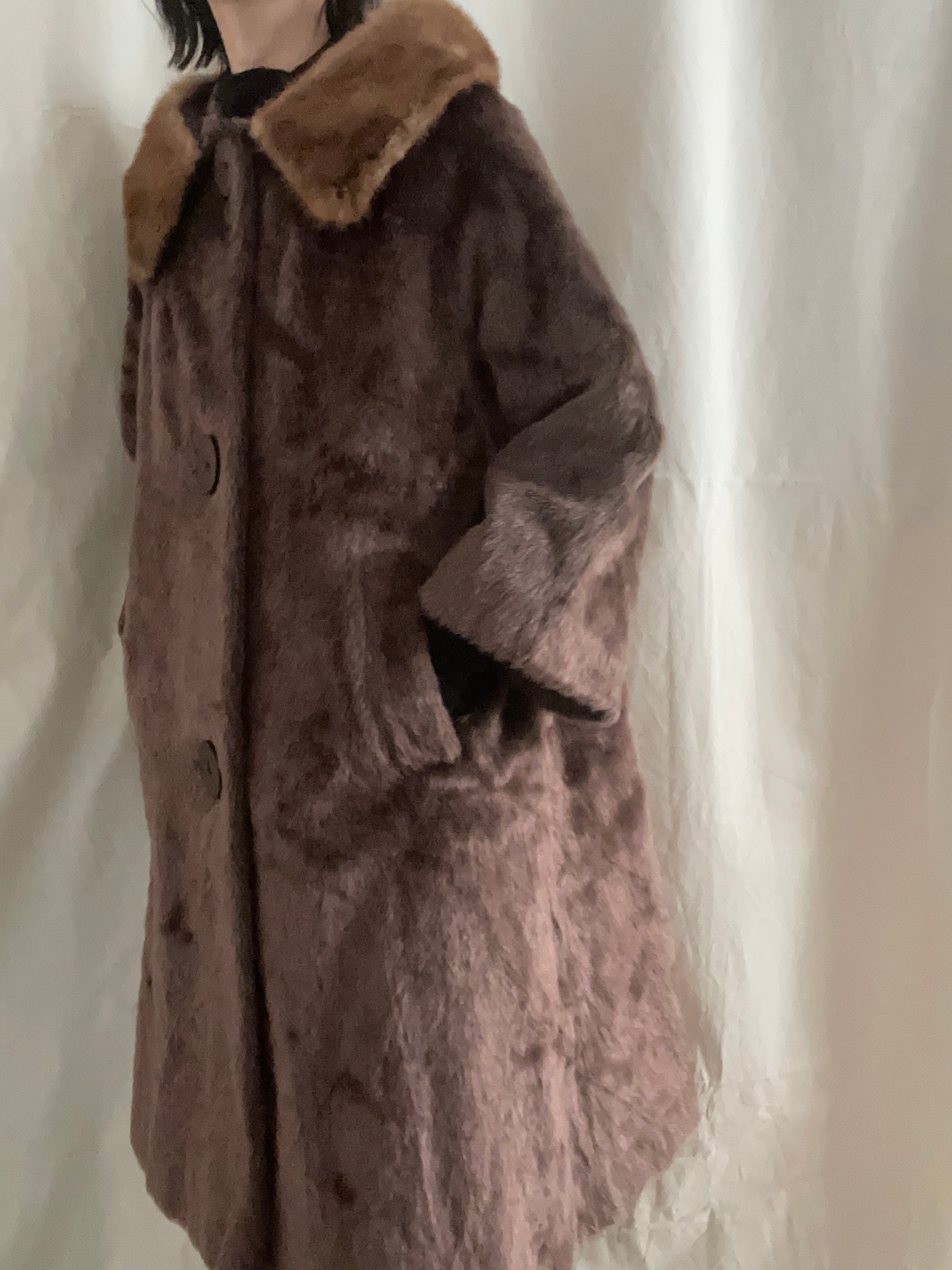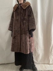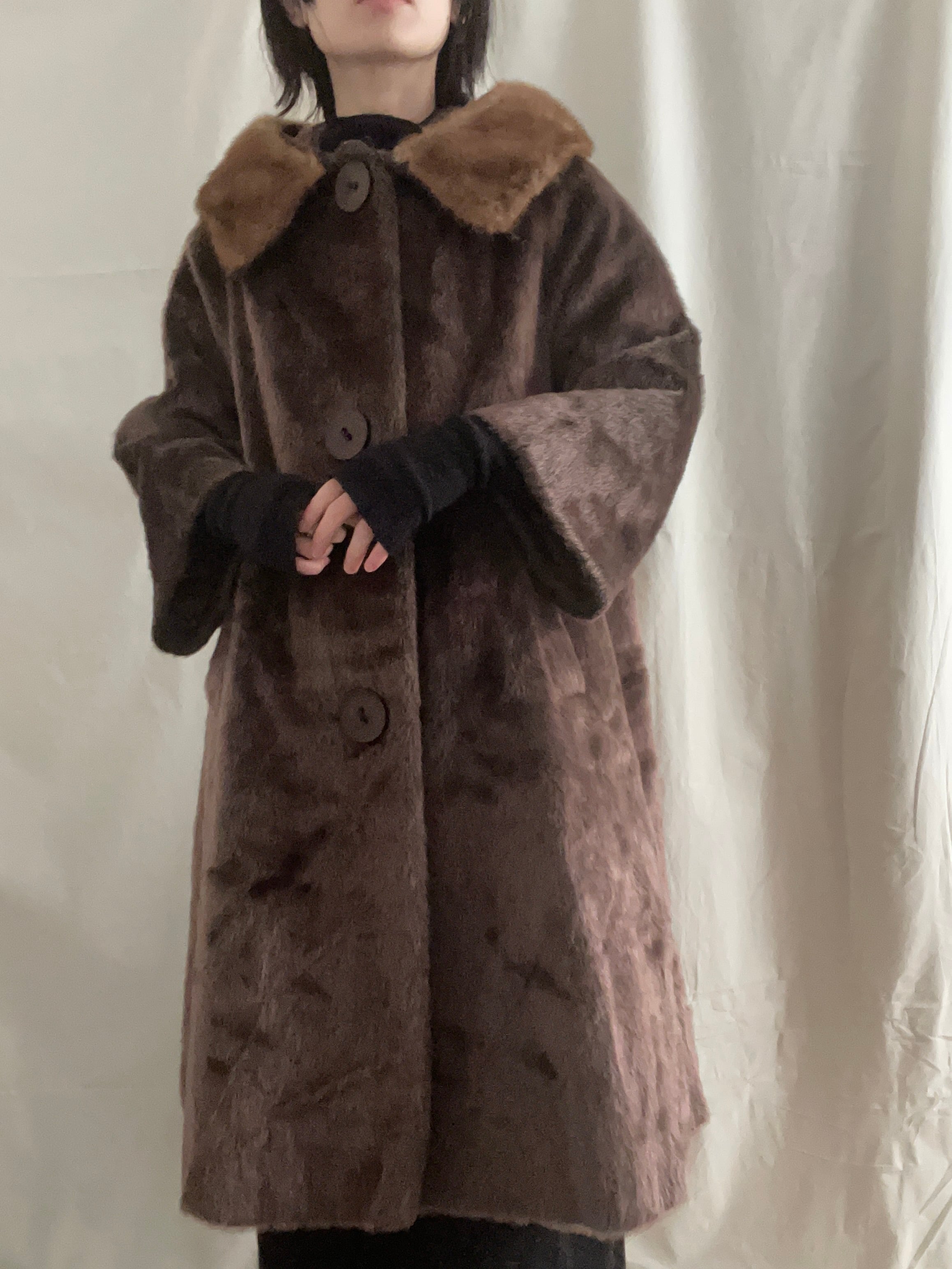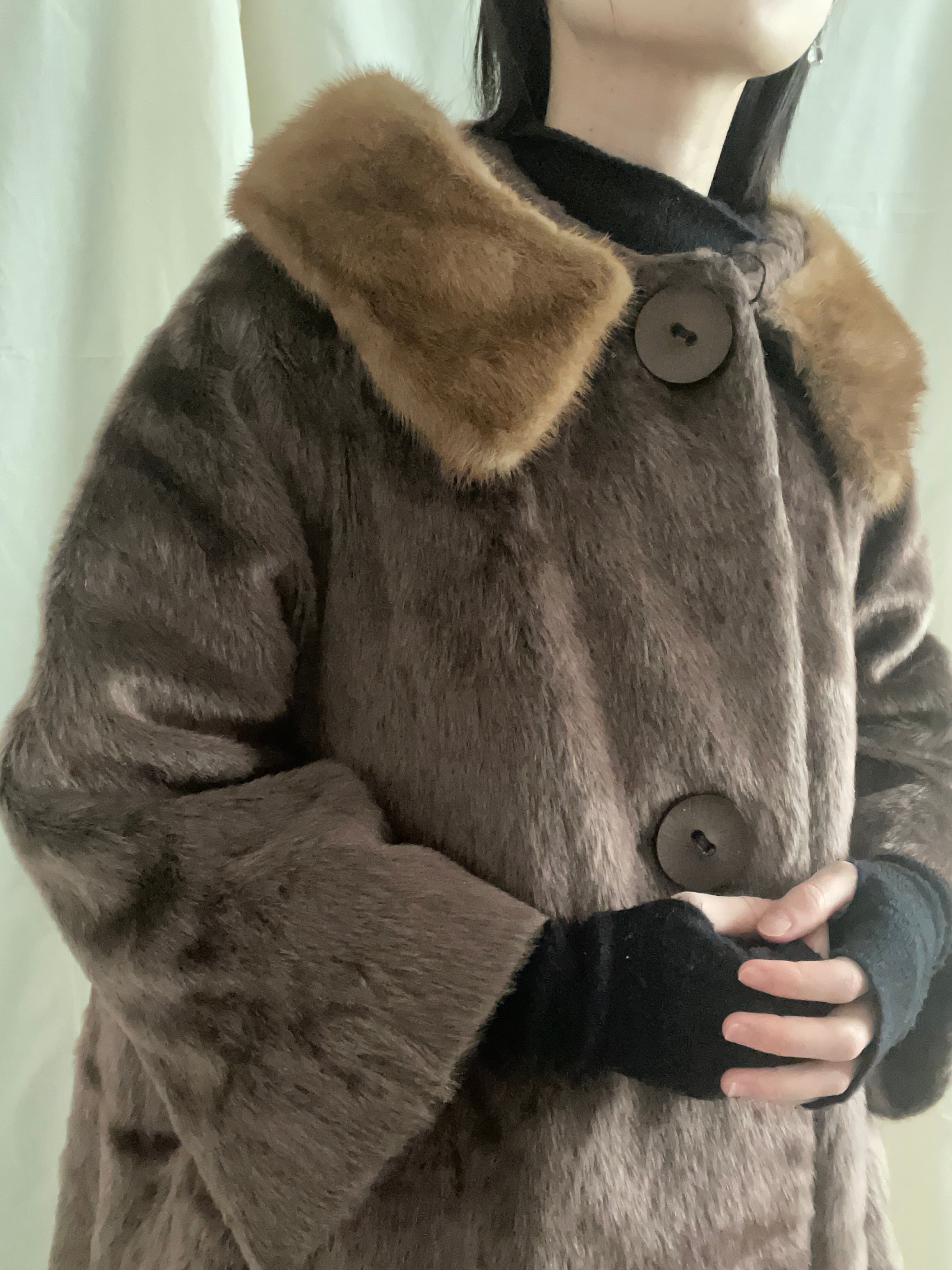 ビックカラーと大きめのボタンがレトロな雰囲気のファーコート