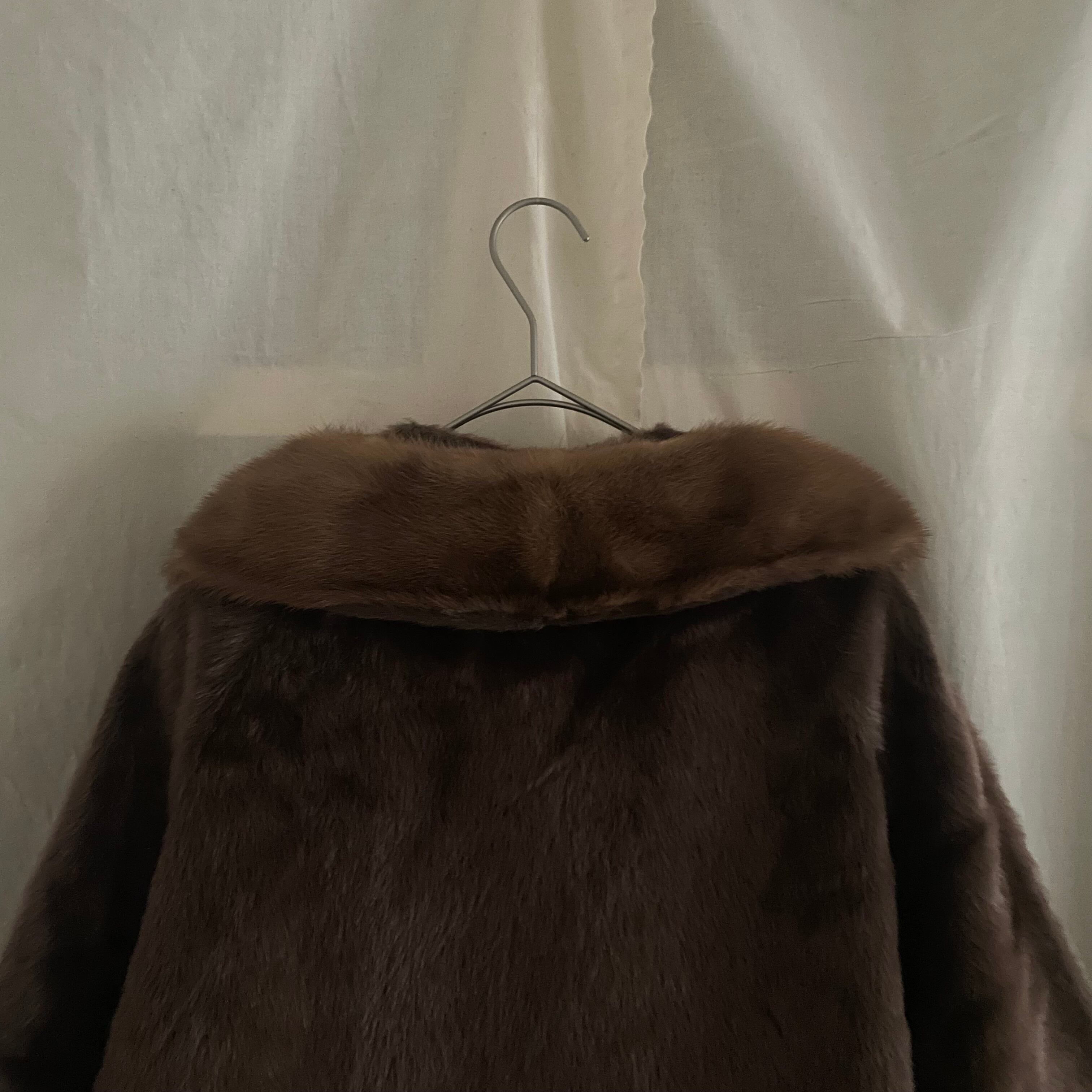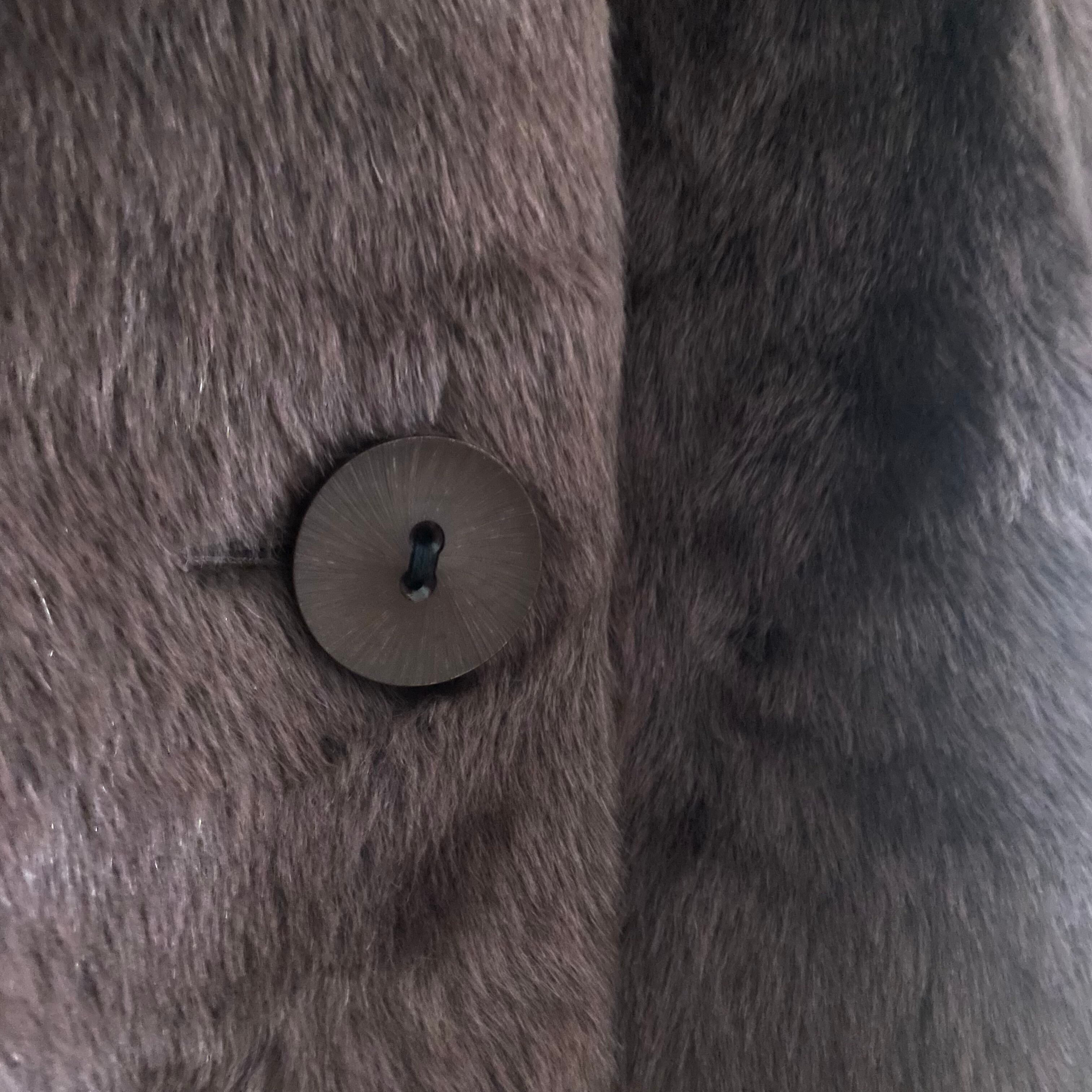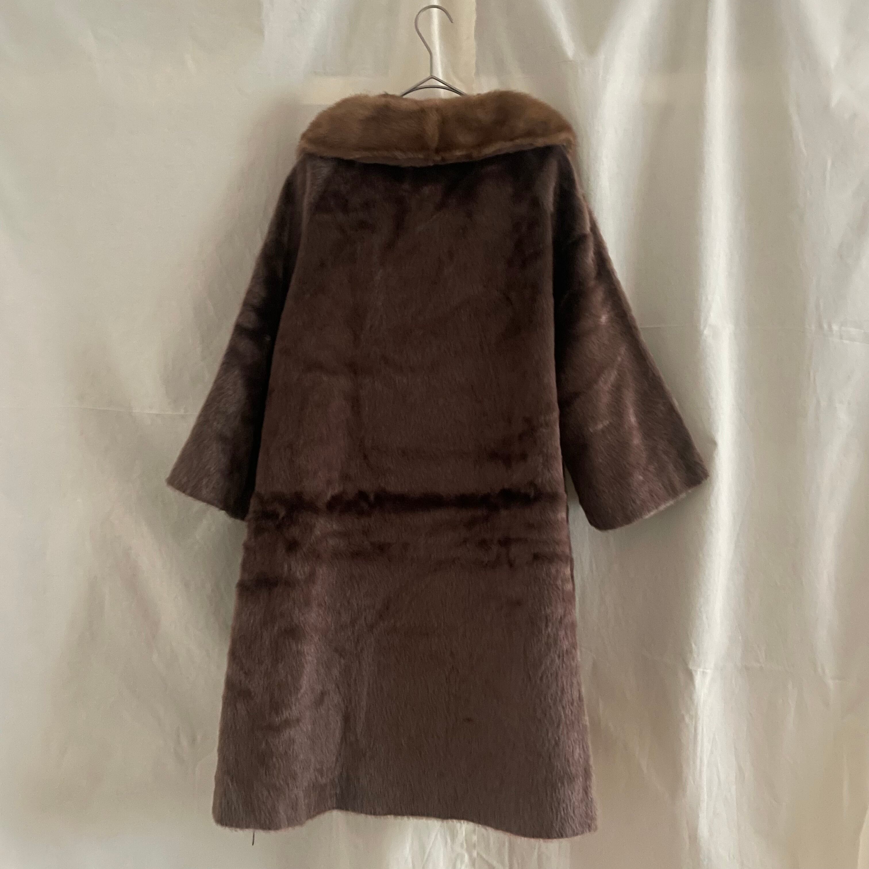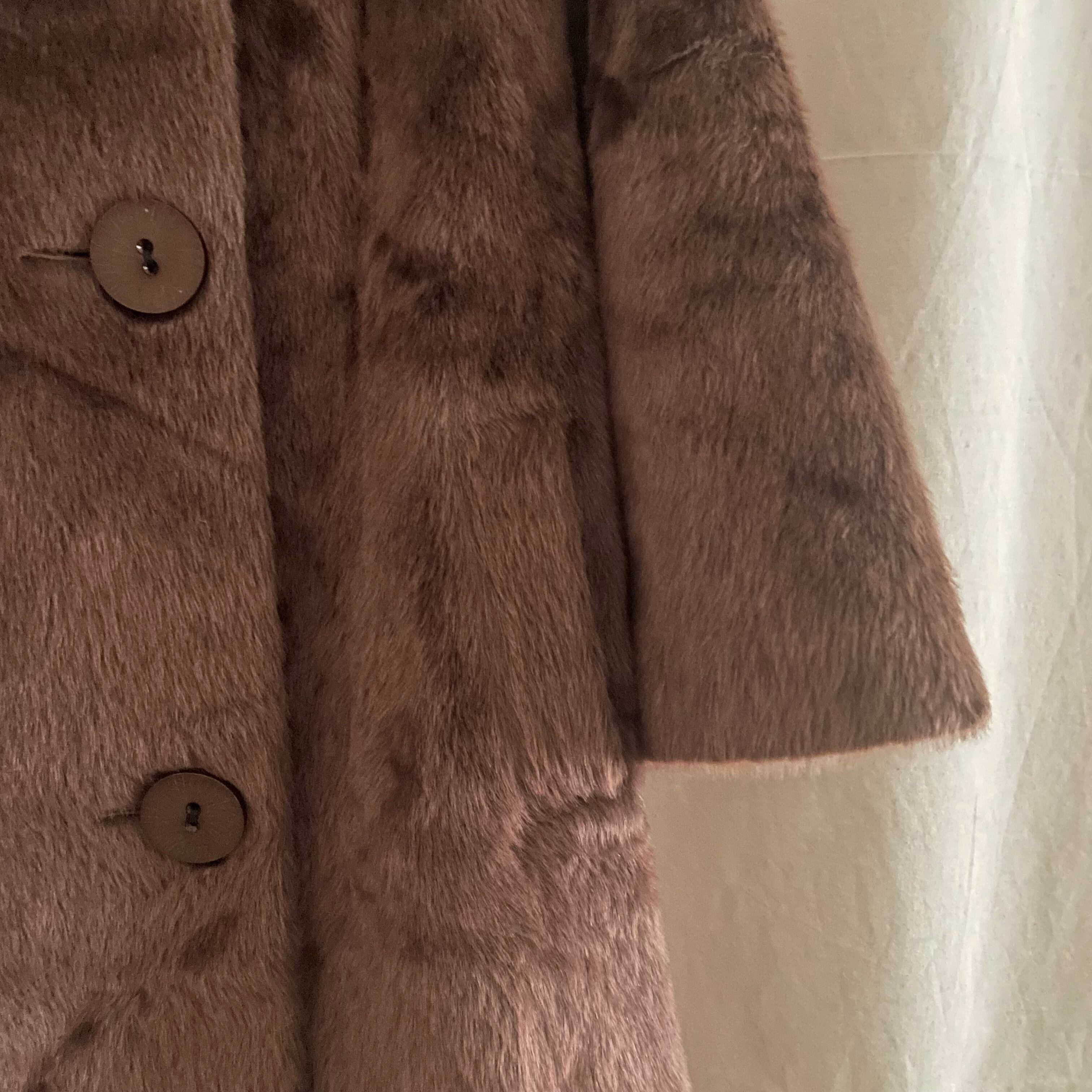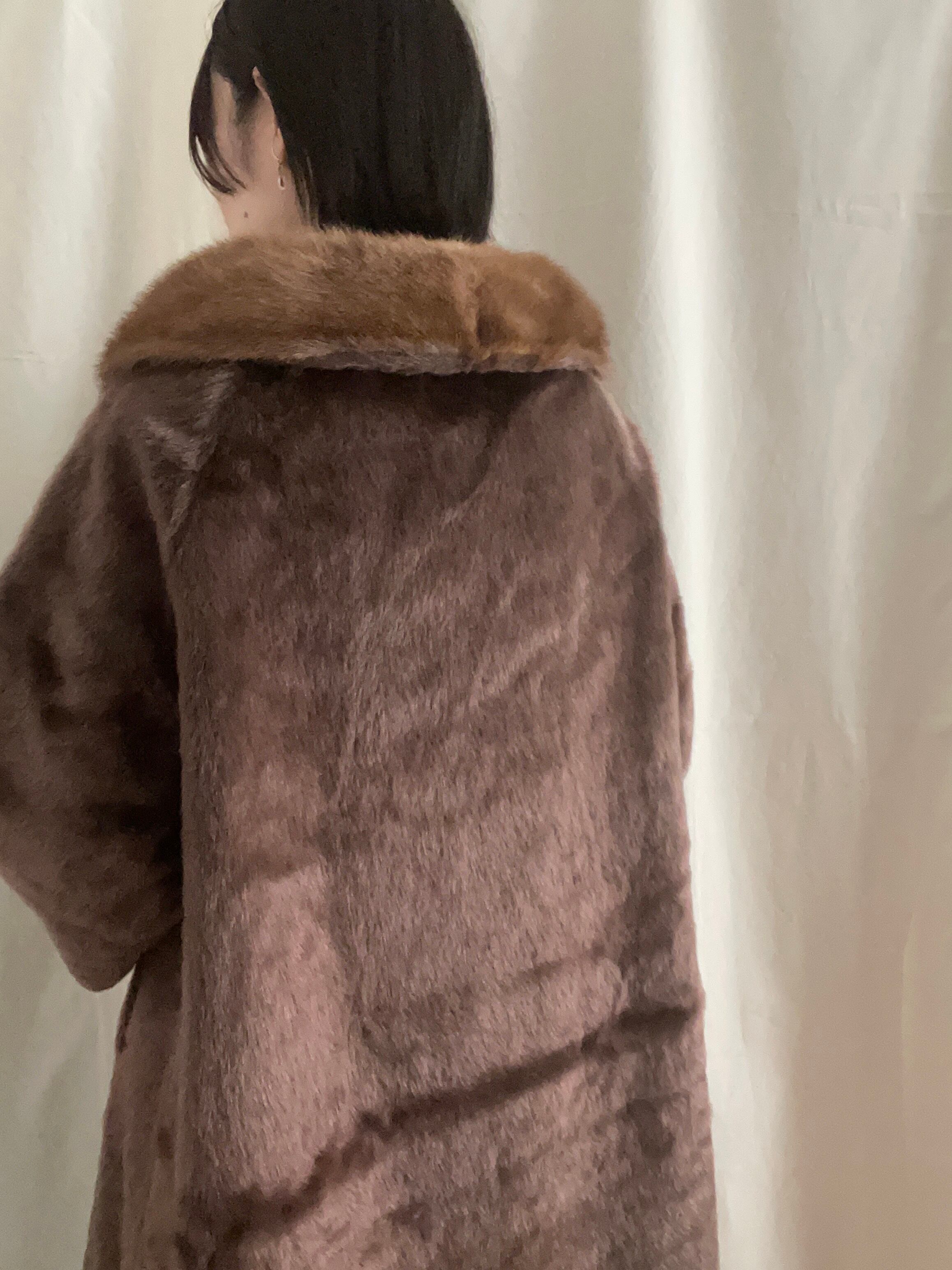 ビックカラーと大きめのボタンがレトロな雰囲気のファーコート