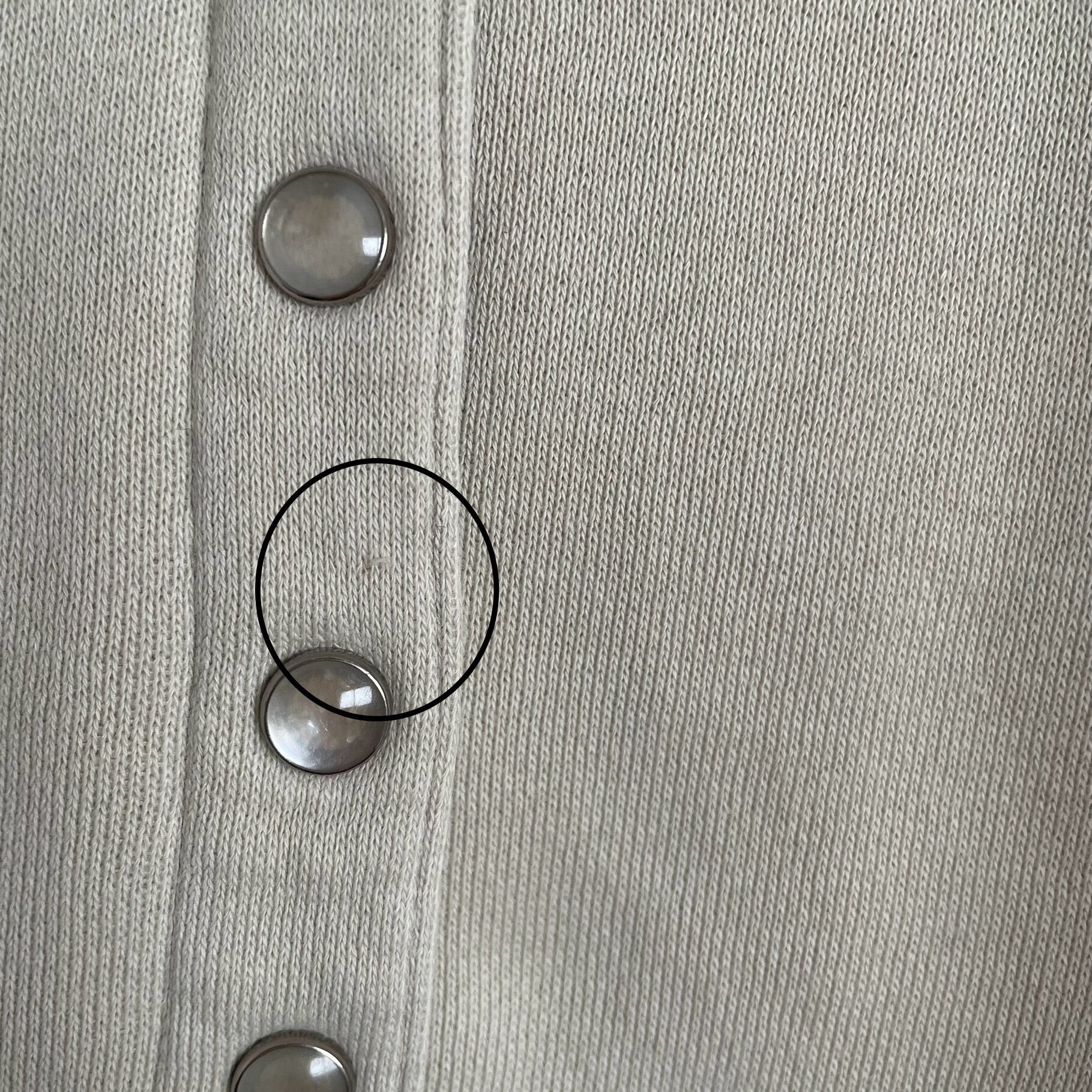 前ボタン間と左袖にほつれあり