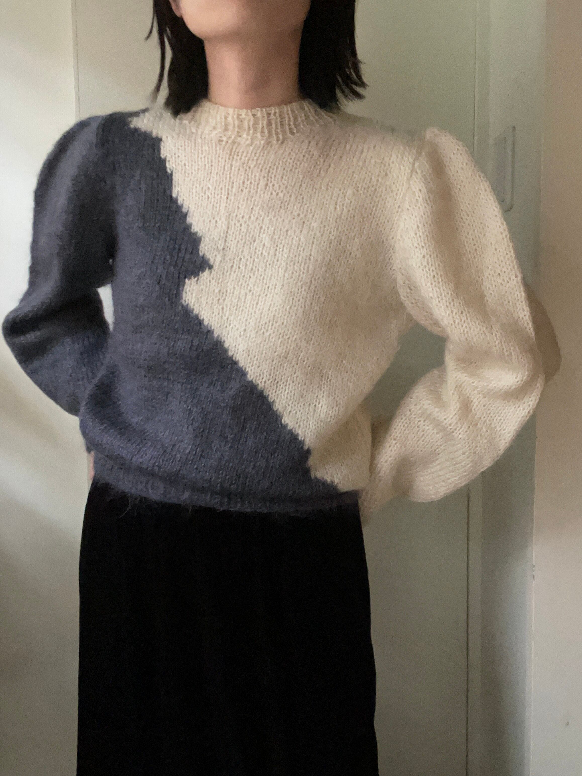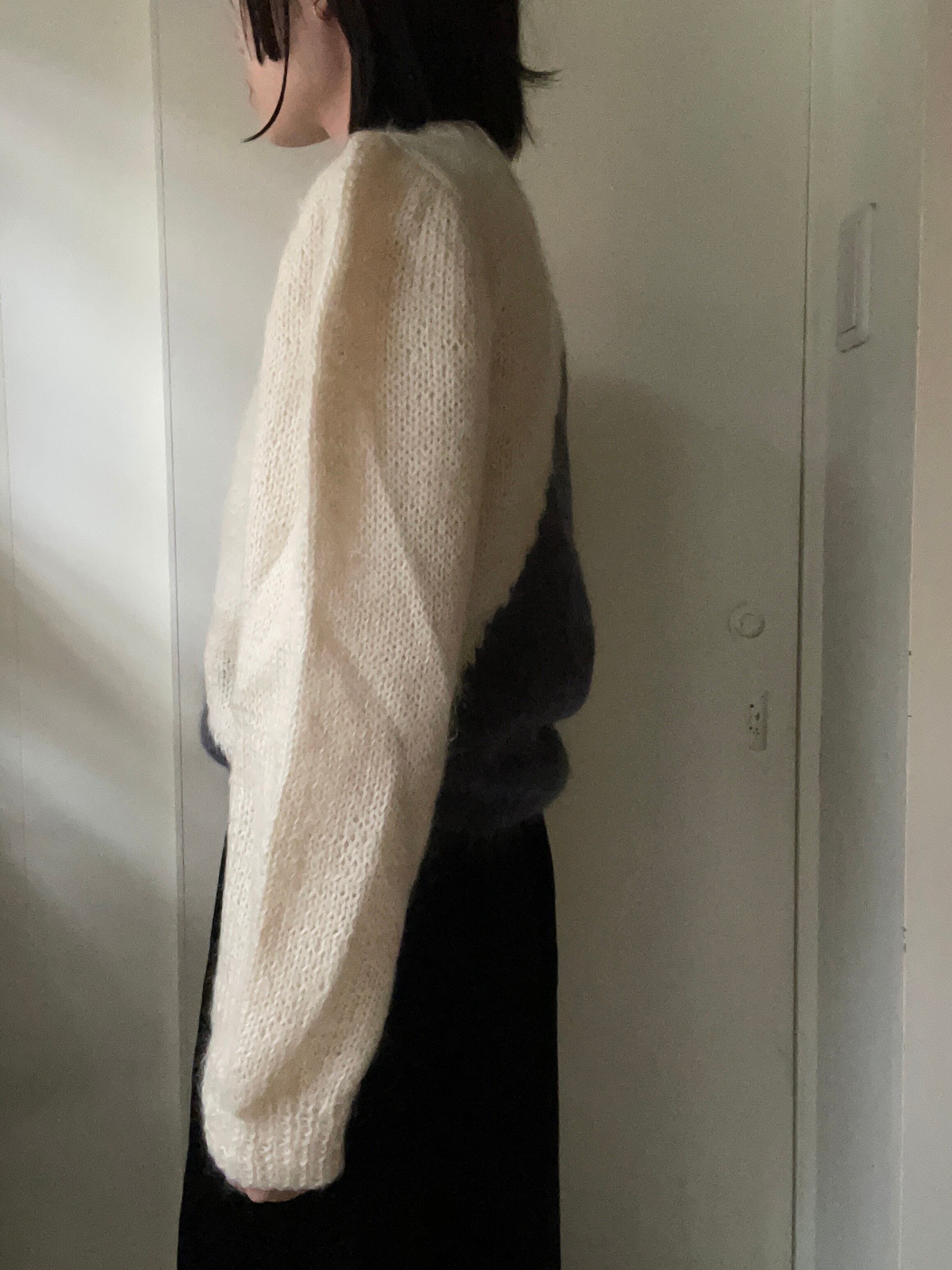 バイカラーのニュアンス柄が可愛いモヘアニット