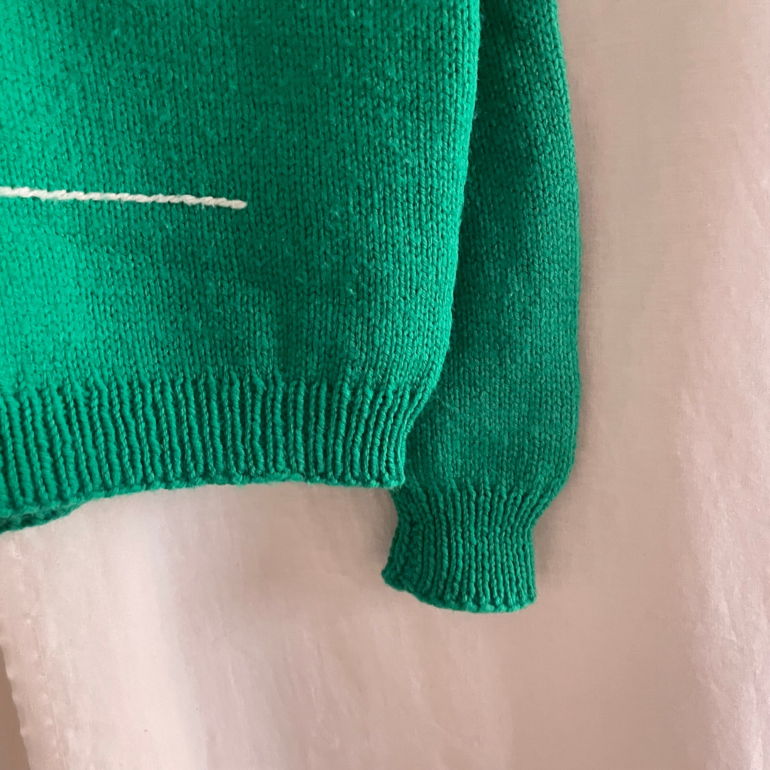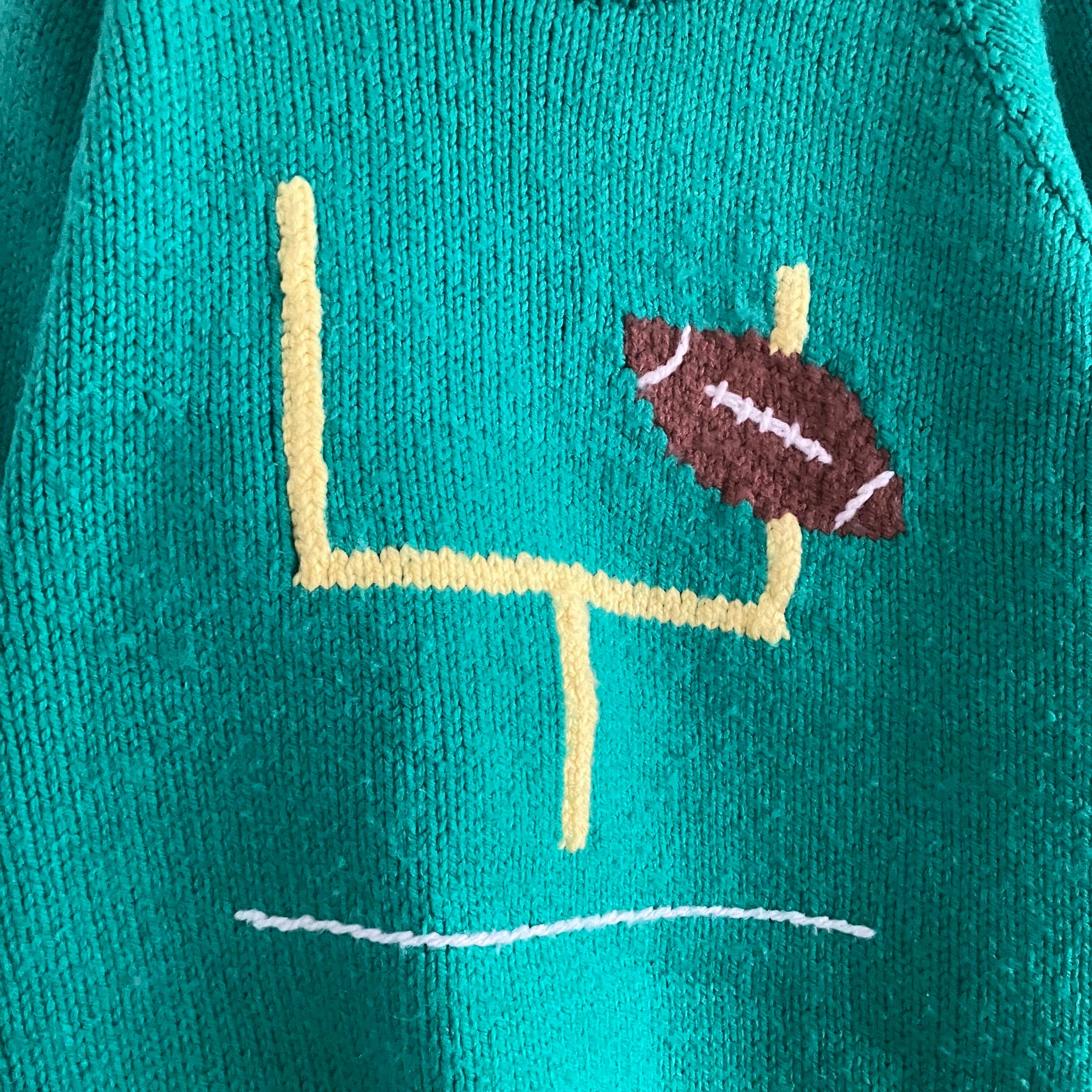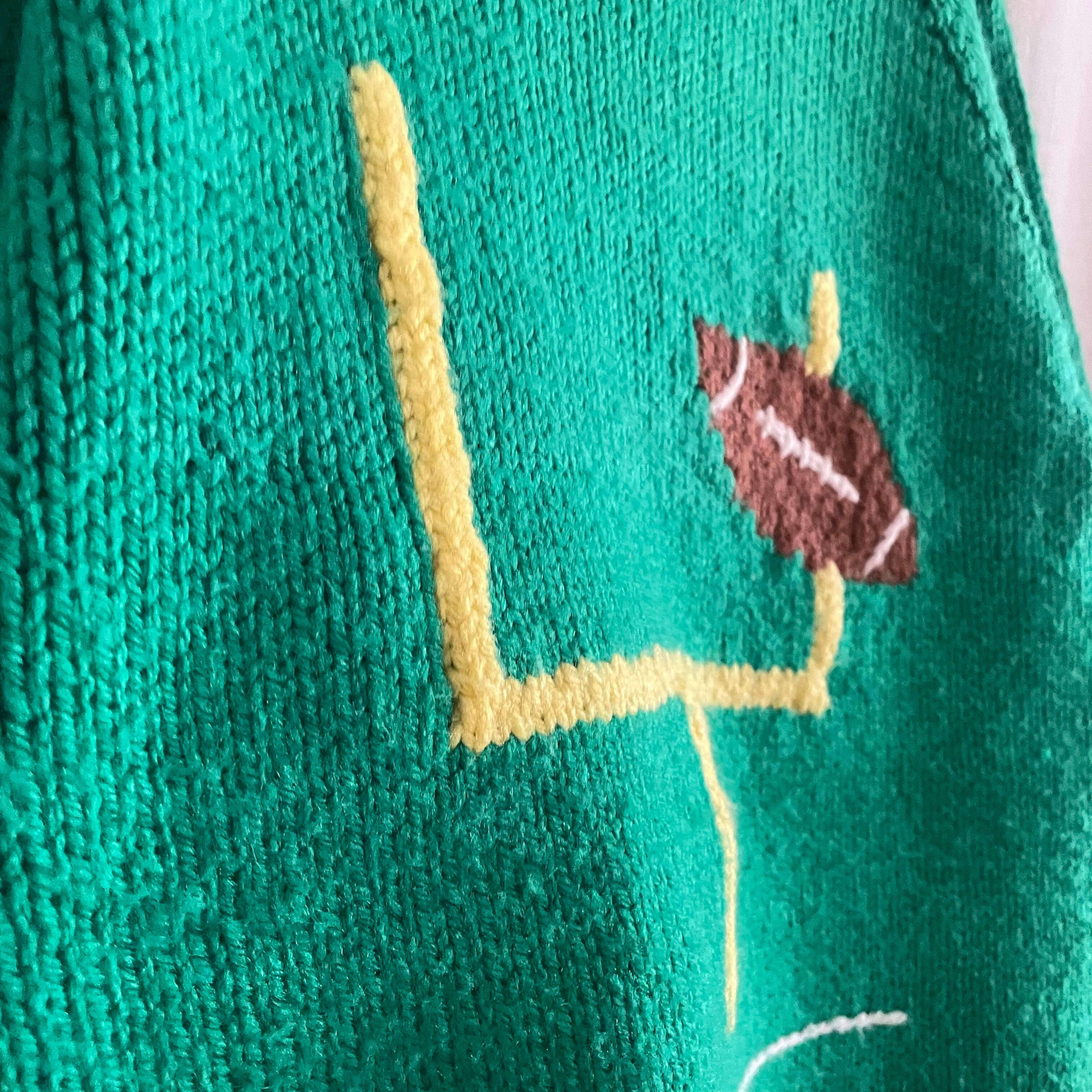 絵のようなフットボール柄とボディのグリーンカラーがポップで可愛い1枚