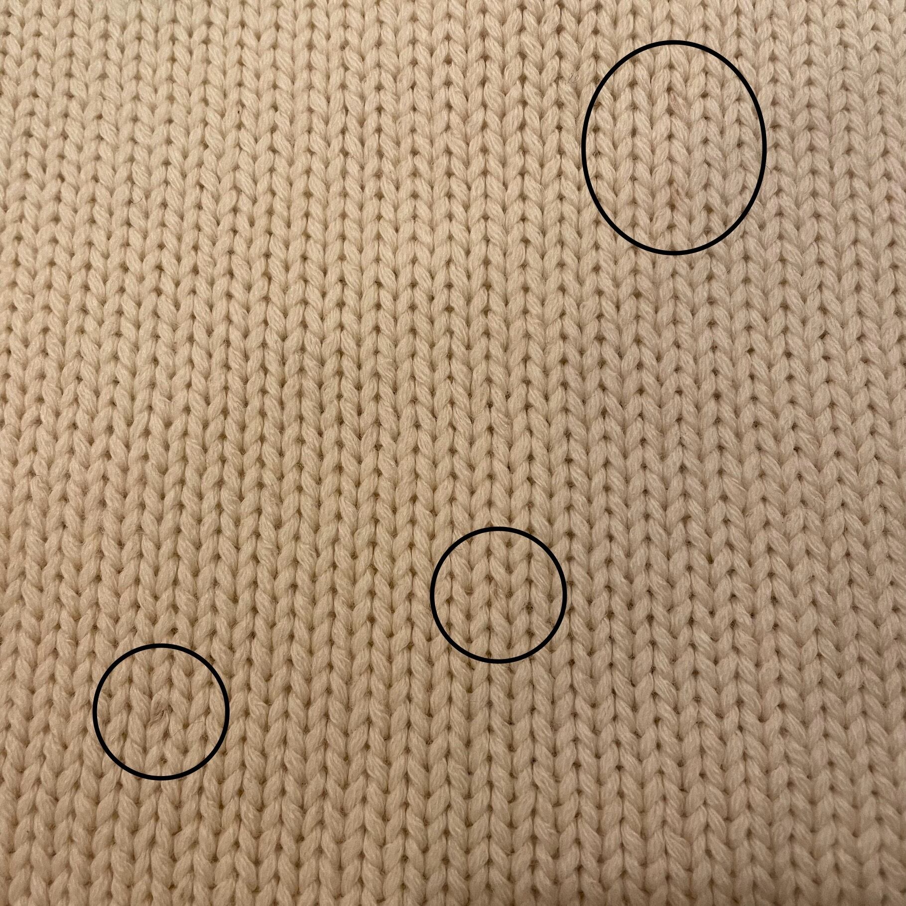 汚れではありませんが、前身頃に数箇所糸に茶色の毛が混ざっているところあり