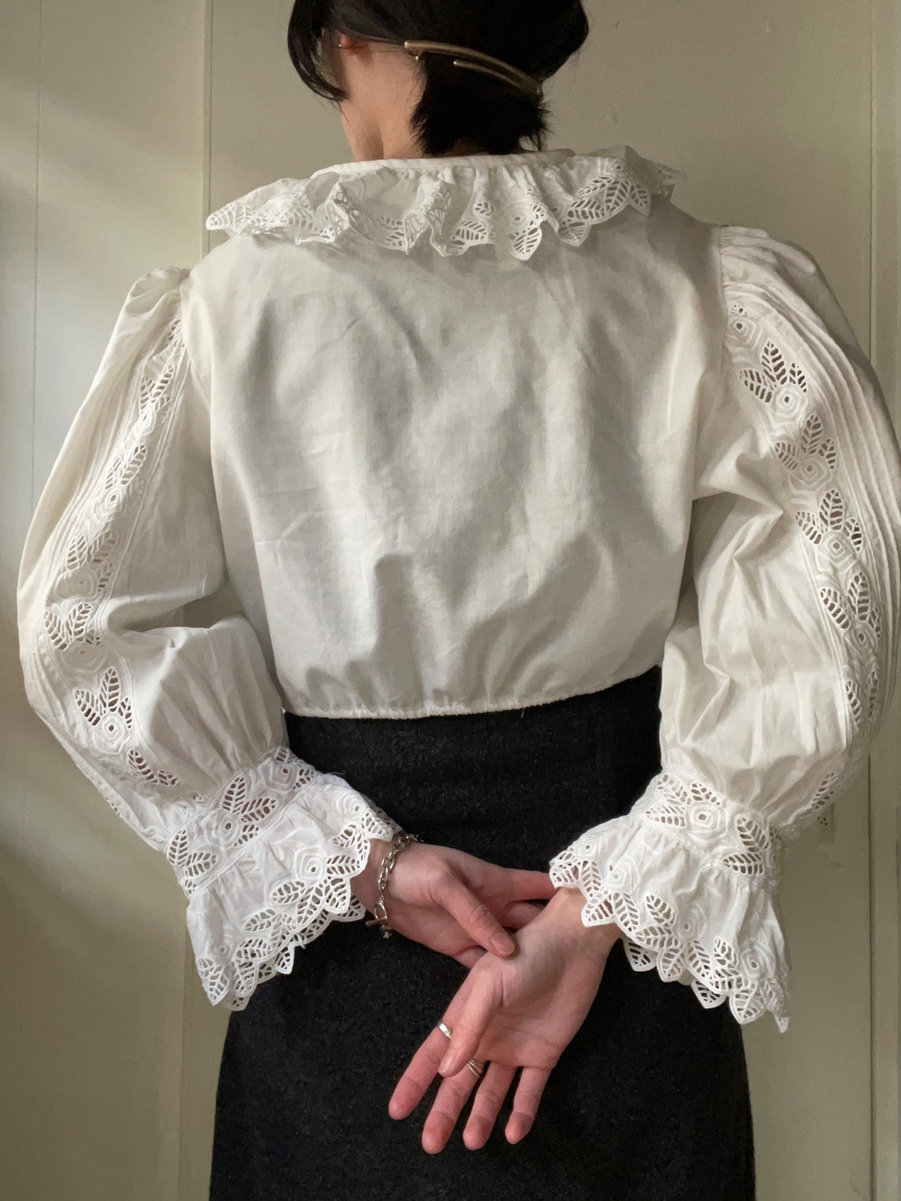 ボリュームのある襟とお袖、しっかり長袖なのも嬉しいチロルブラウス